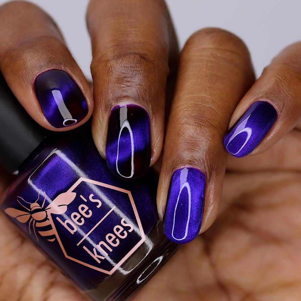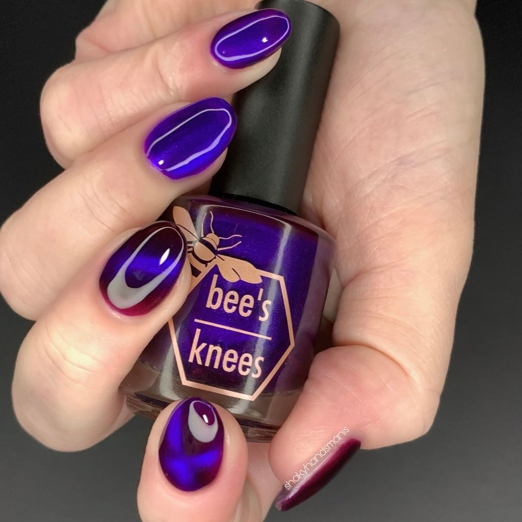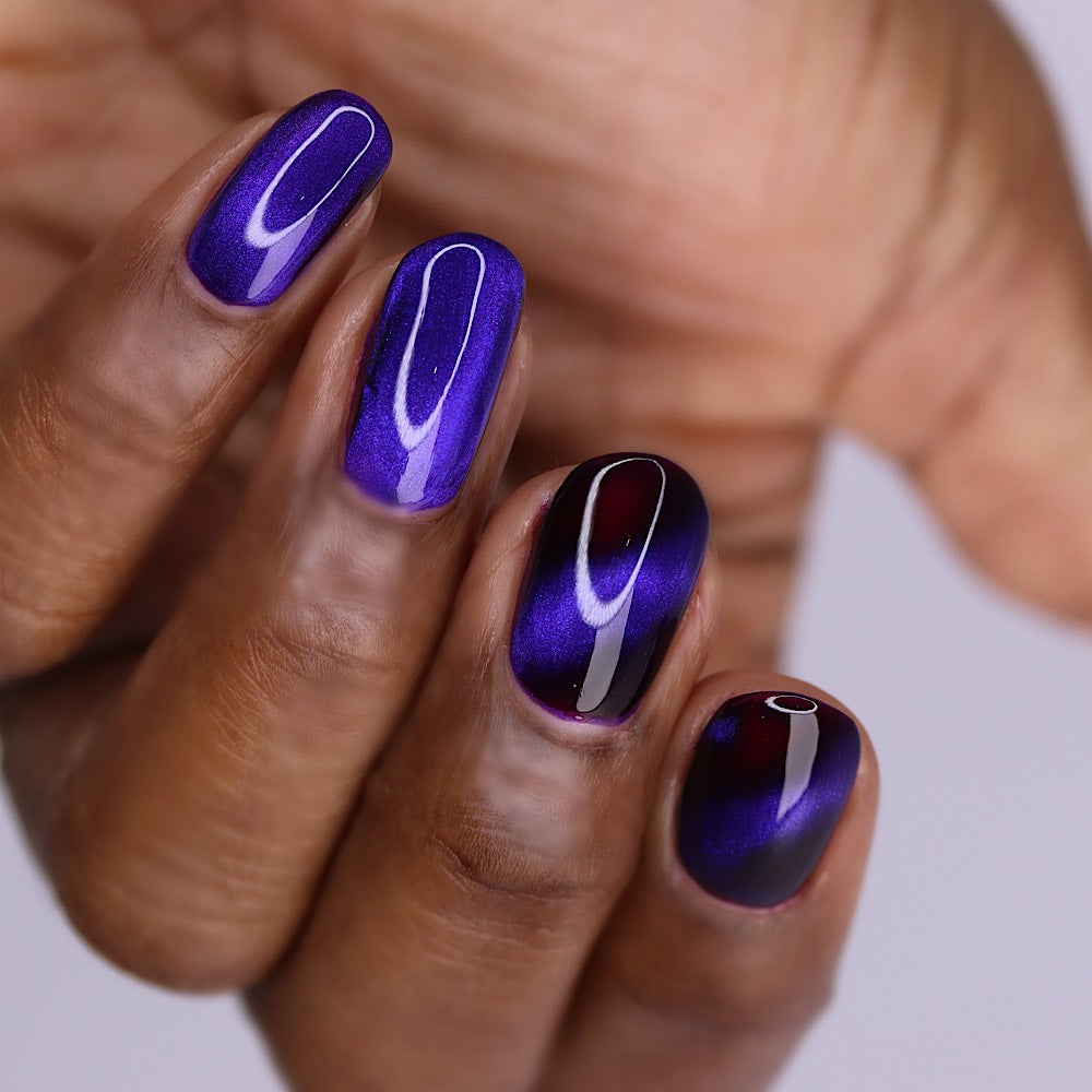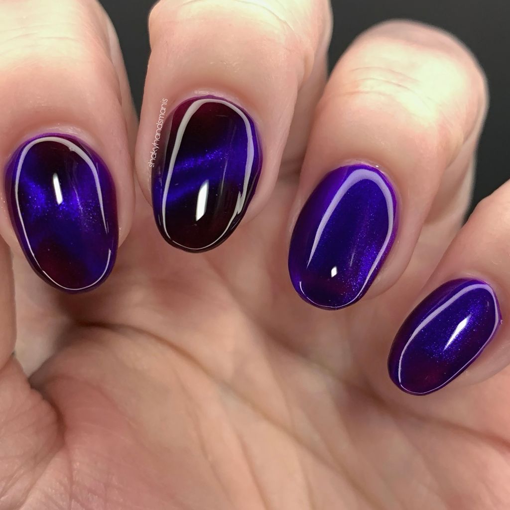 a sister polish to Goddess of Spring, this is a deep burgundy with a cobalt magnetic shimmer