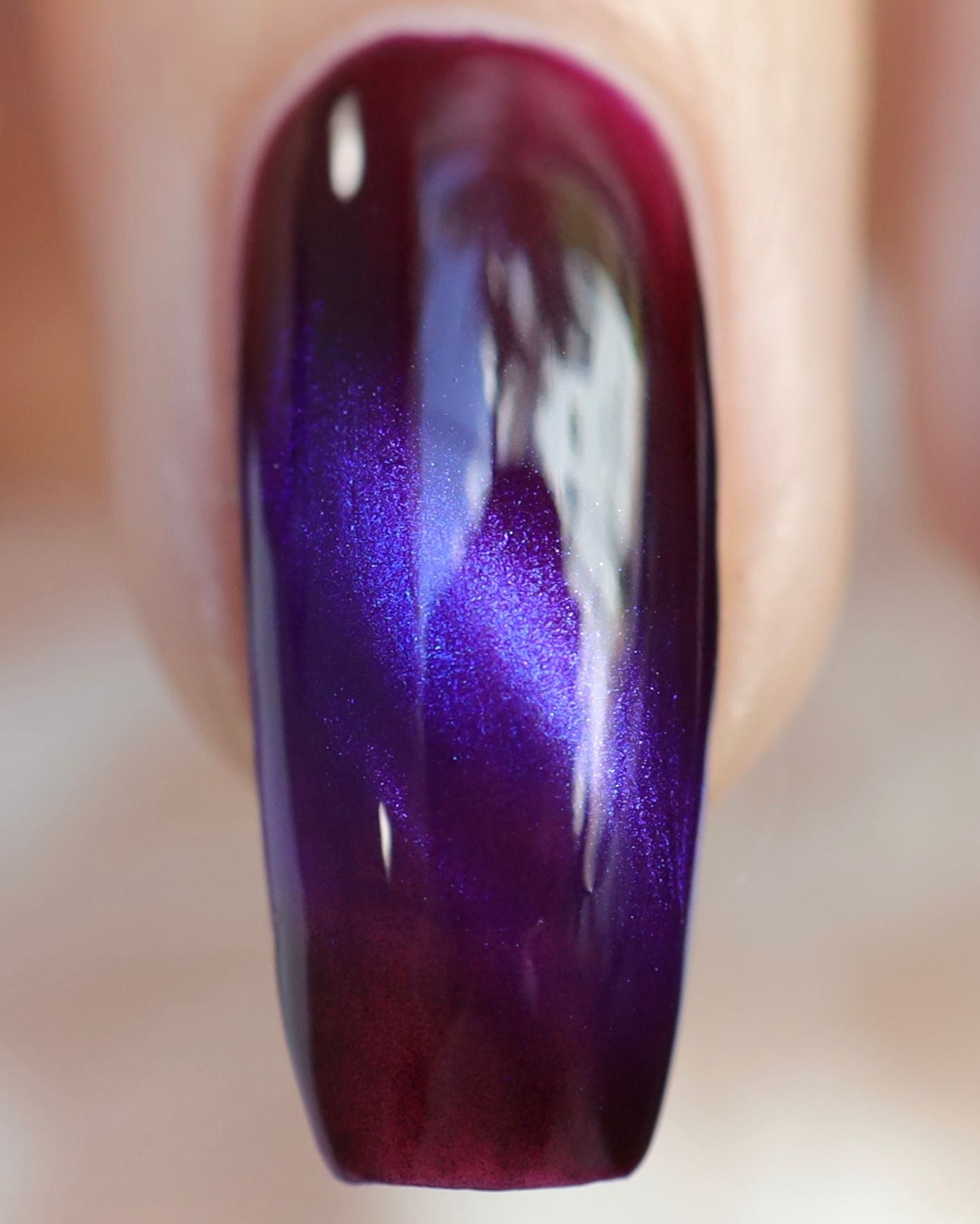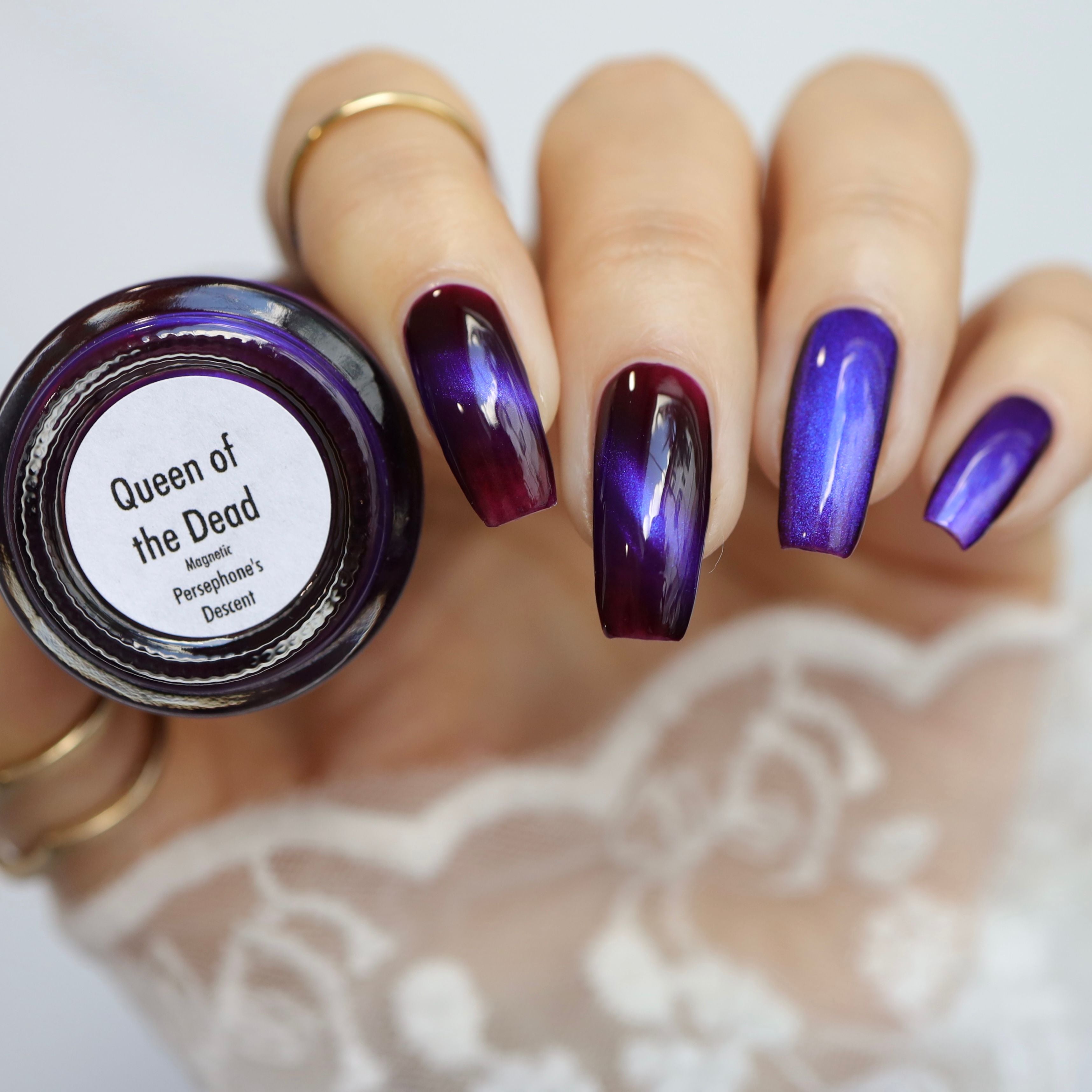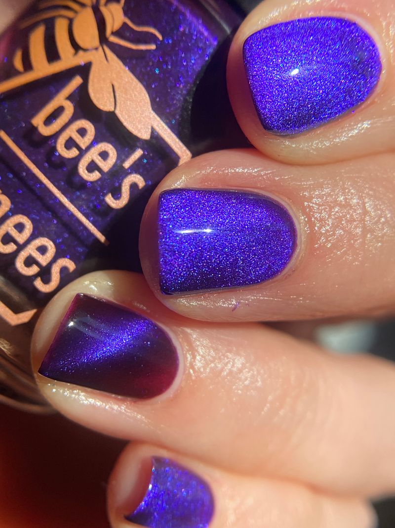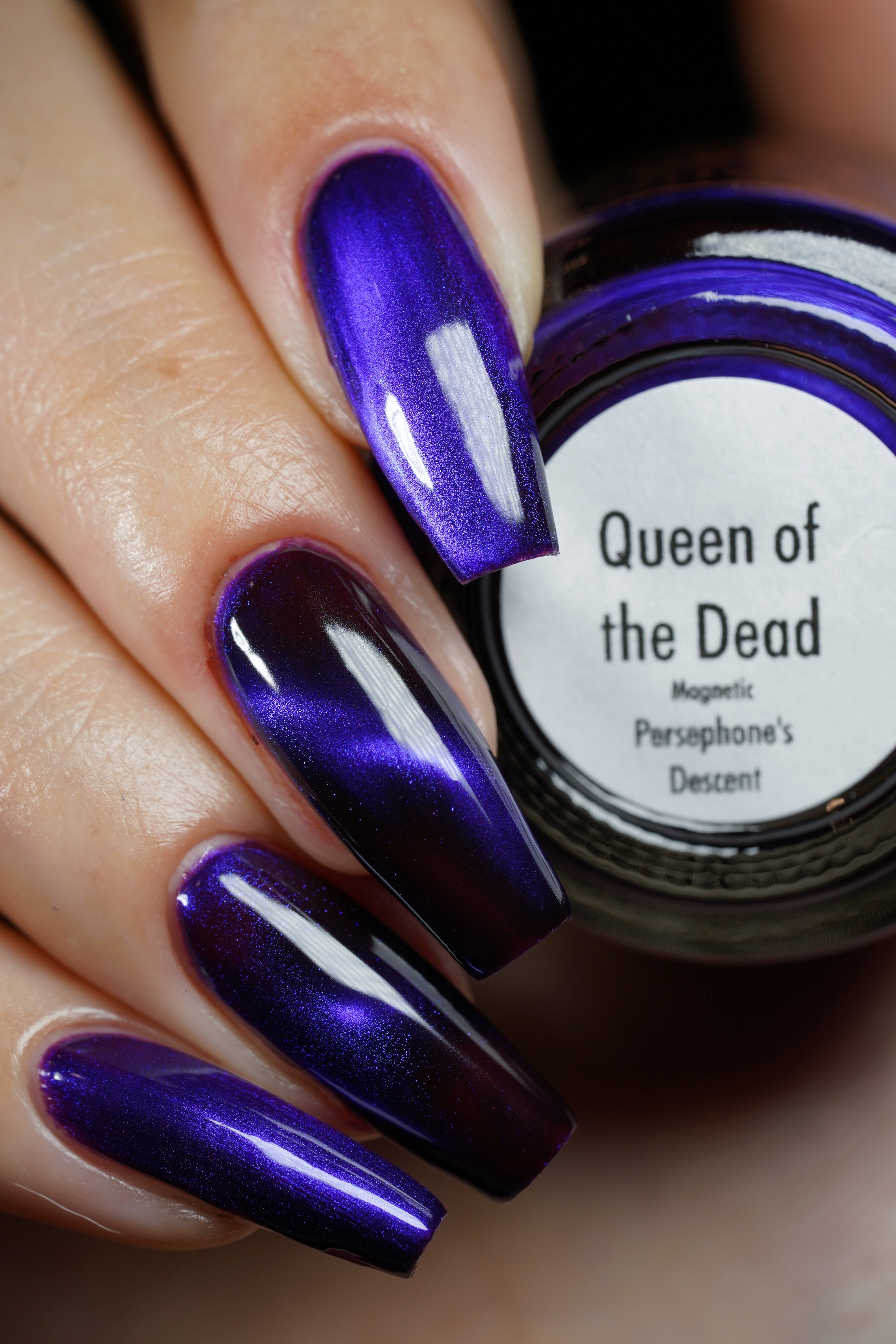 a sister polish to Goddess of Spring, this is a deep burgundy with a cobalt magnetic shimmer