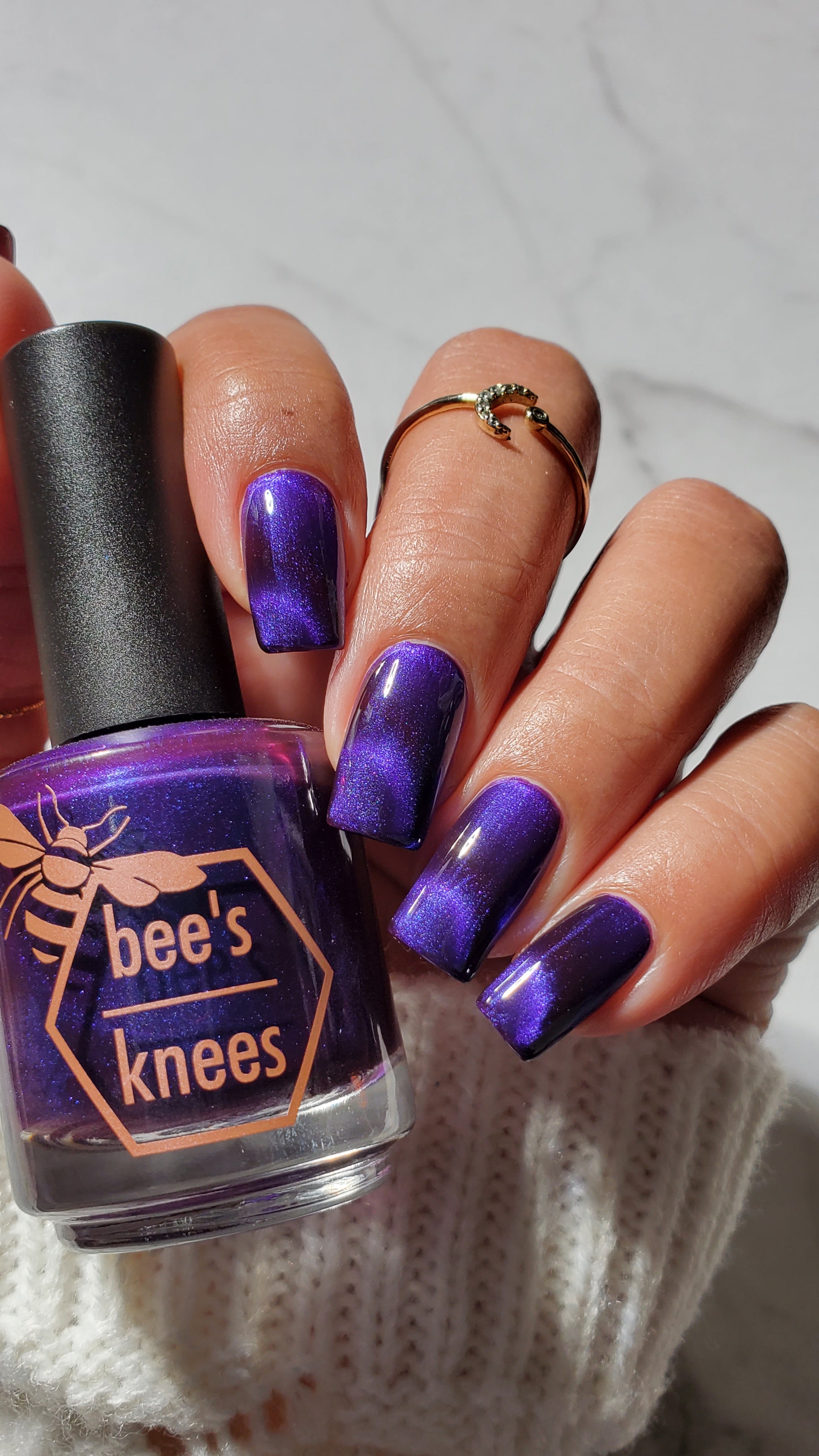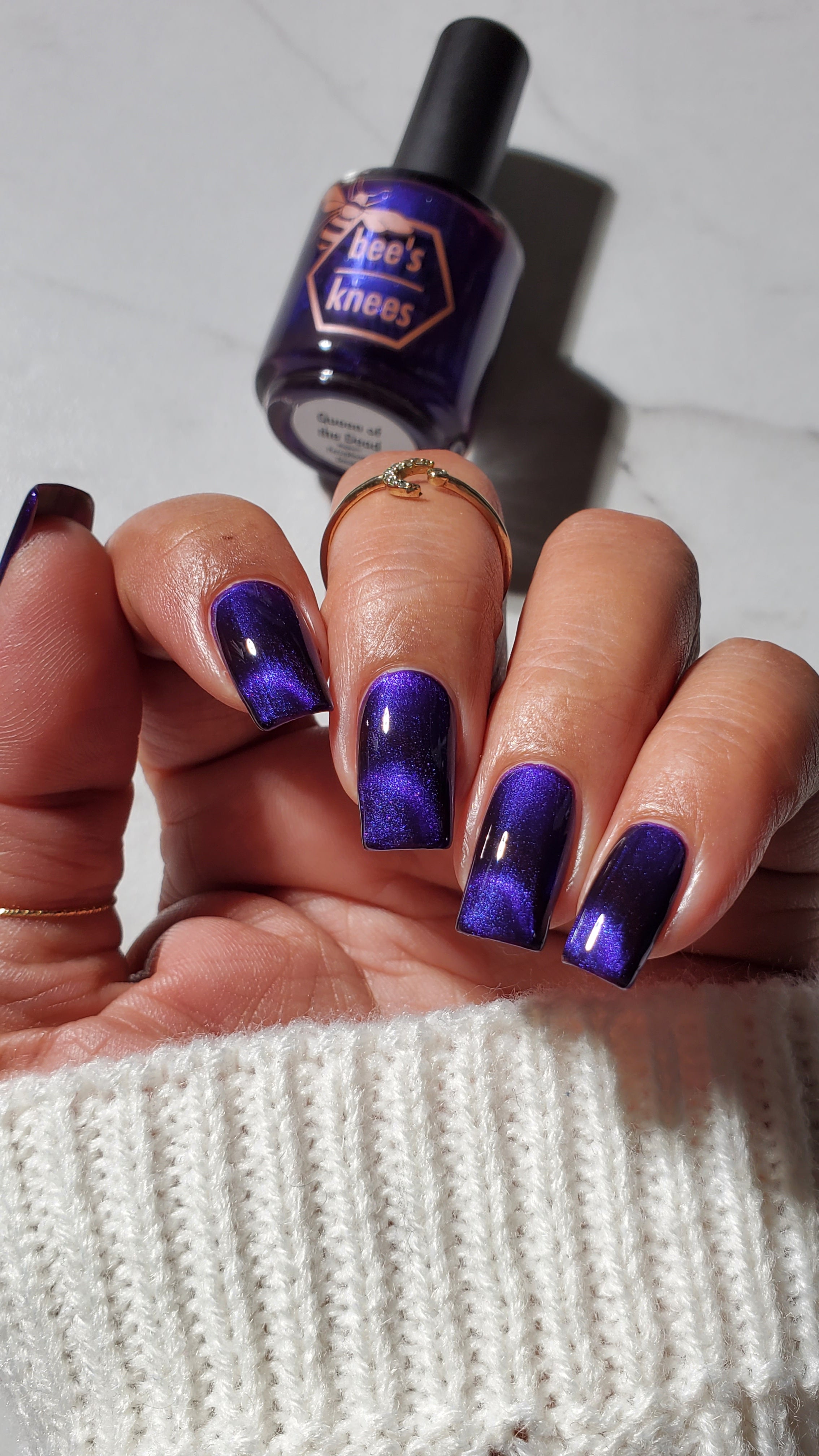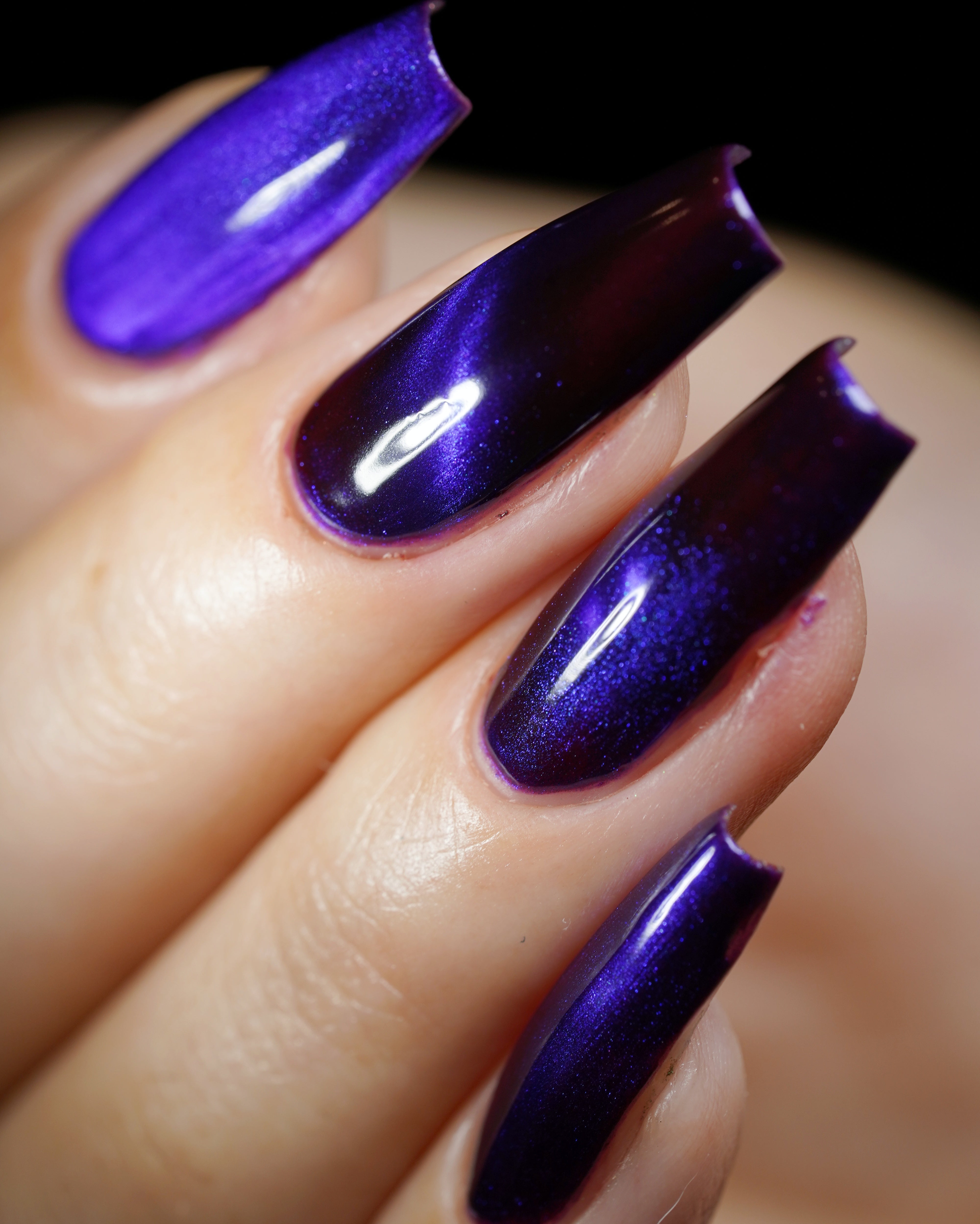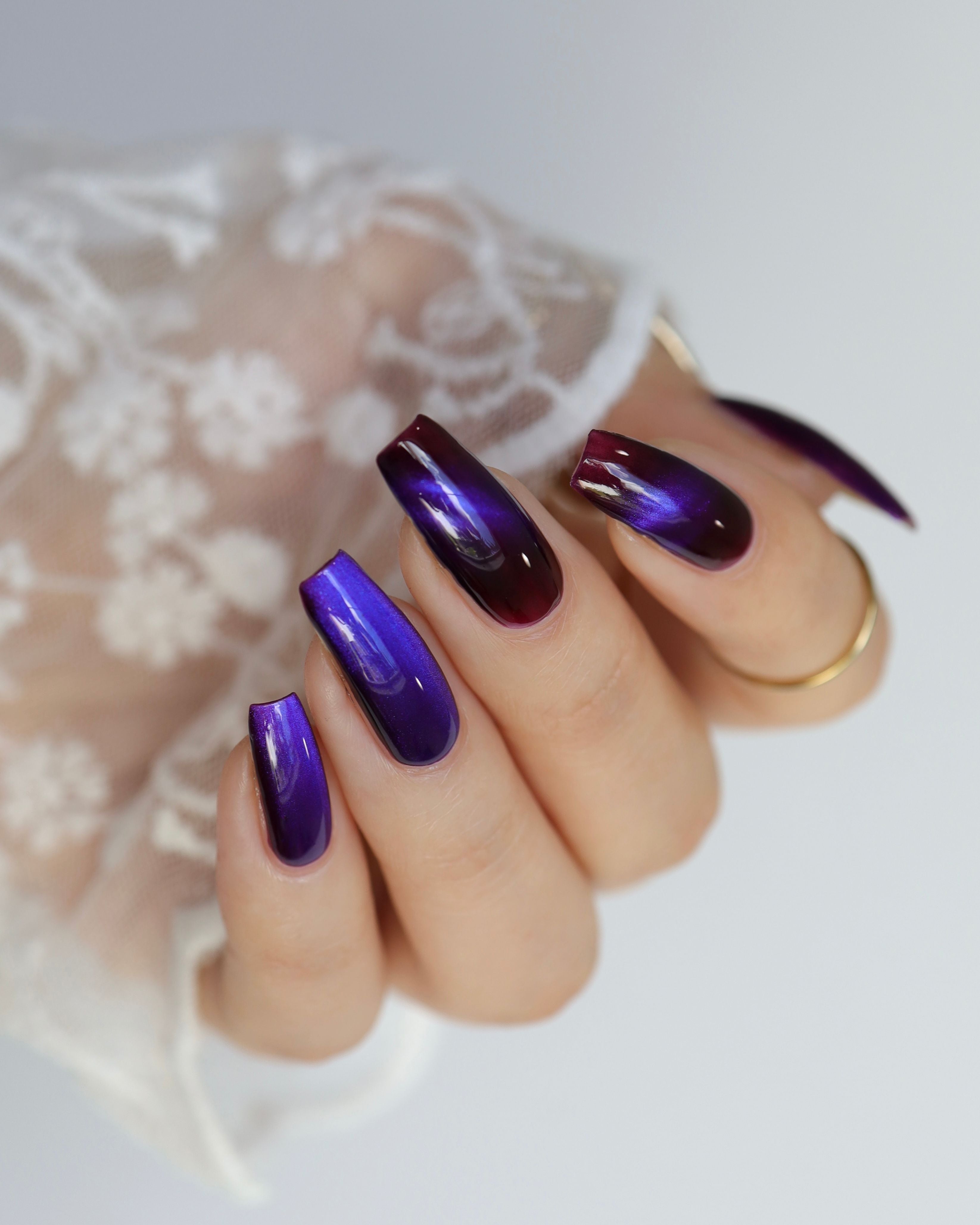 a sister polish to Goddess of Spring, this is a deep burgundy with a cobalt magnetic shimmer