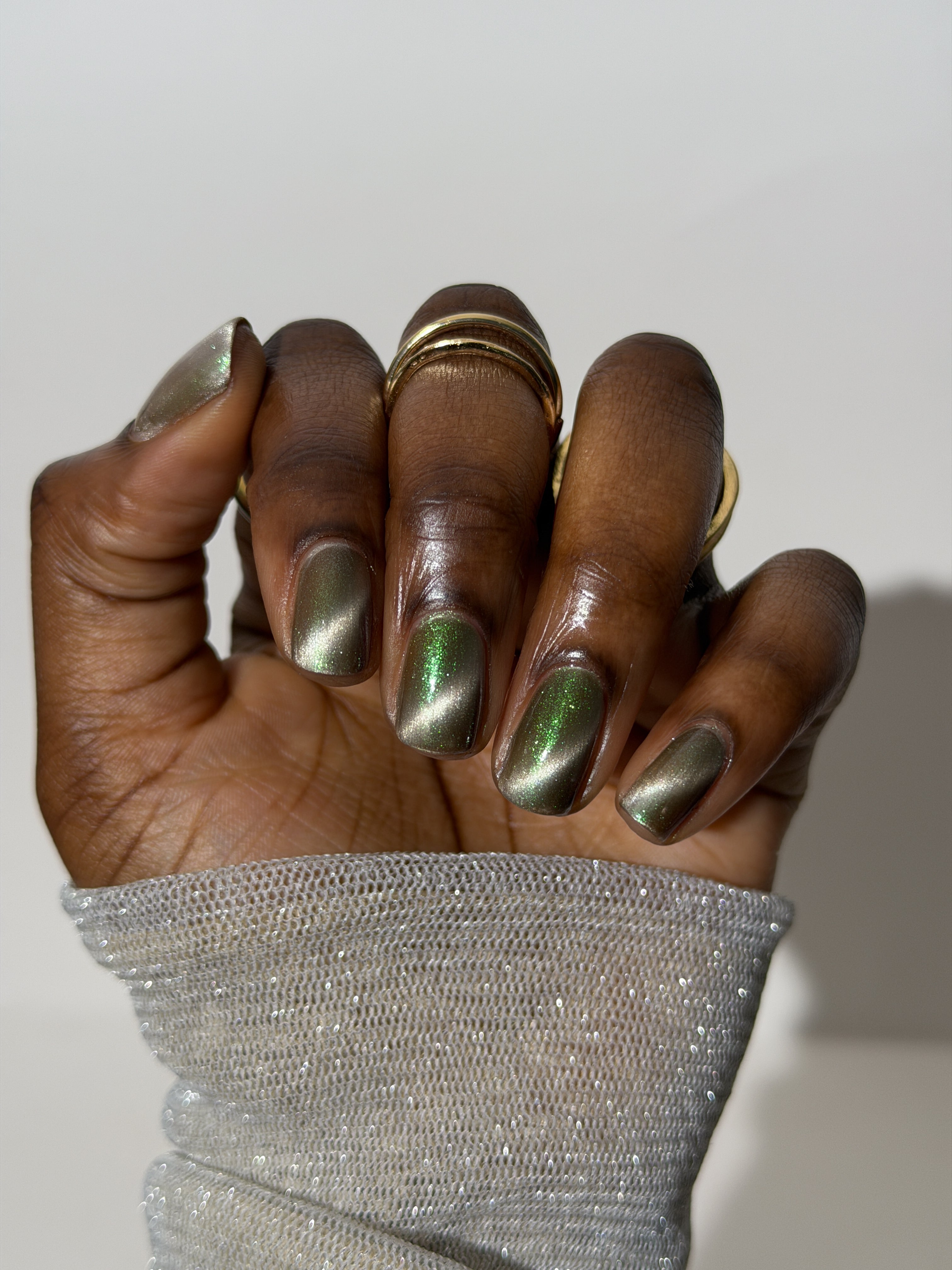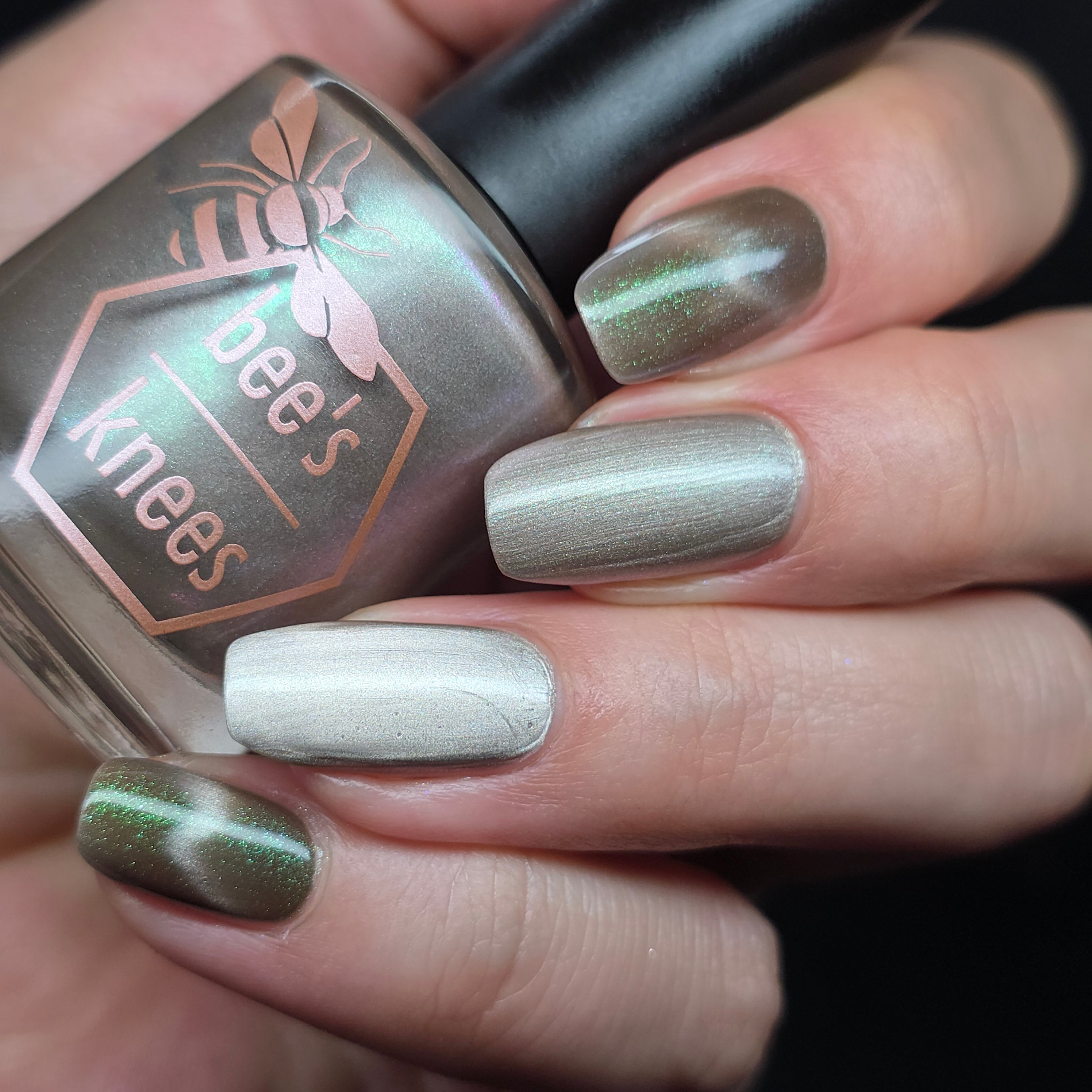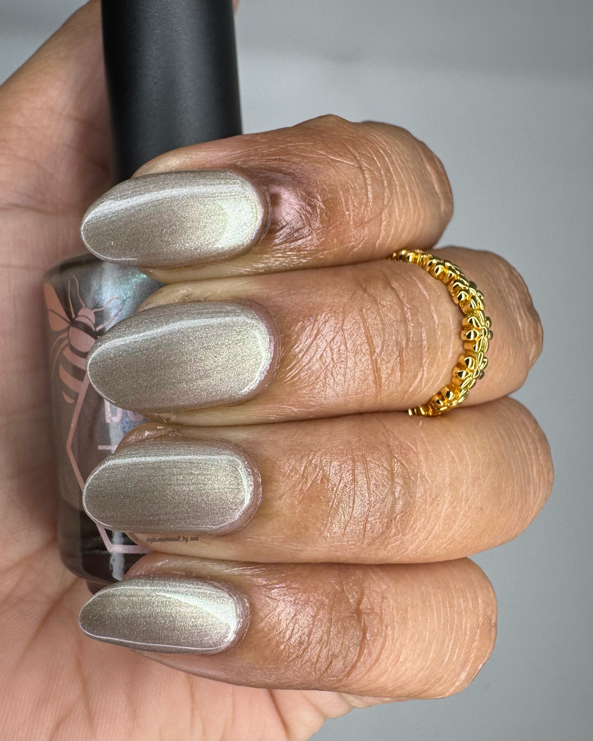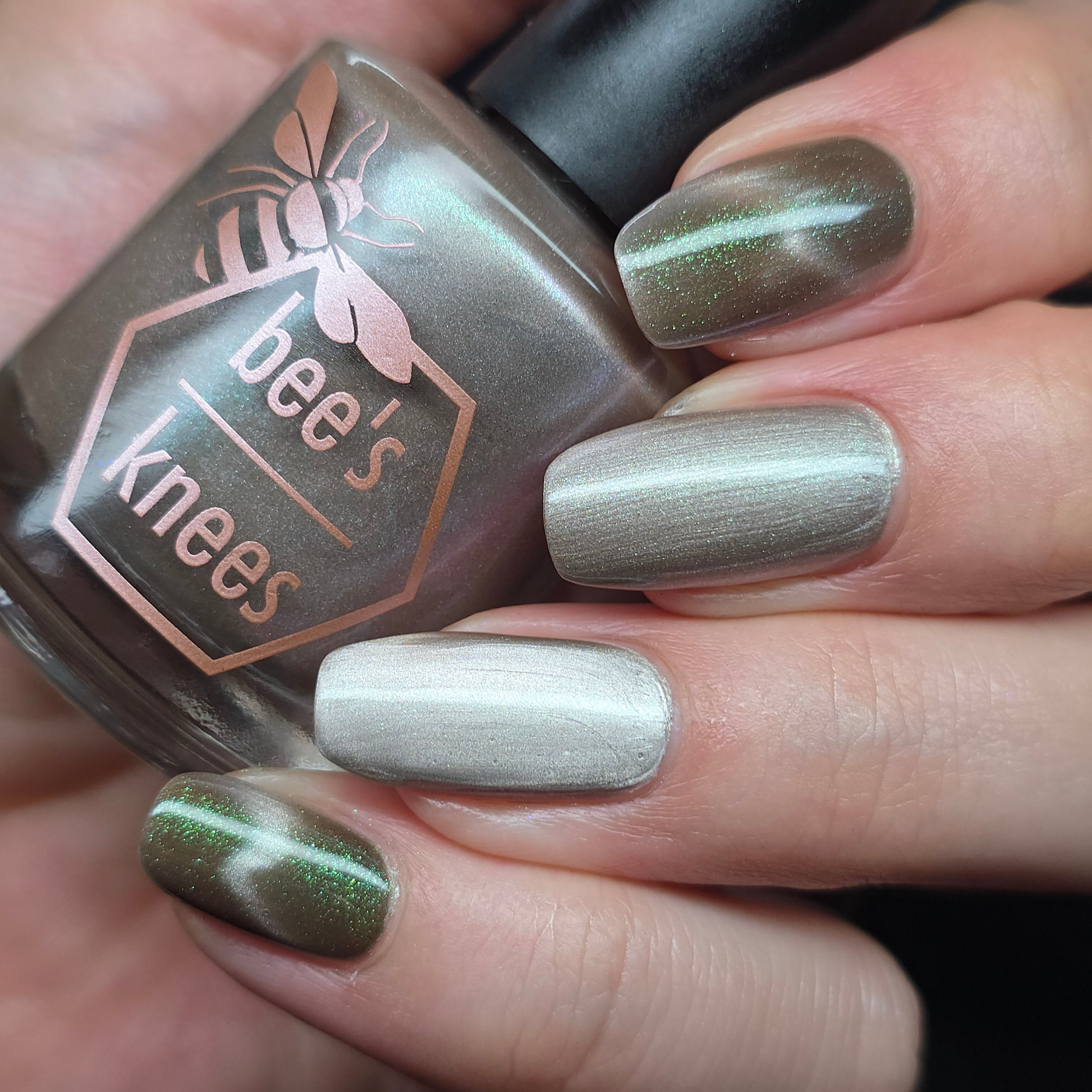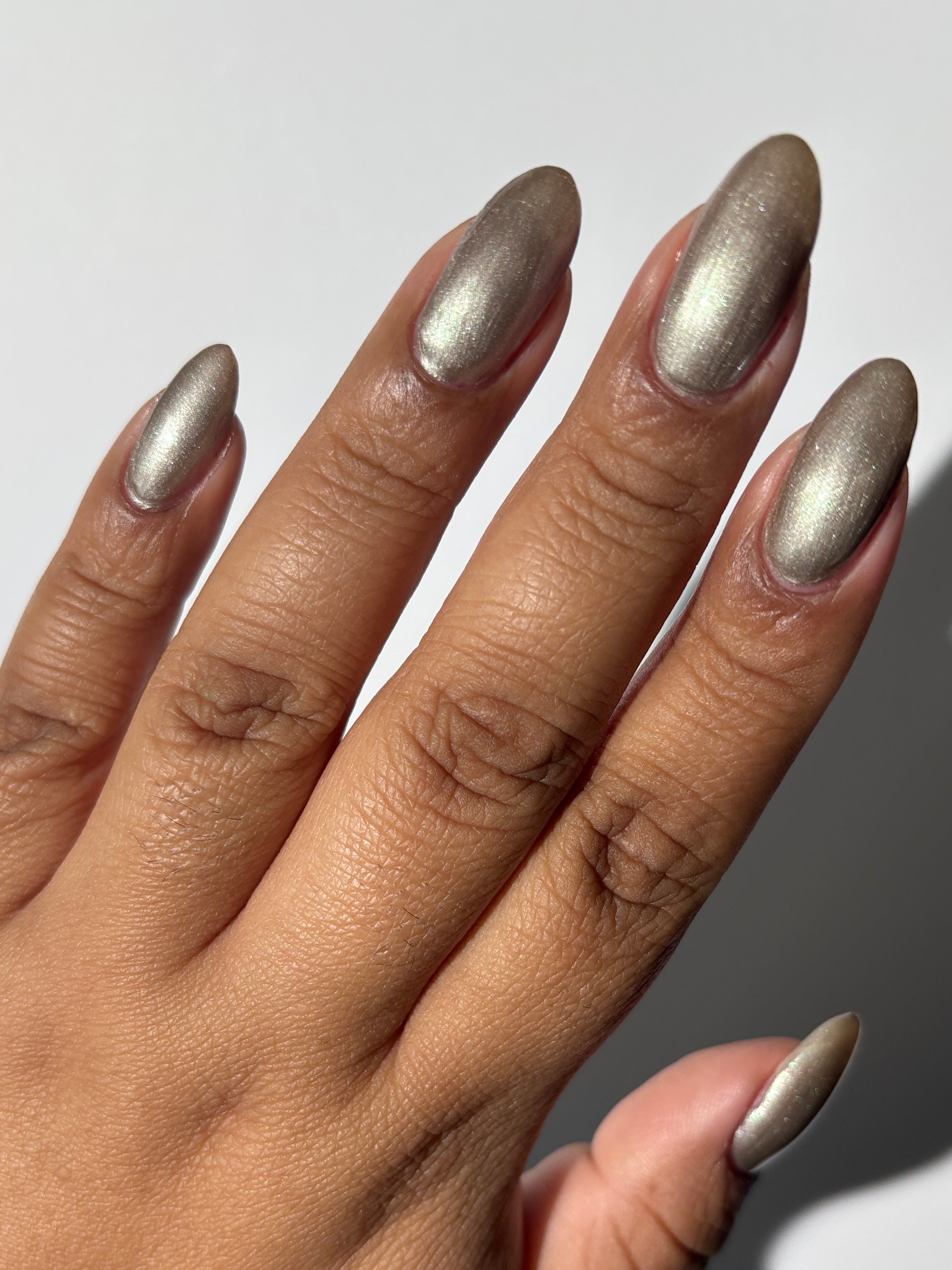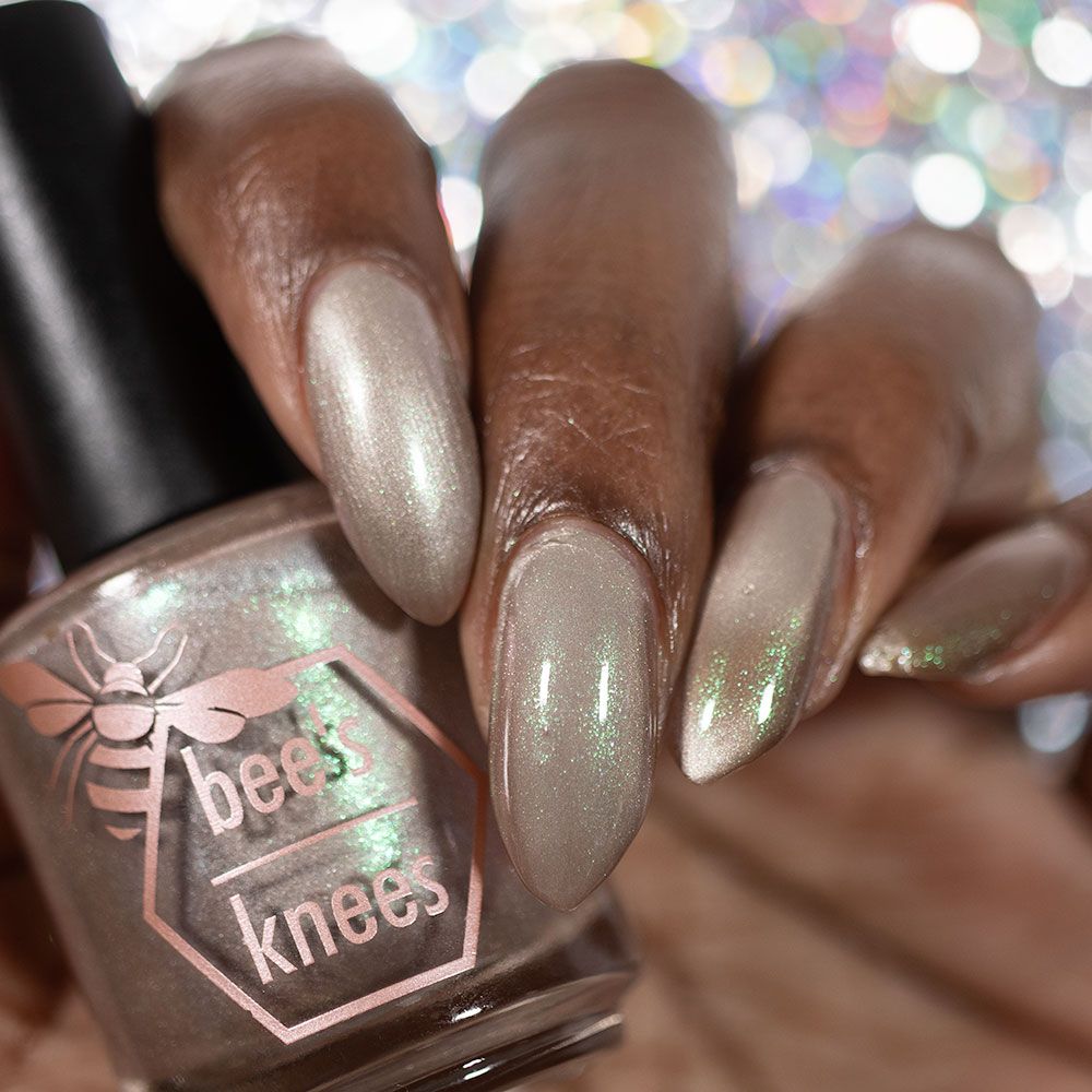 a weathered bone with antique gold magnetic shimmer and green shimmer