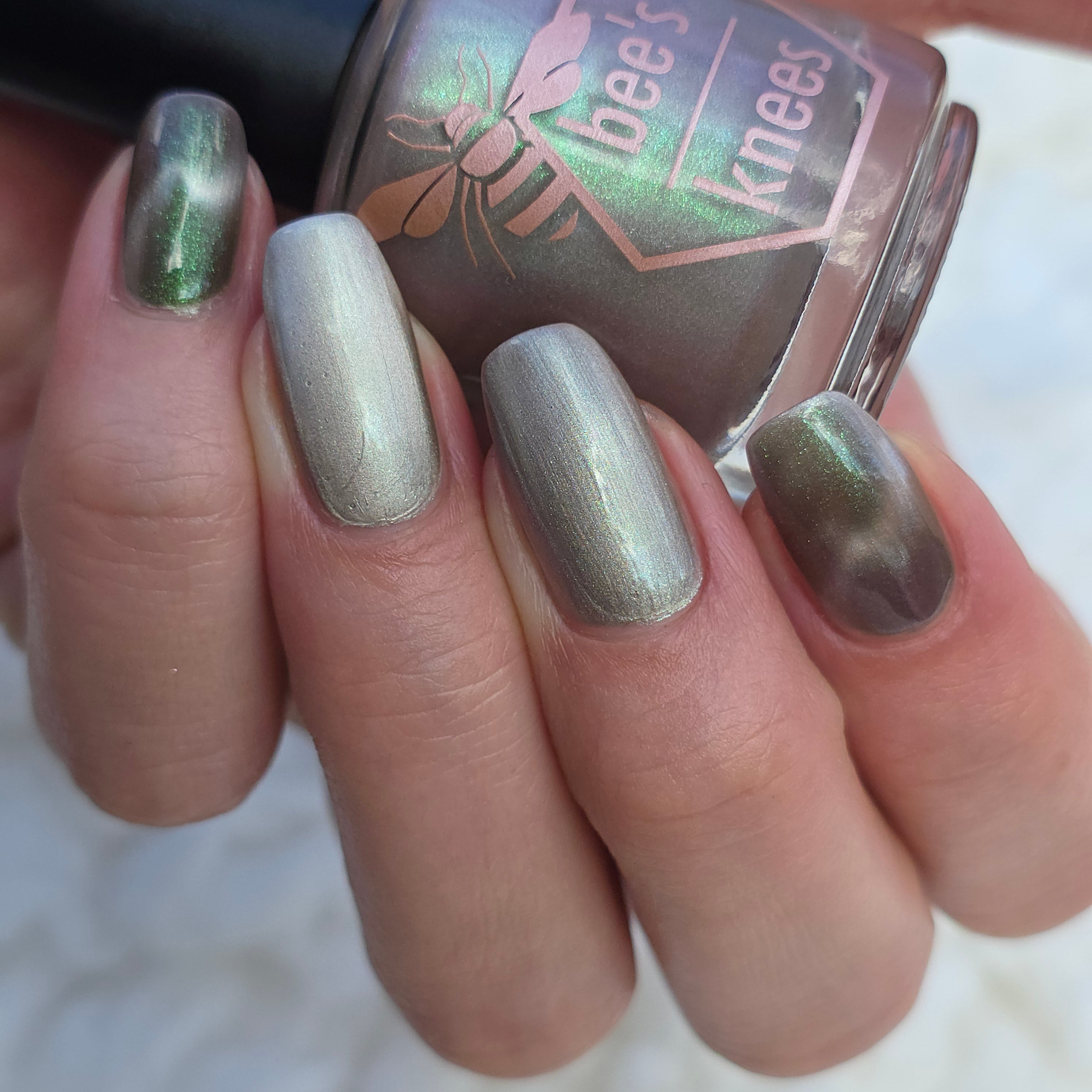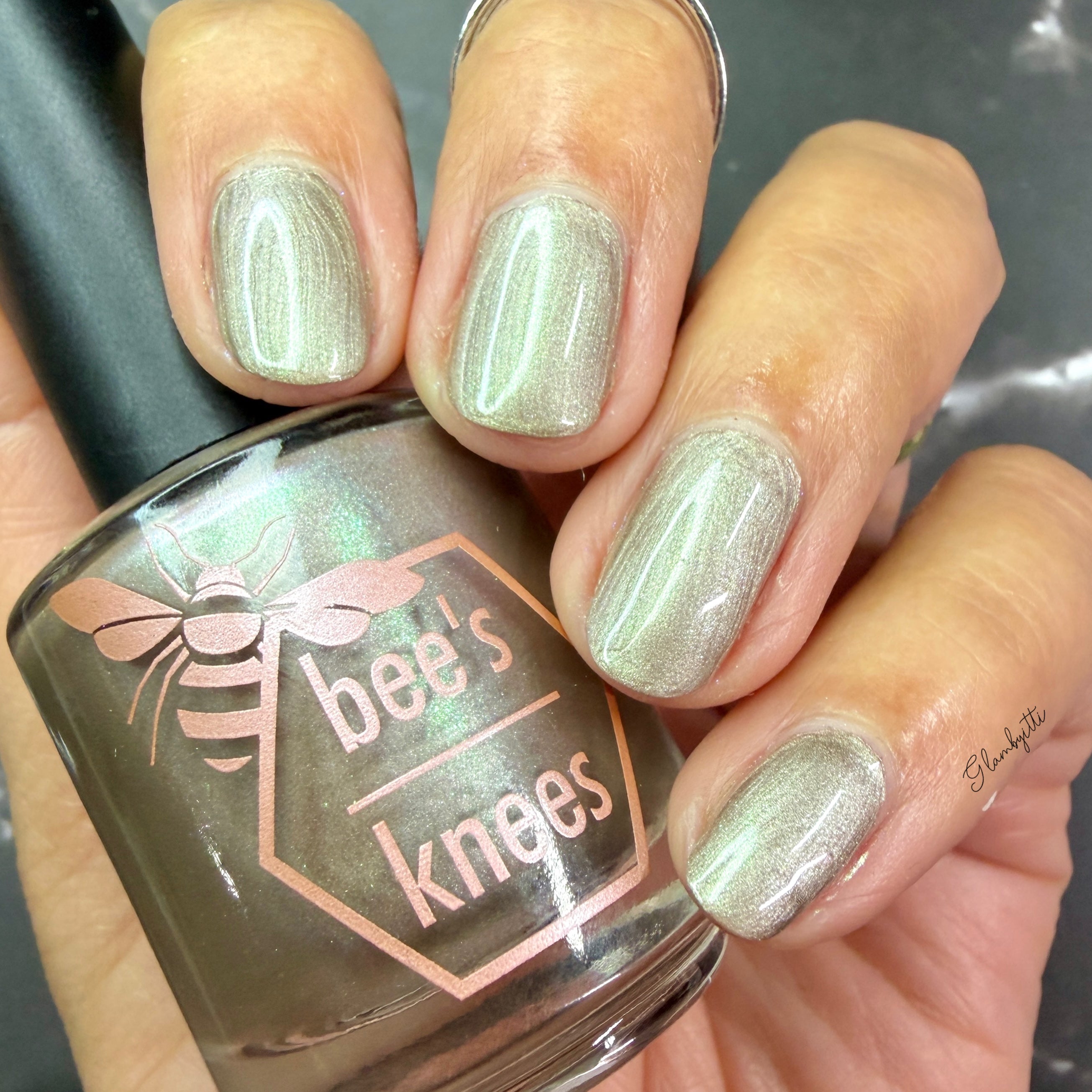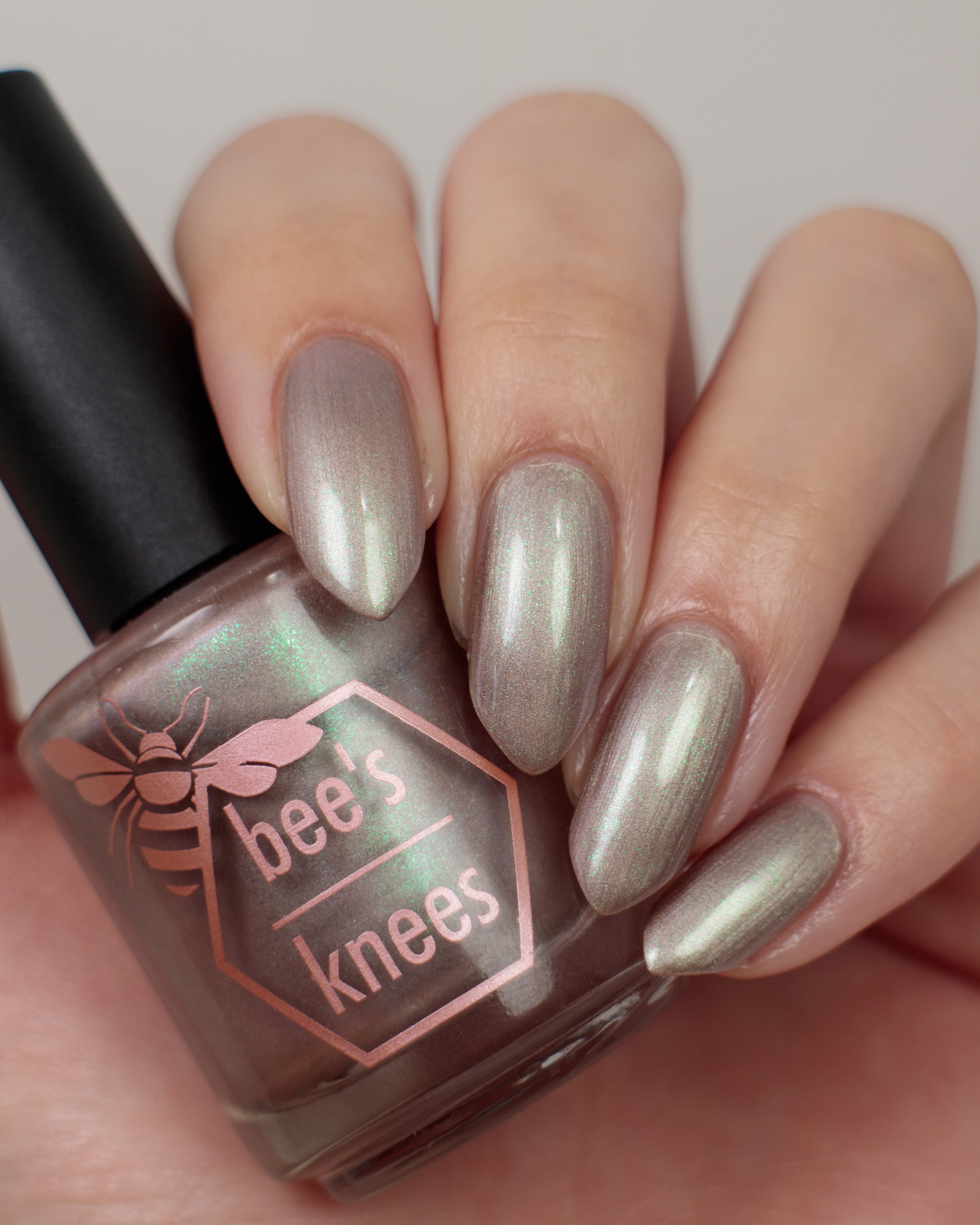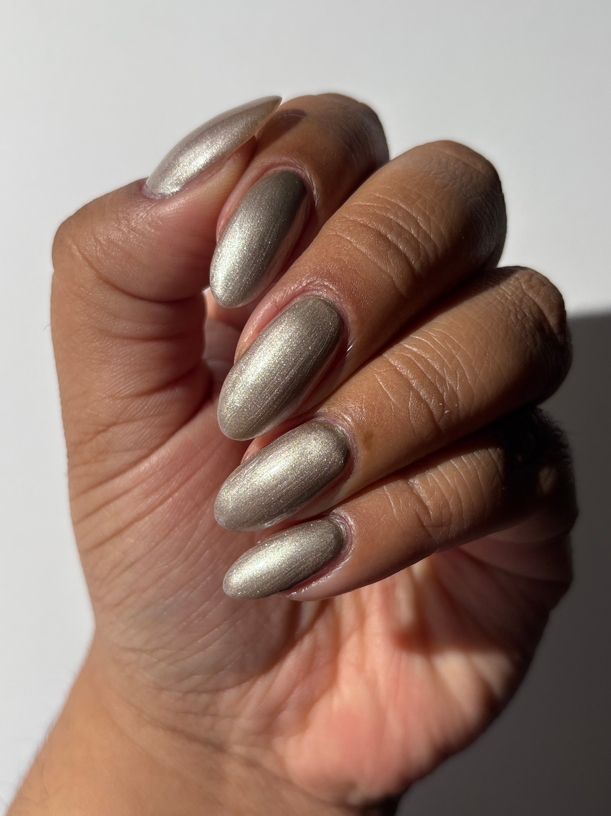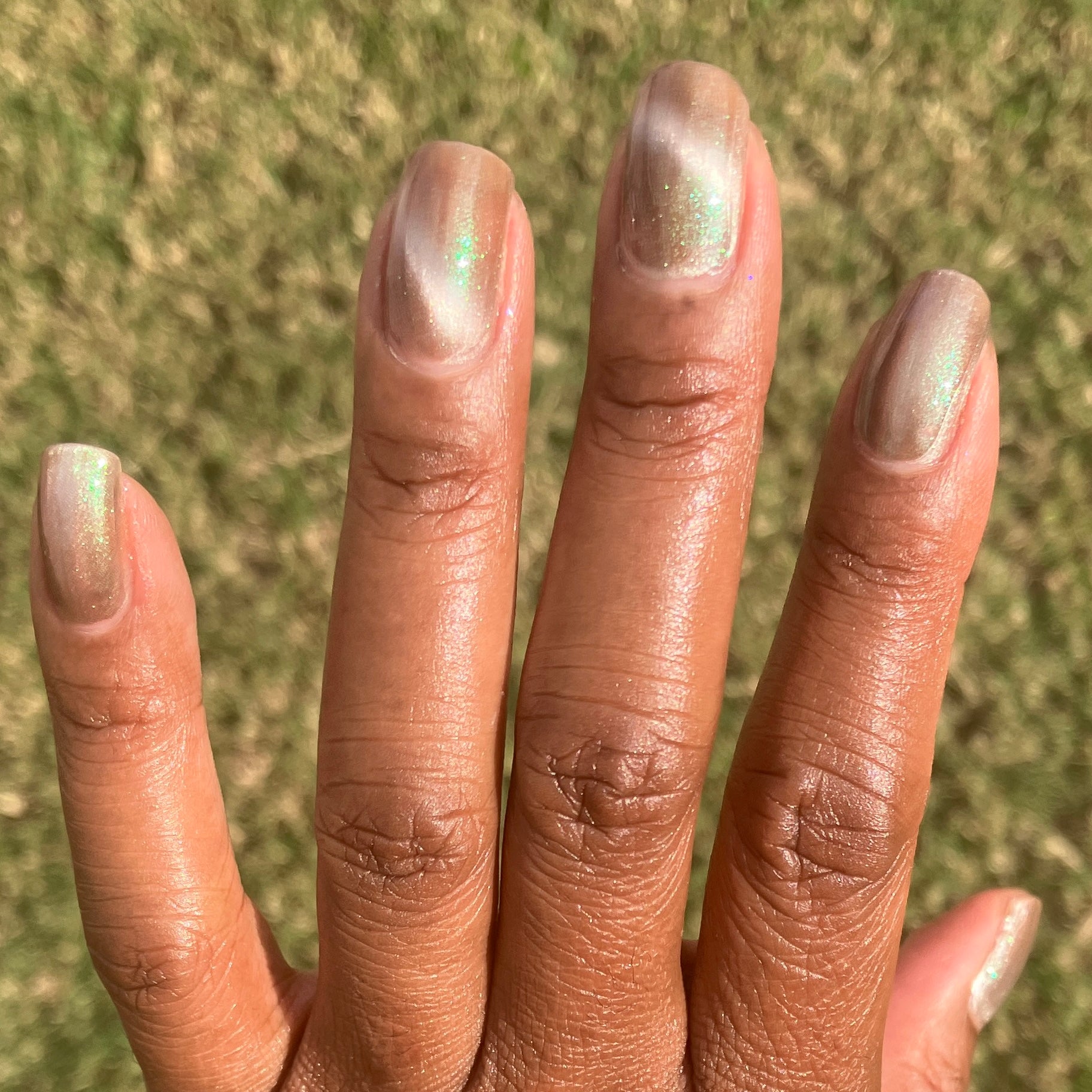 a weathered bone with antique gold magnetic shimmer and green shimmer