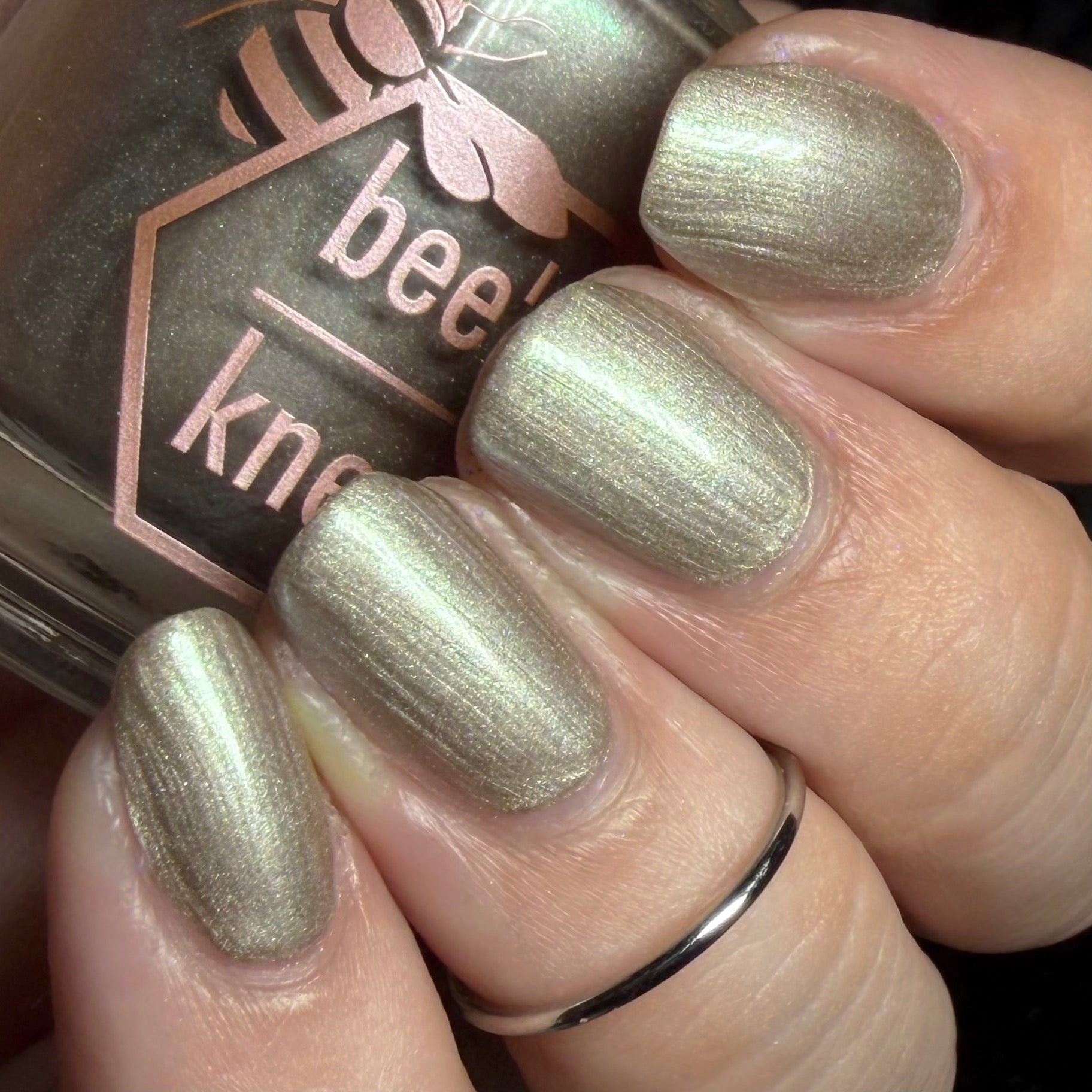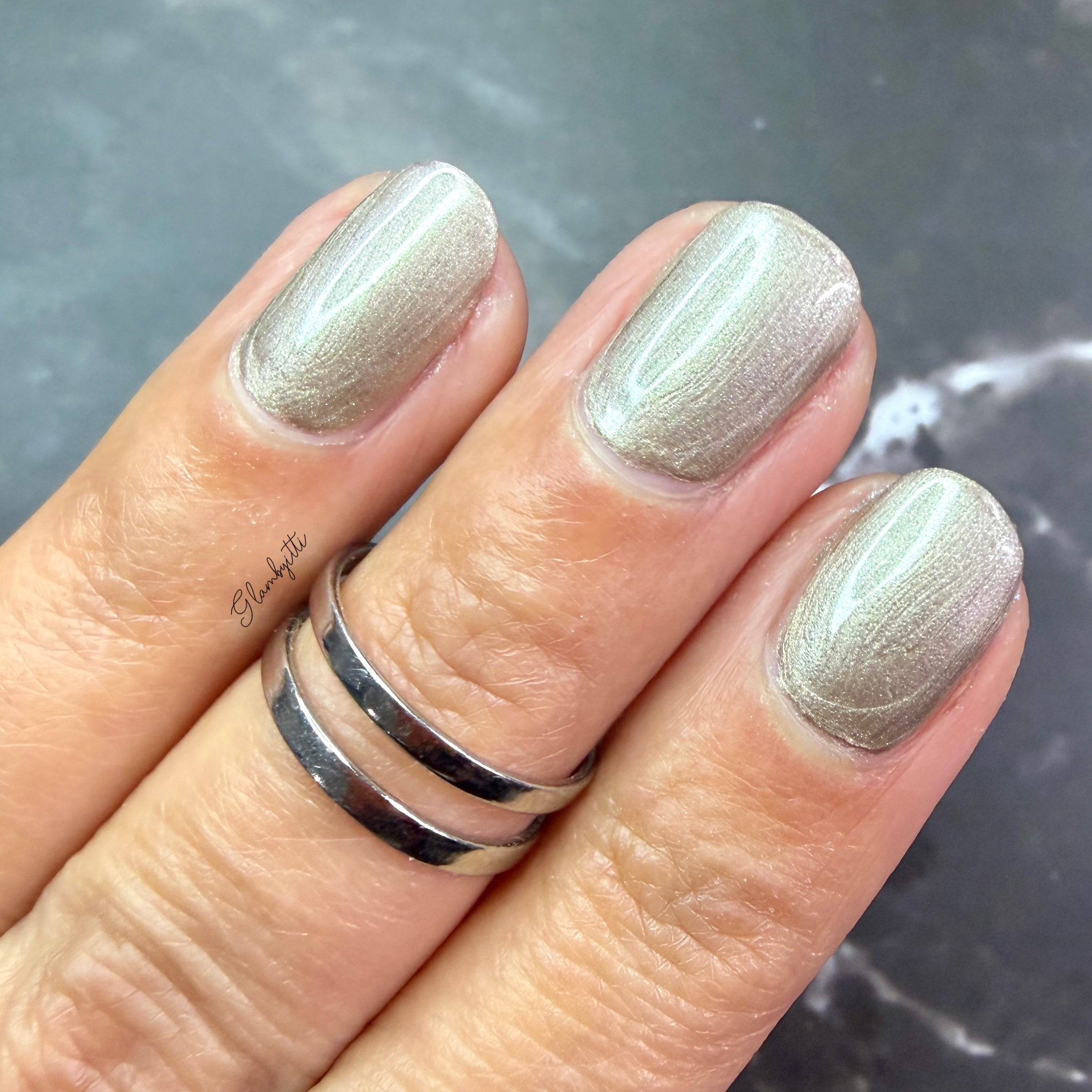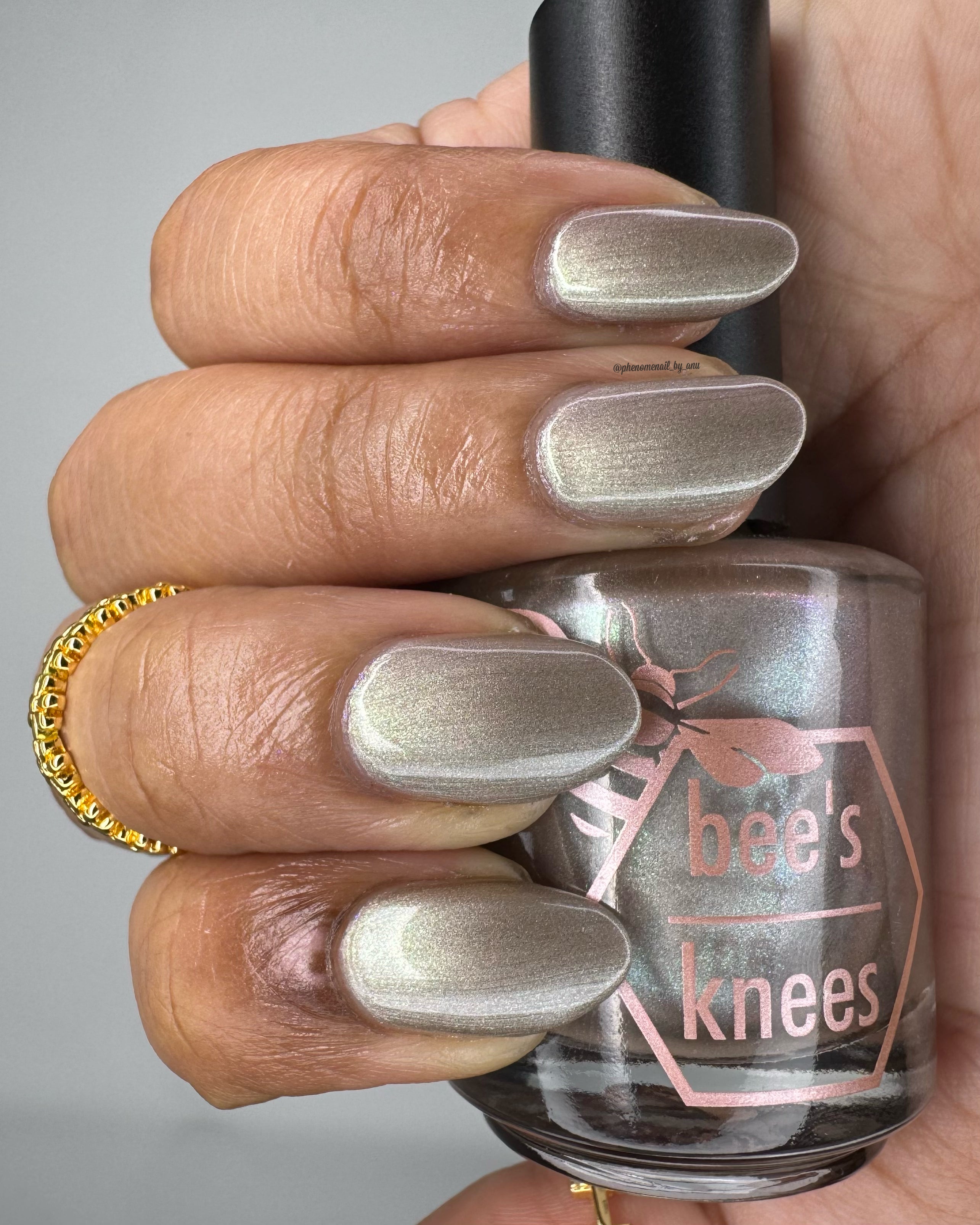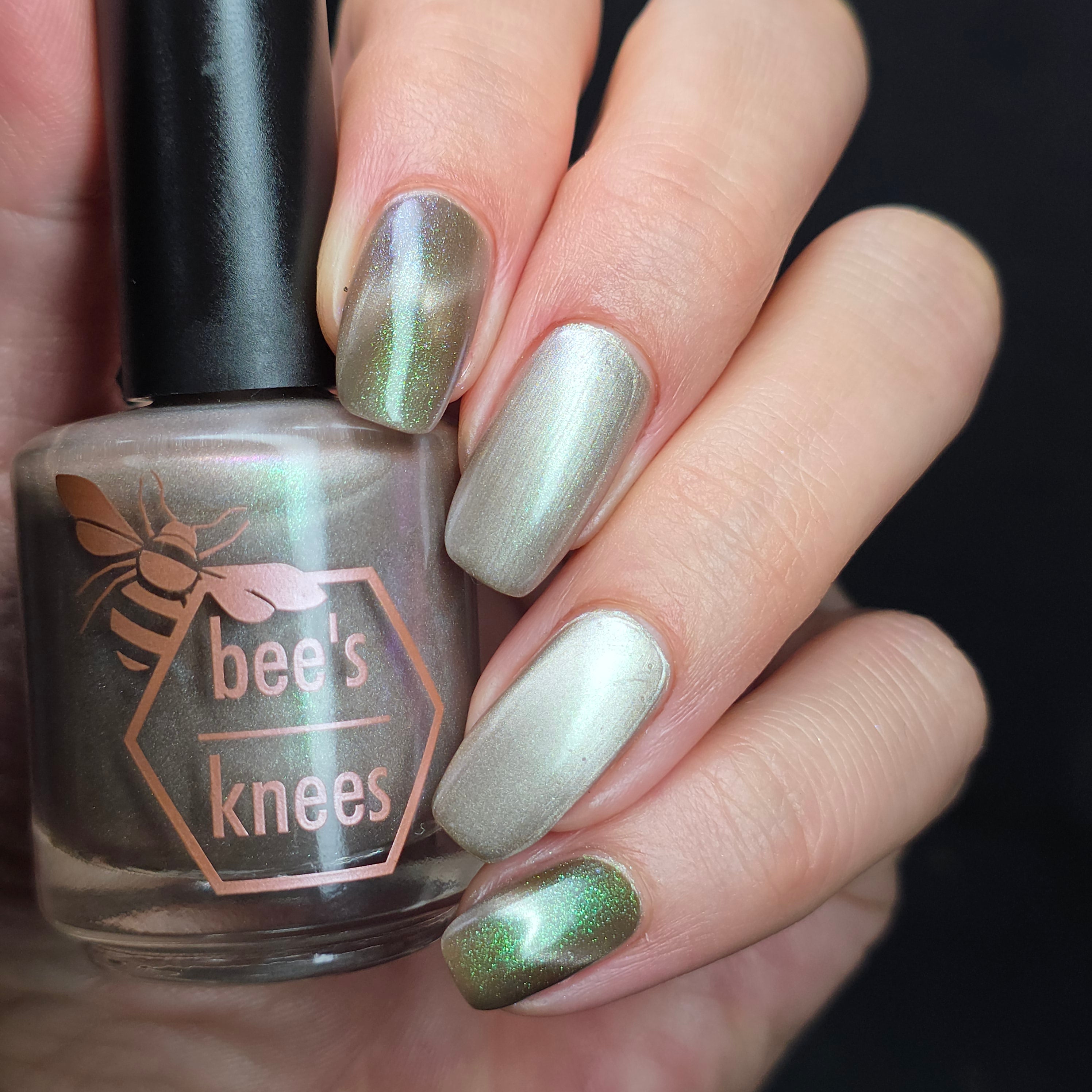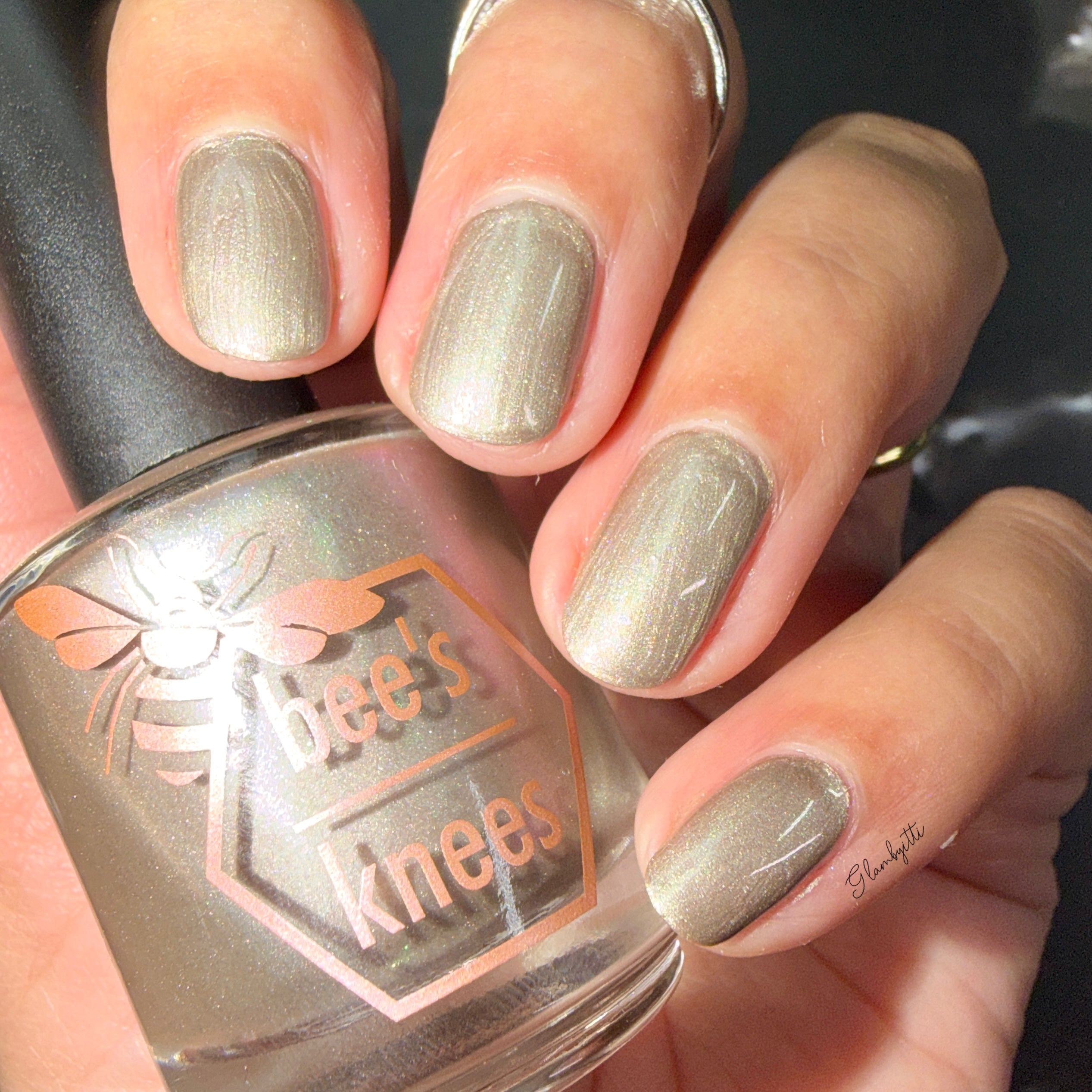 a weathered bone with antique gold magnetic shimmer and green shimmer