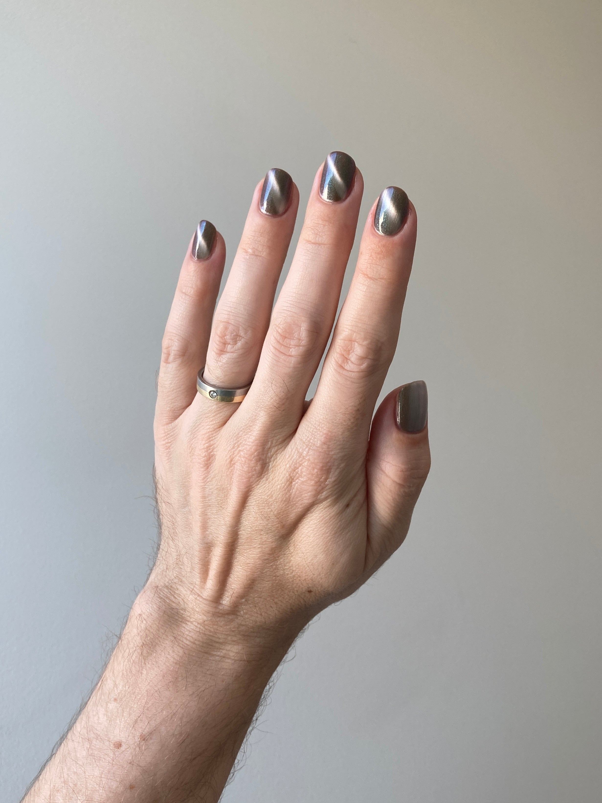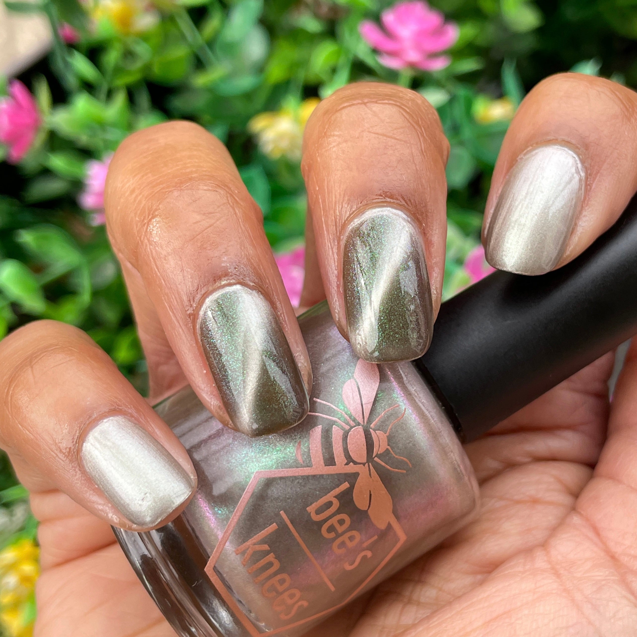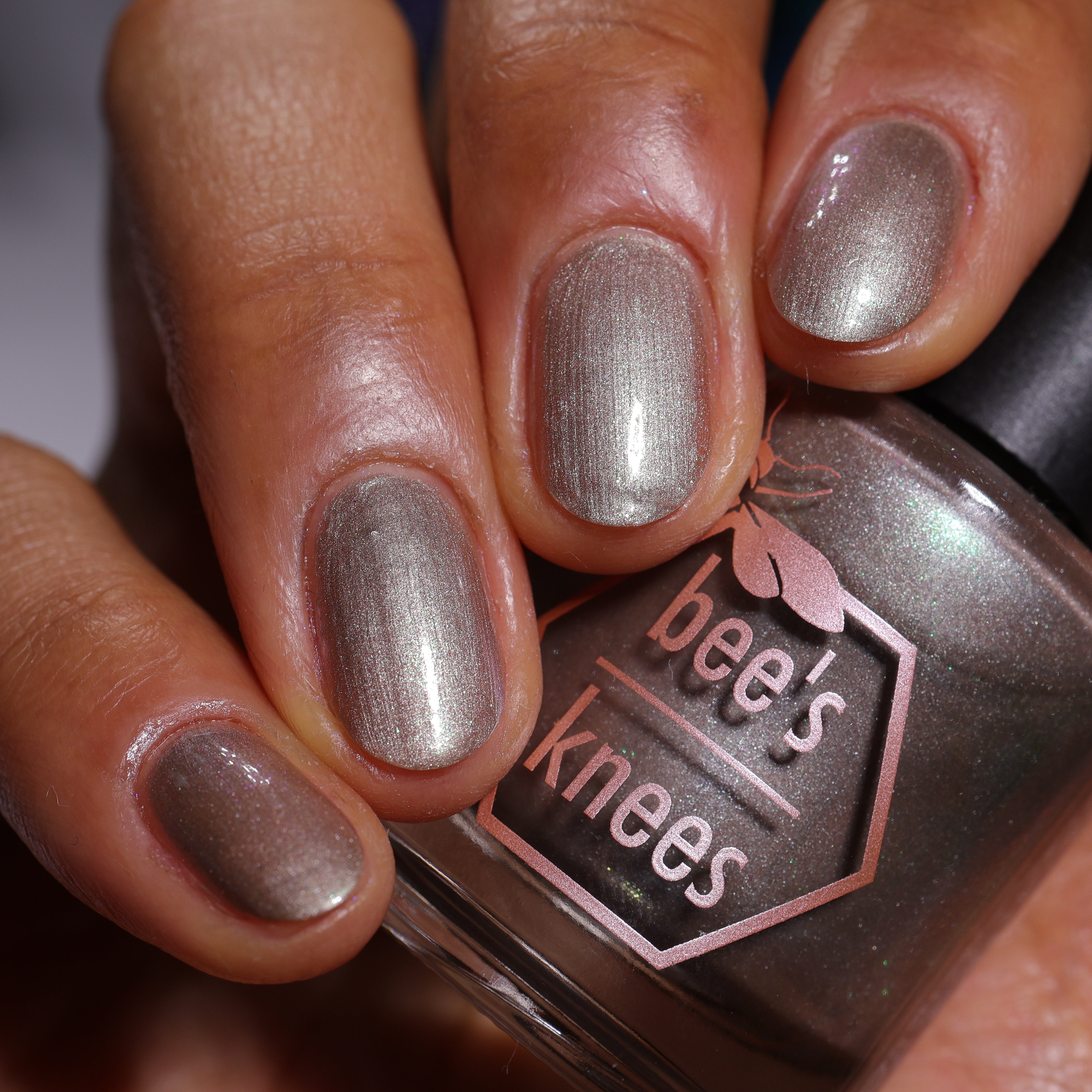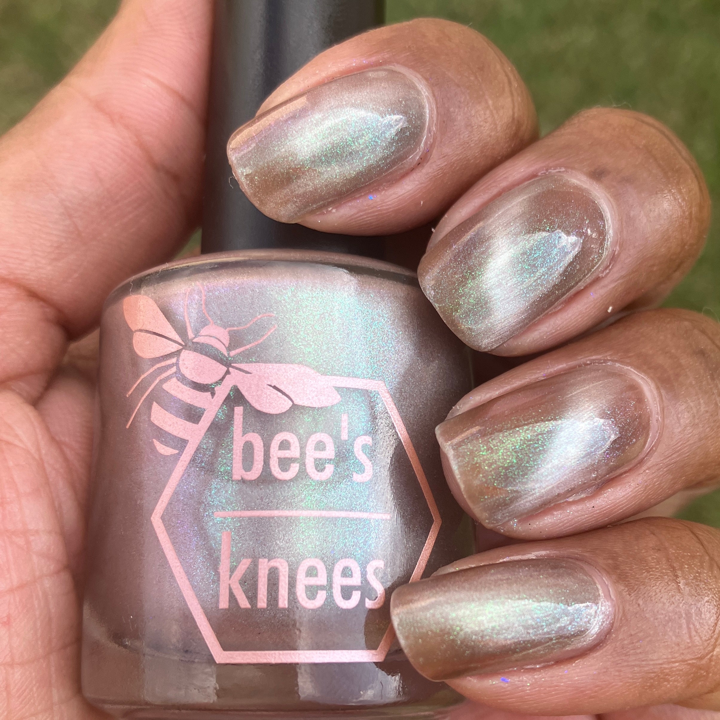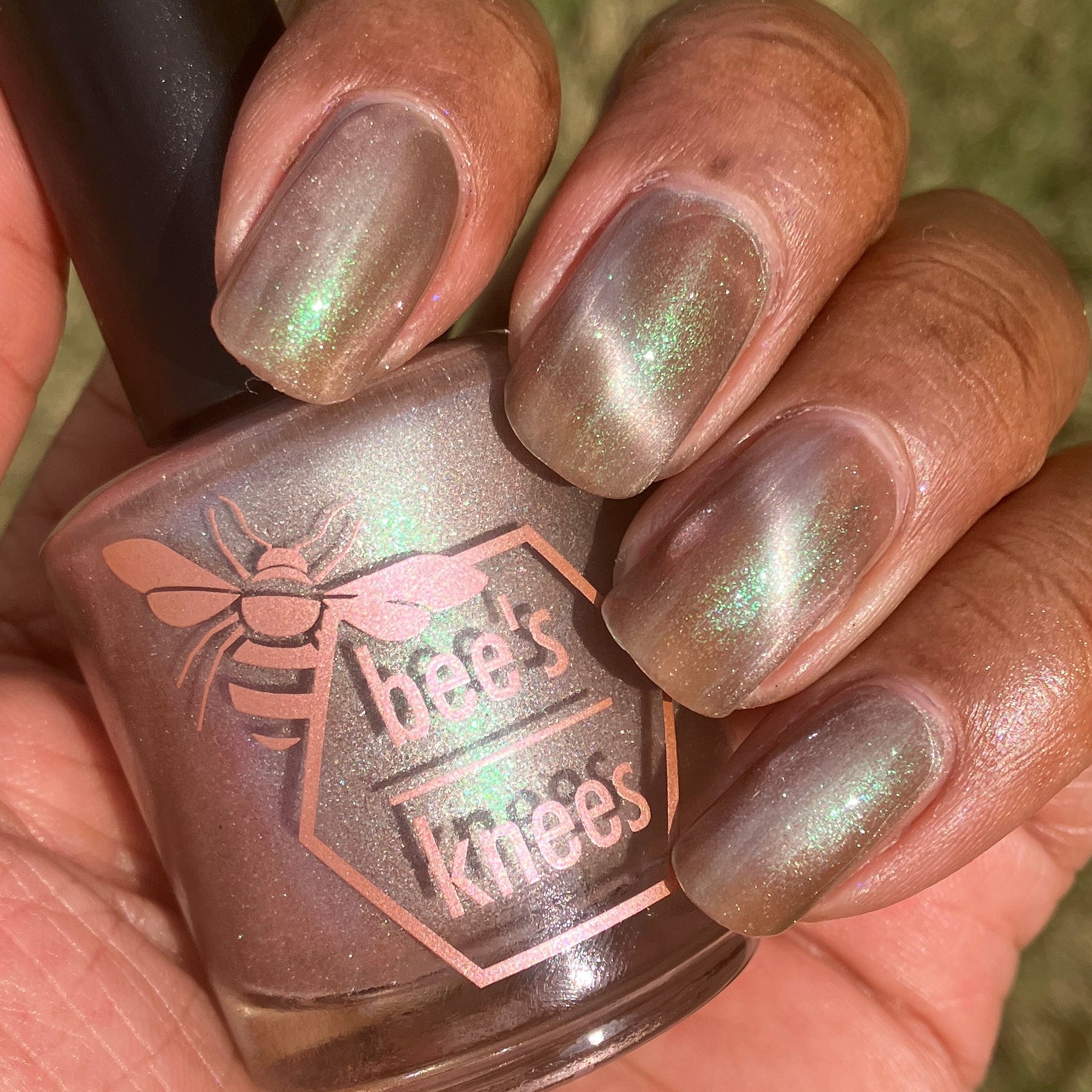 a weathered bone with antique gold magnetic shimmer and green shimmer