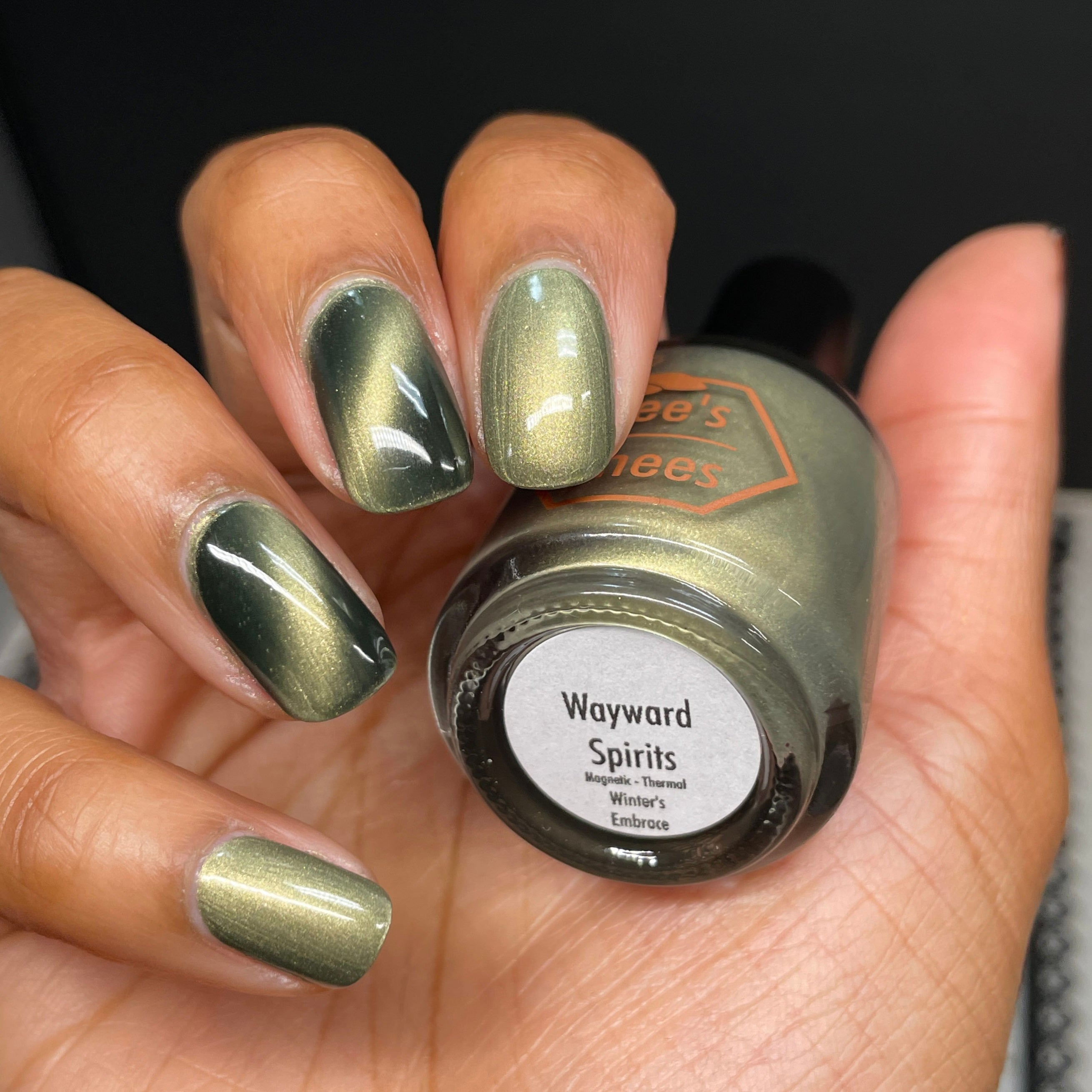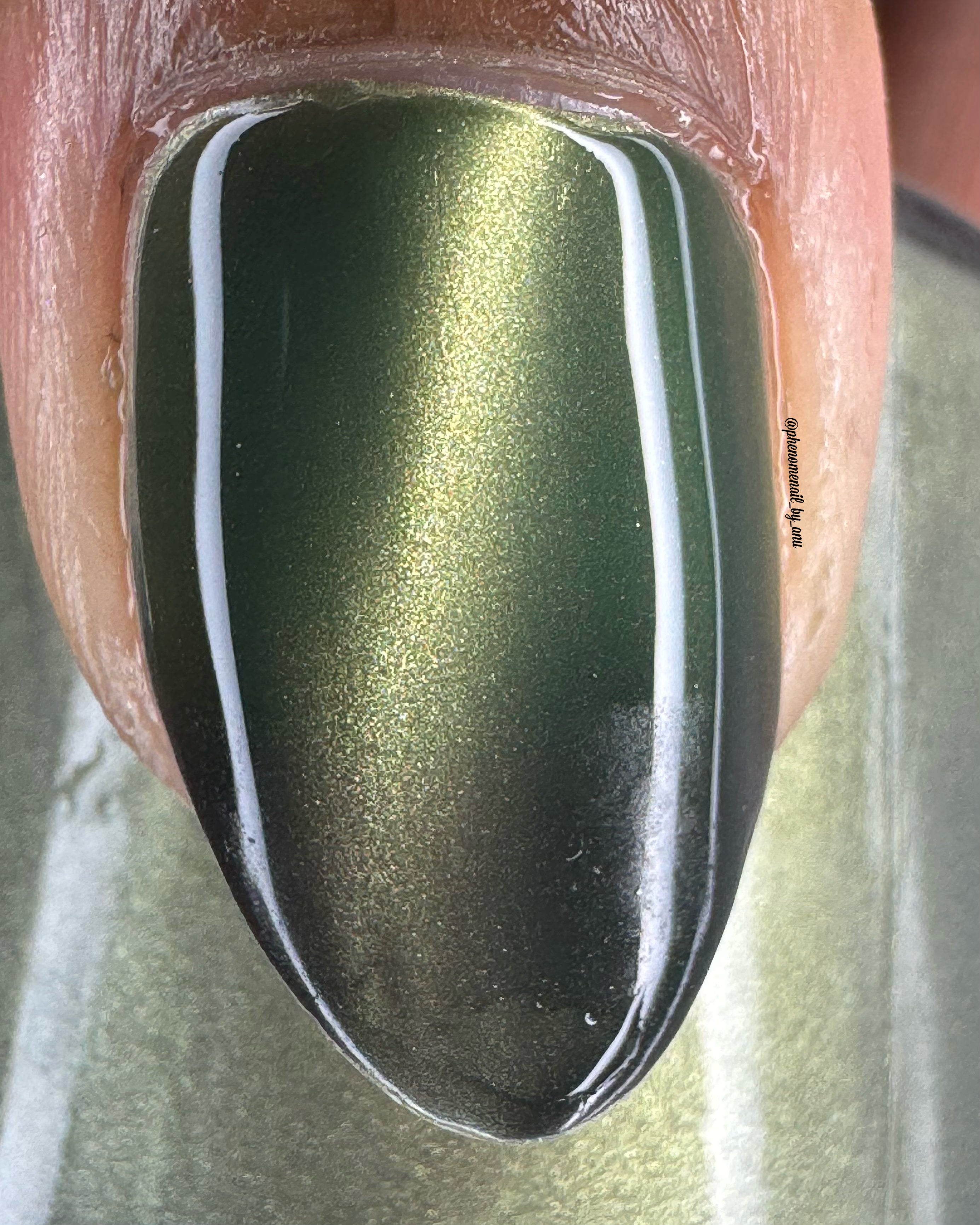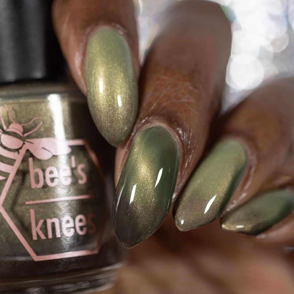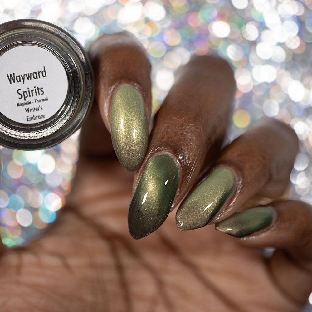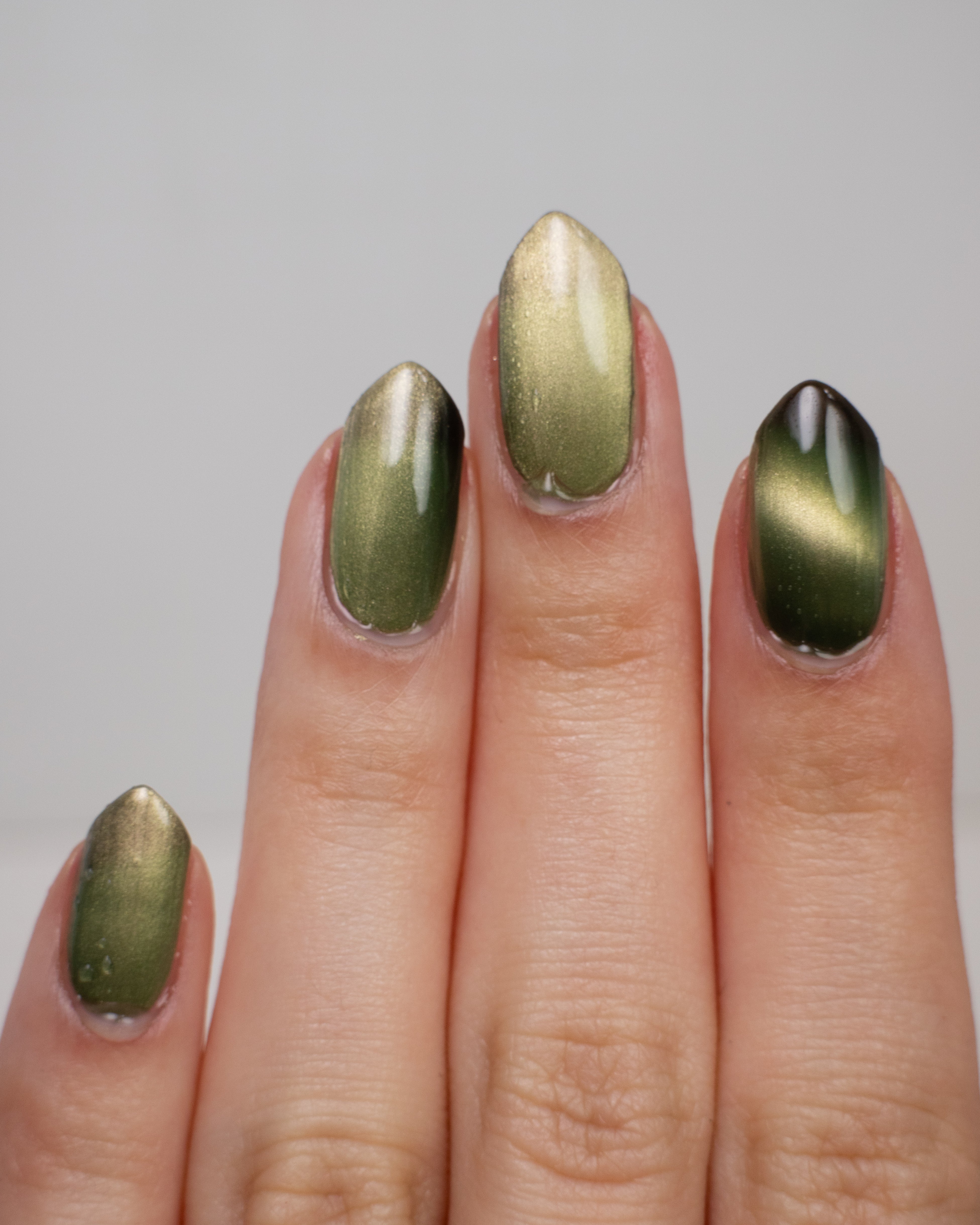 a green to black thermal with gold magnetic shimmer