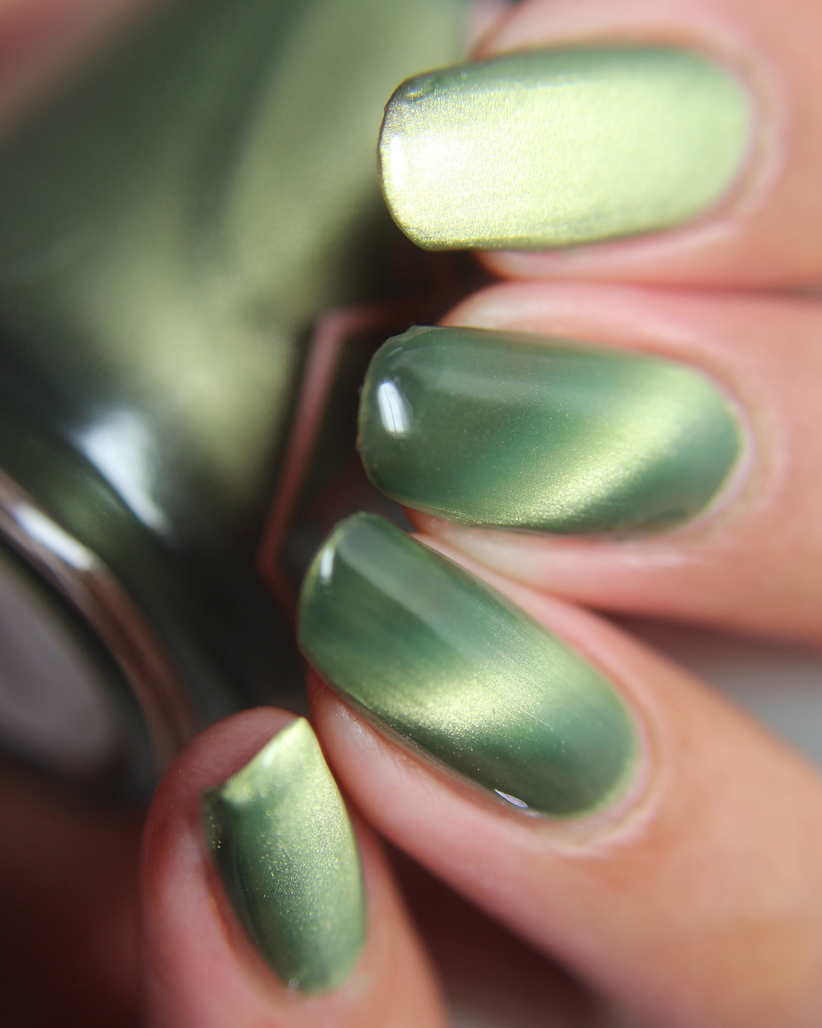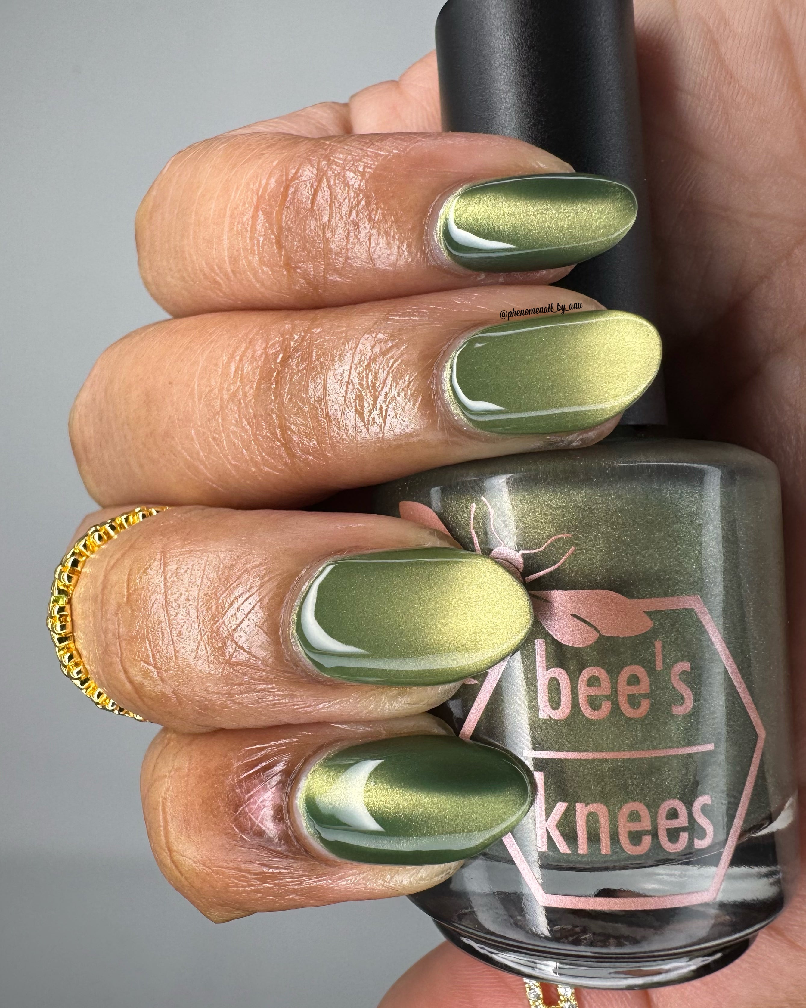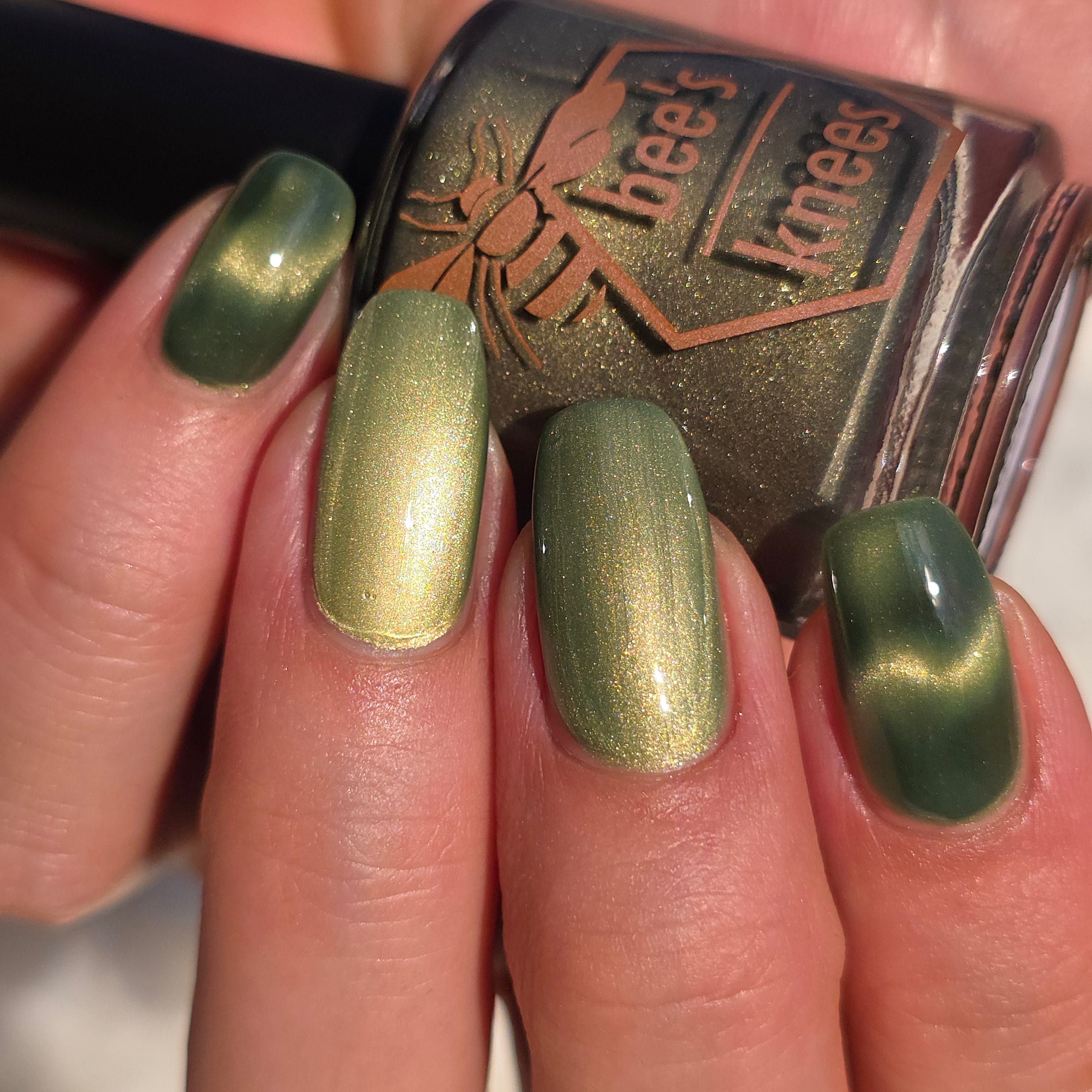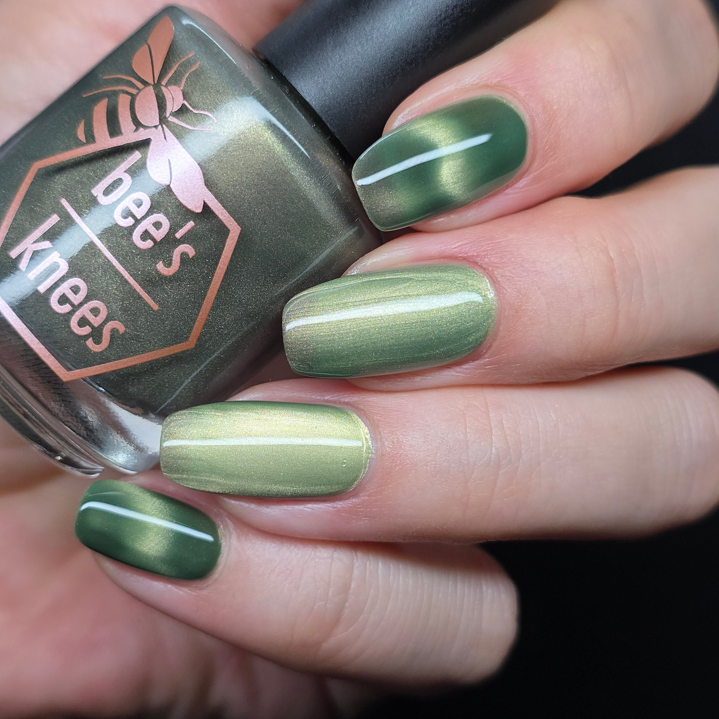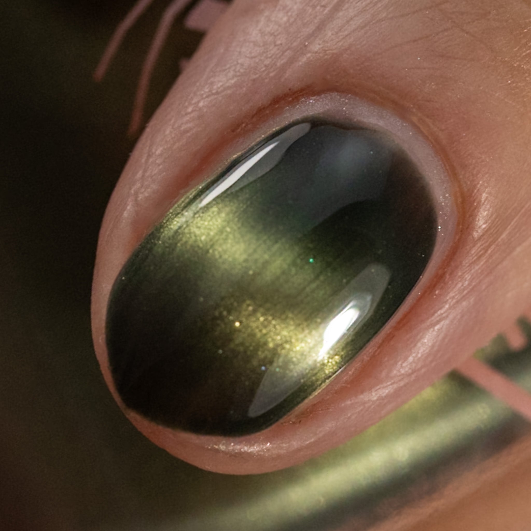 a green to black thermal with gold magnetic shimmer