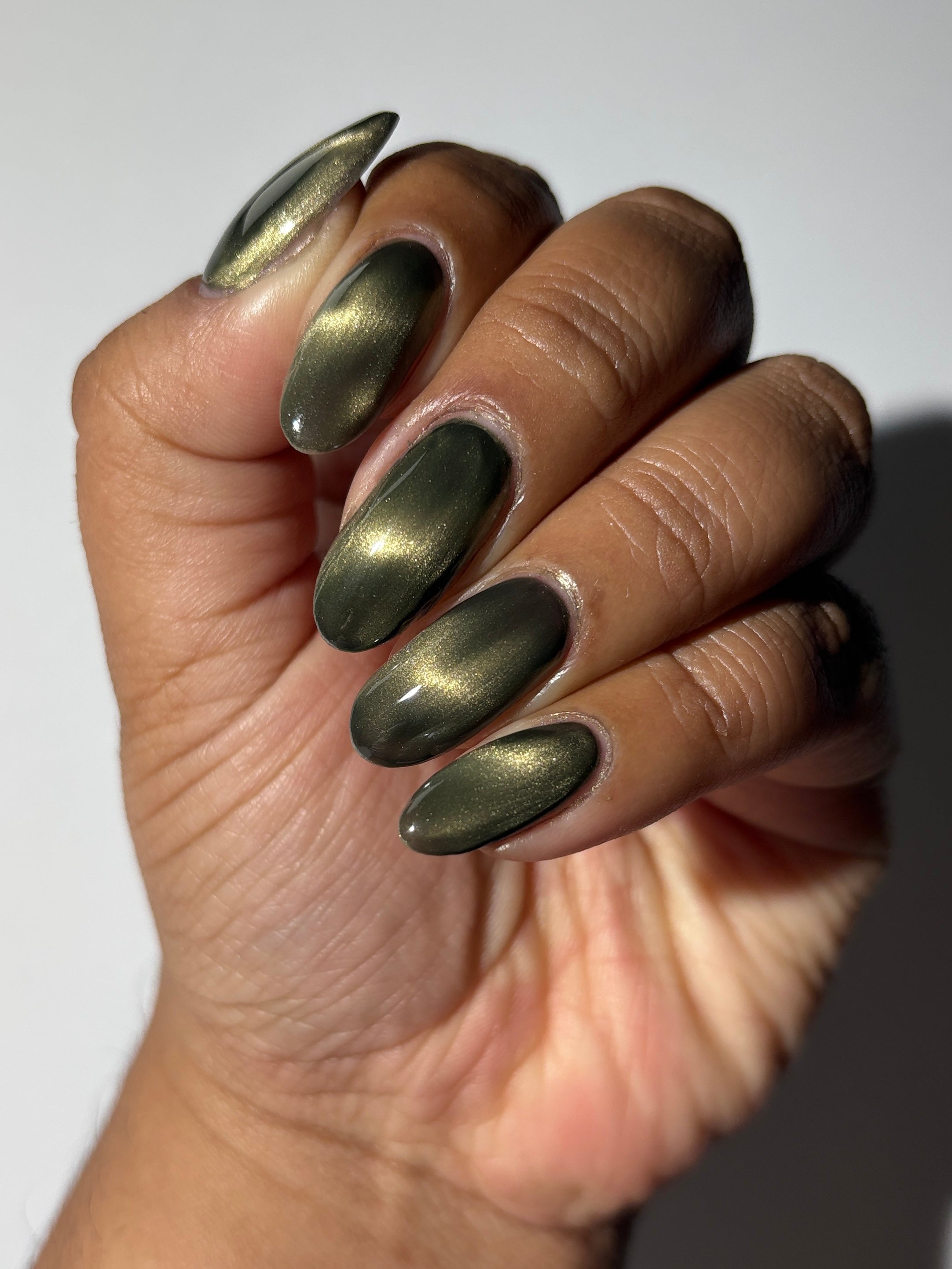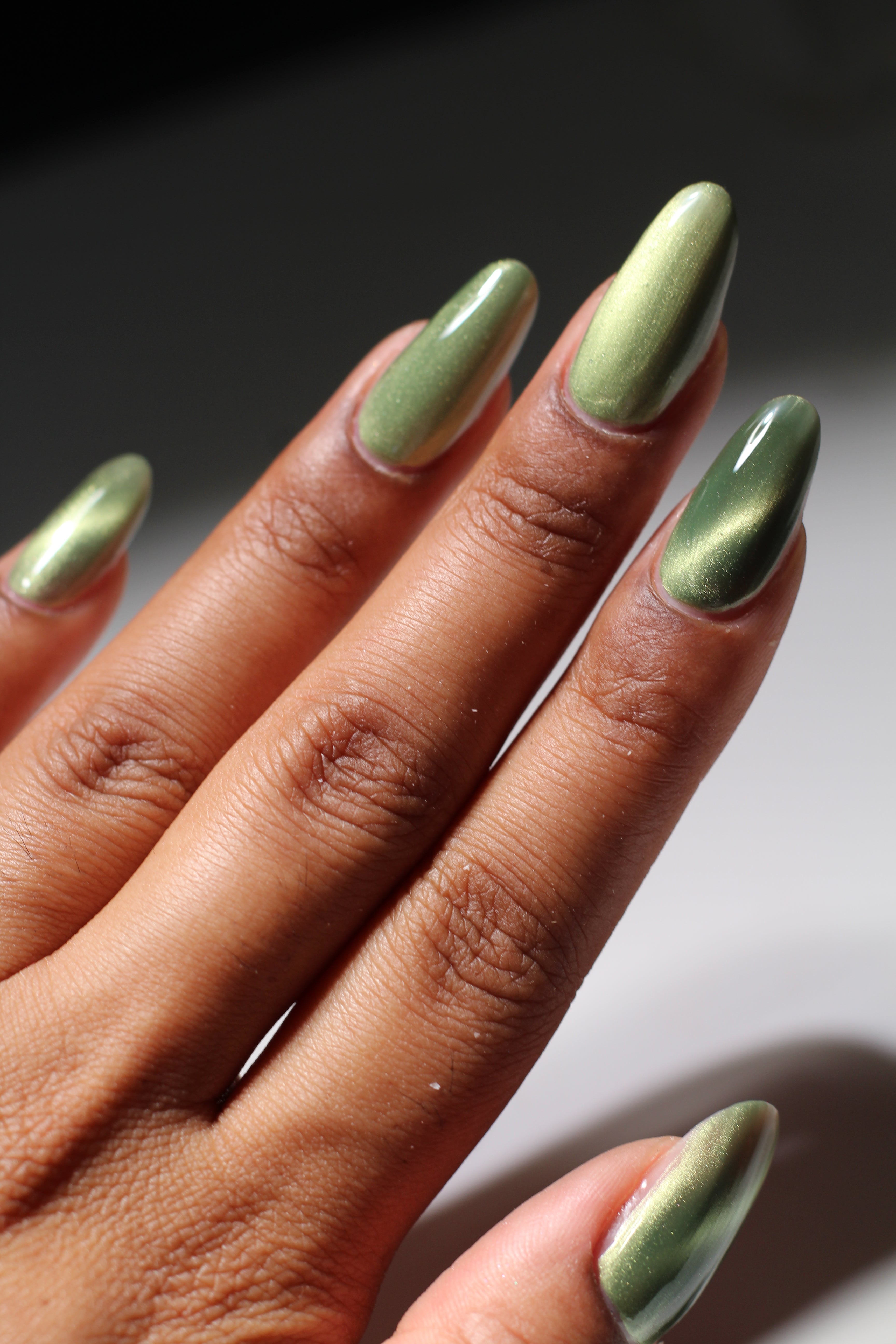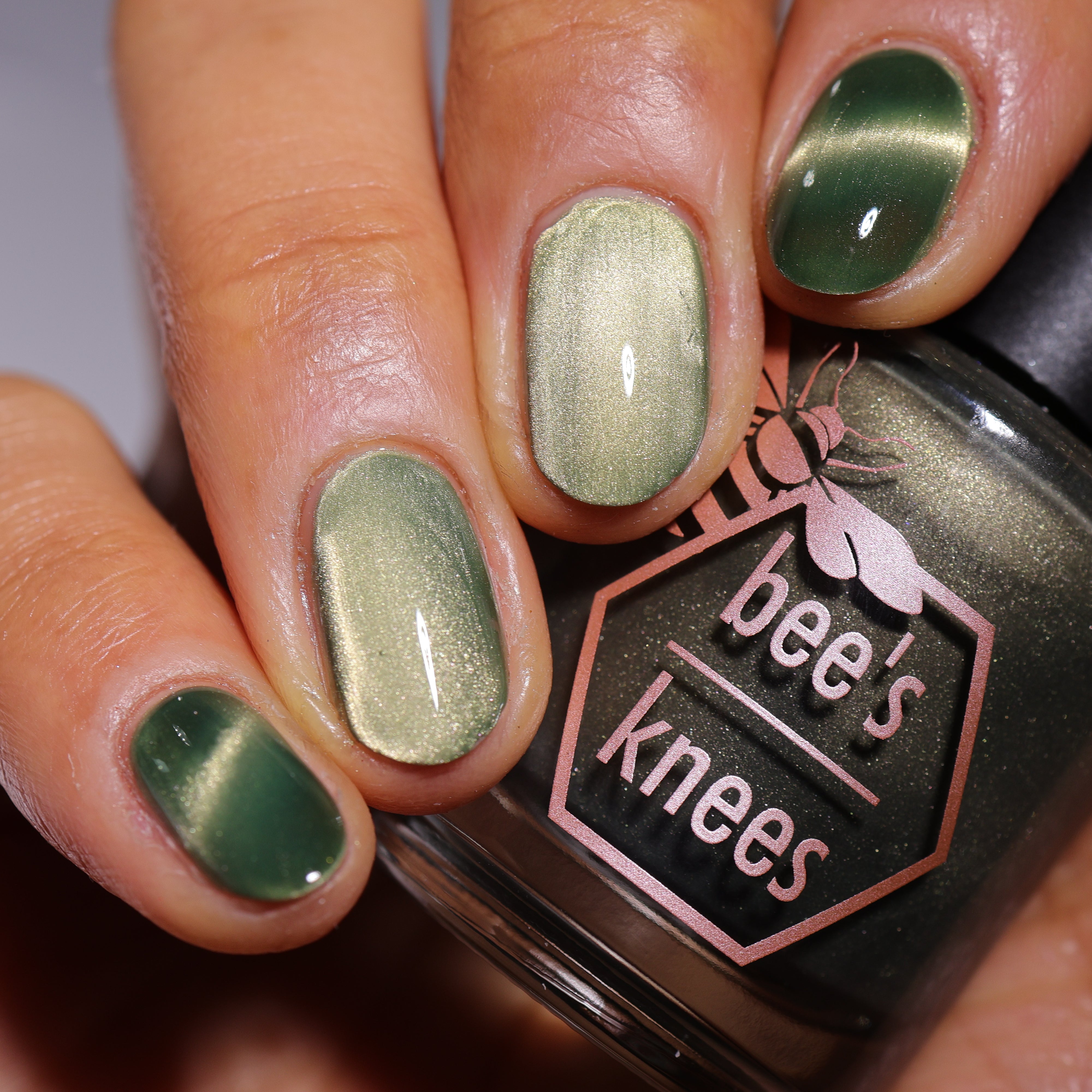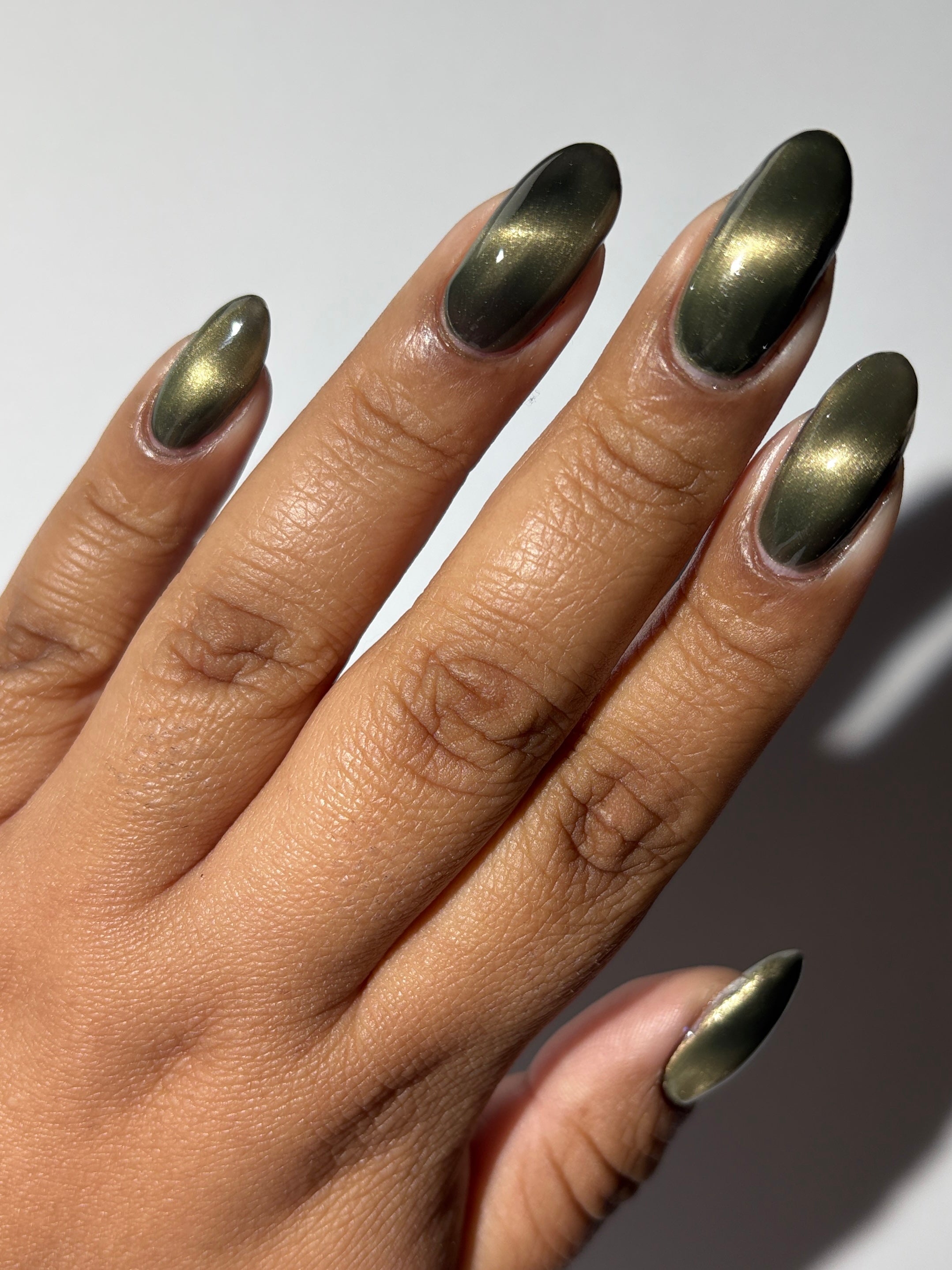 a green to black thermal with gold magnetic shimmer