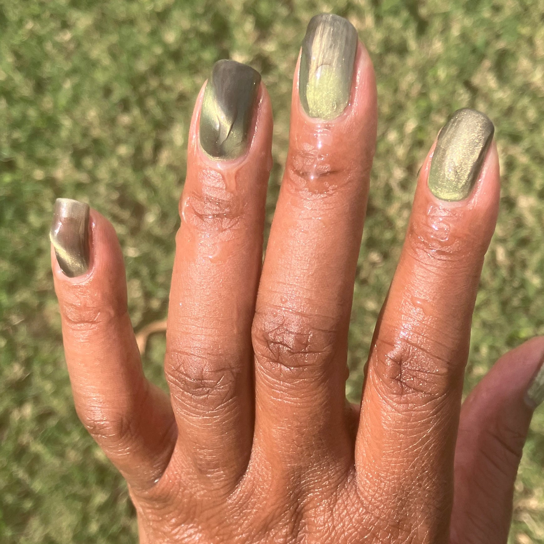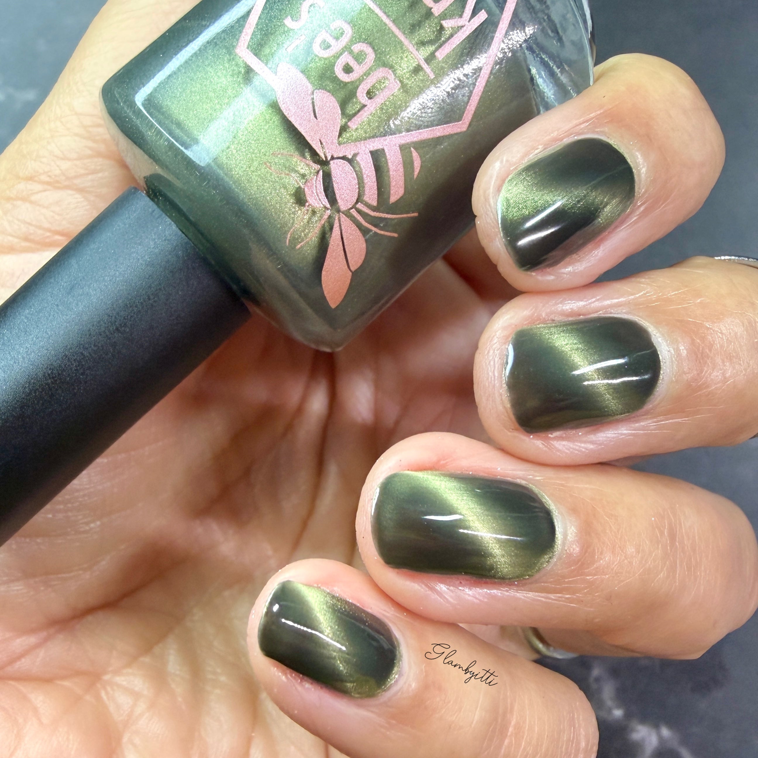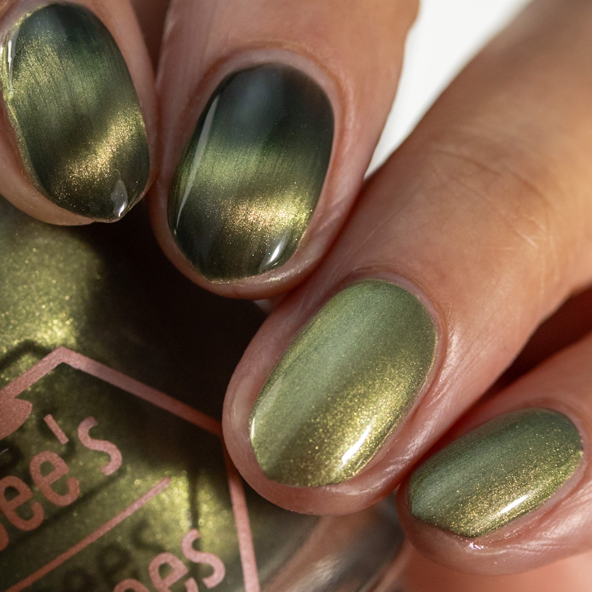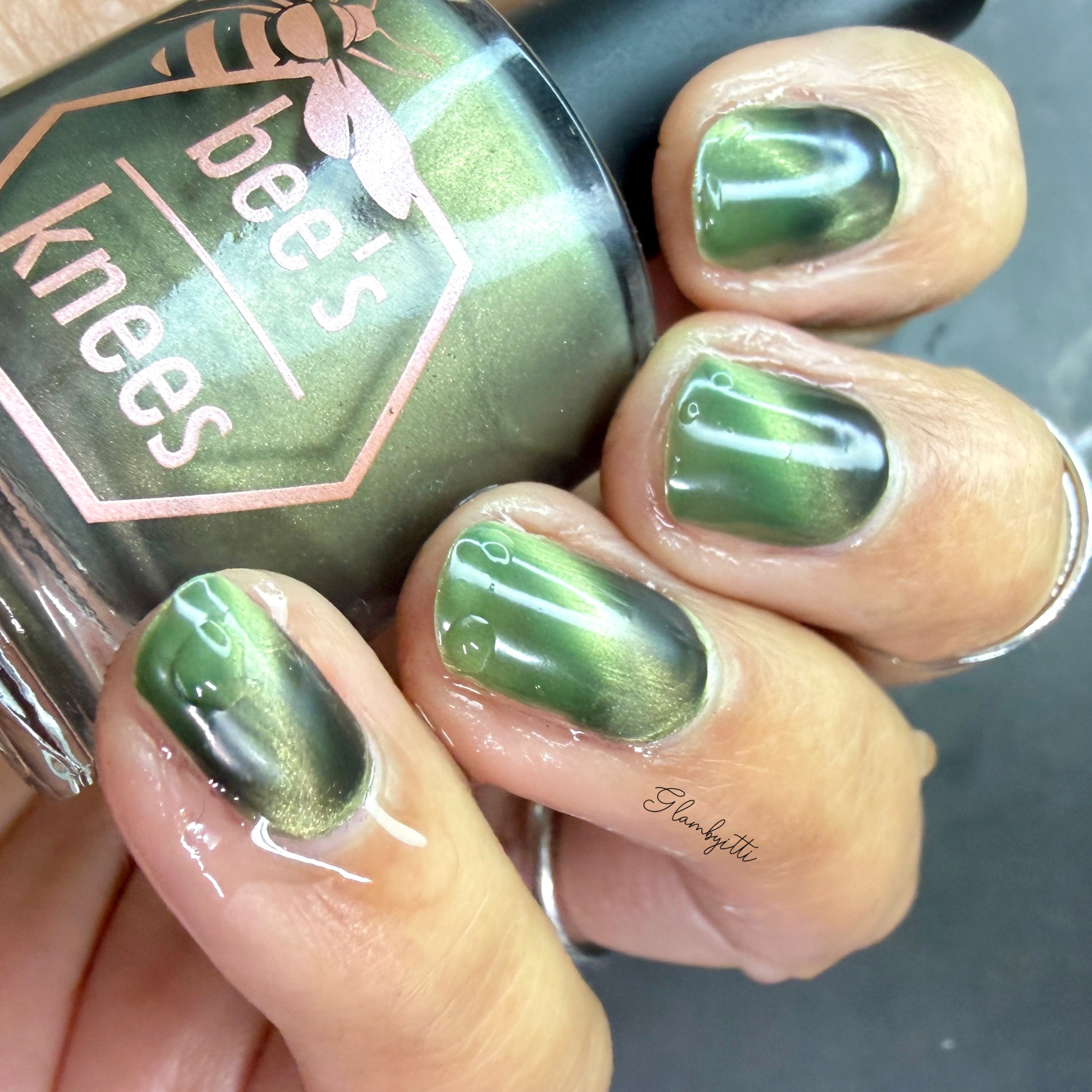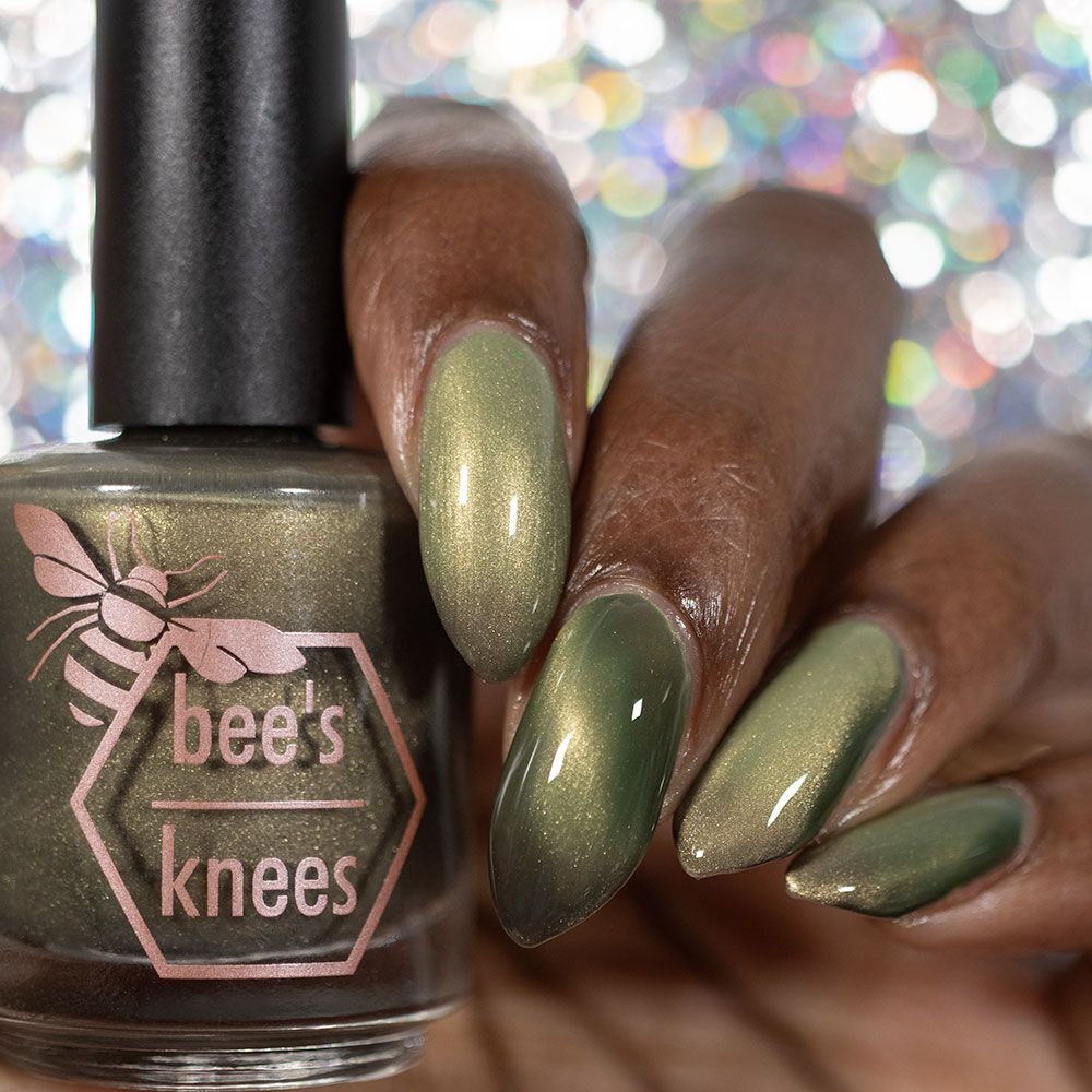 a green to black thermal with gold magnetic shimmer