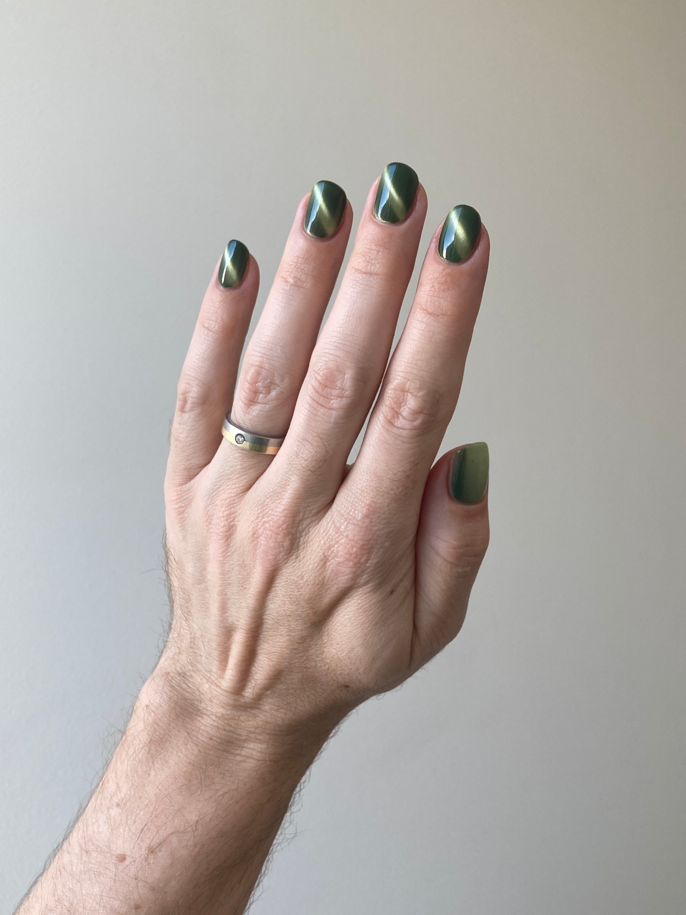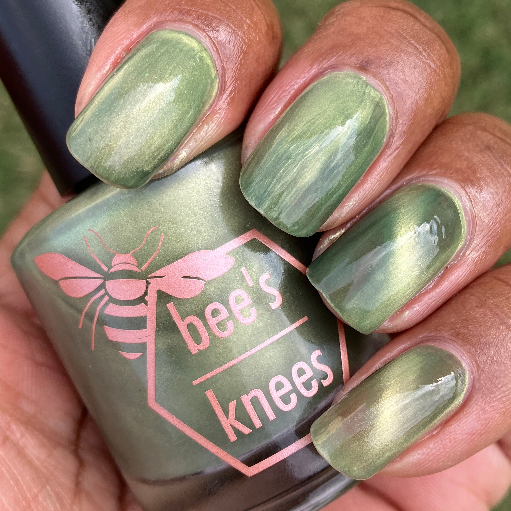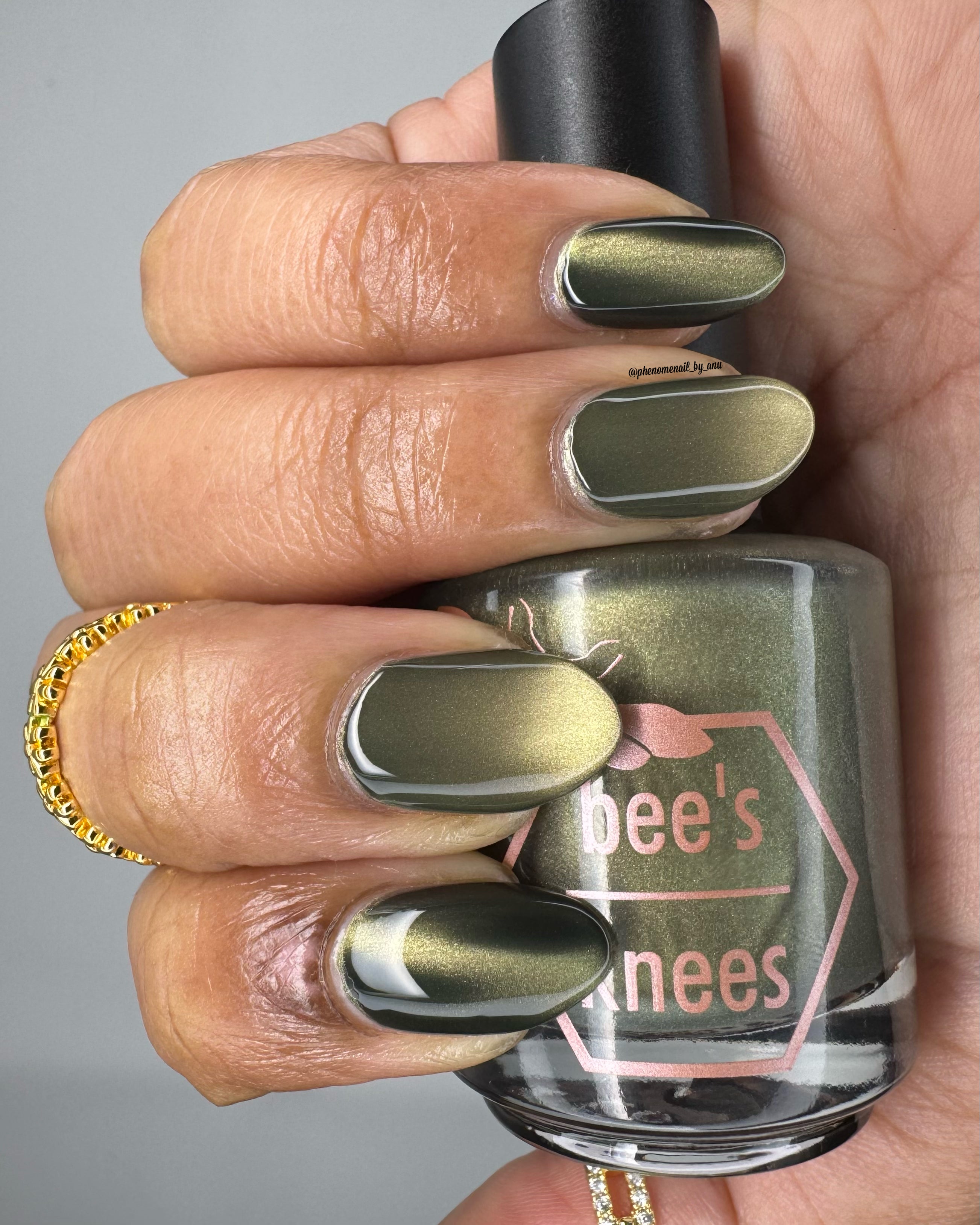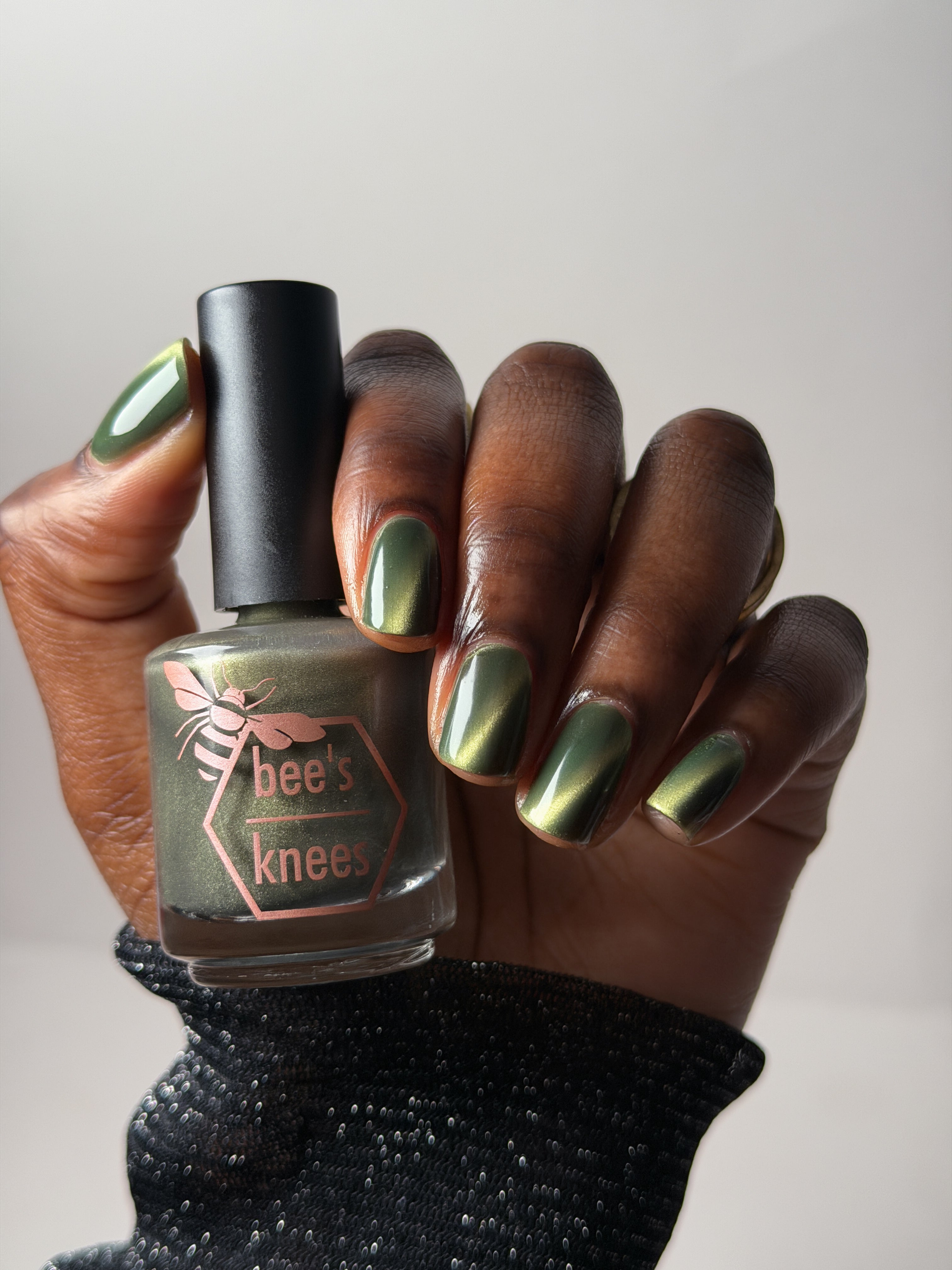 a green to black thermal with gold magnetic shimmer