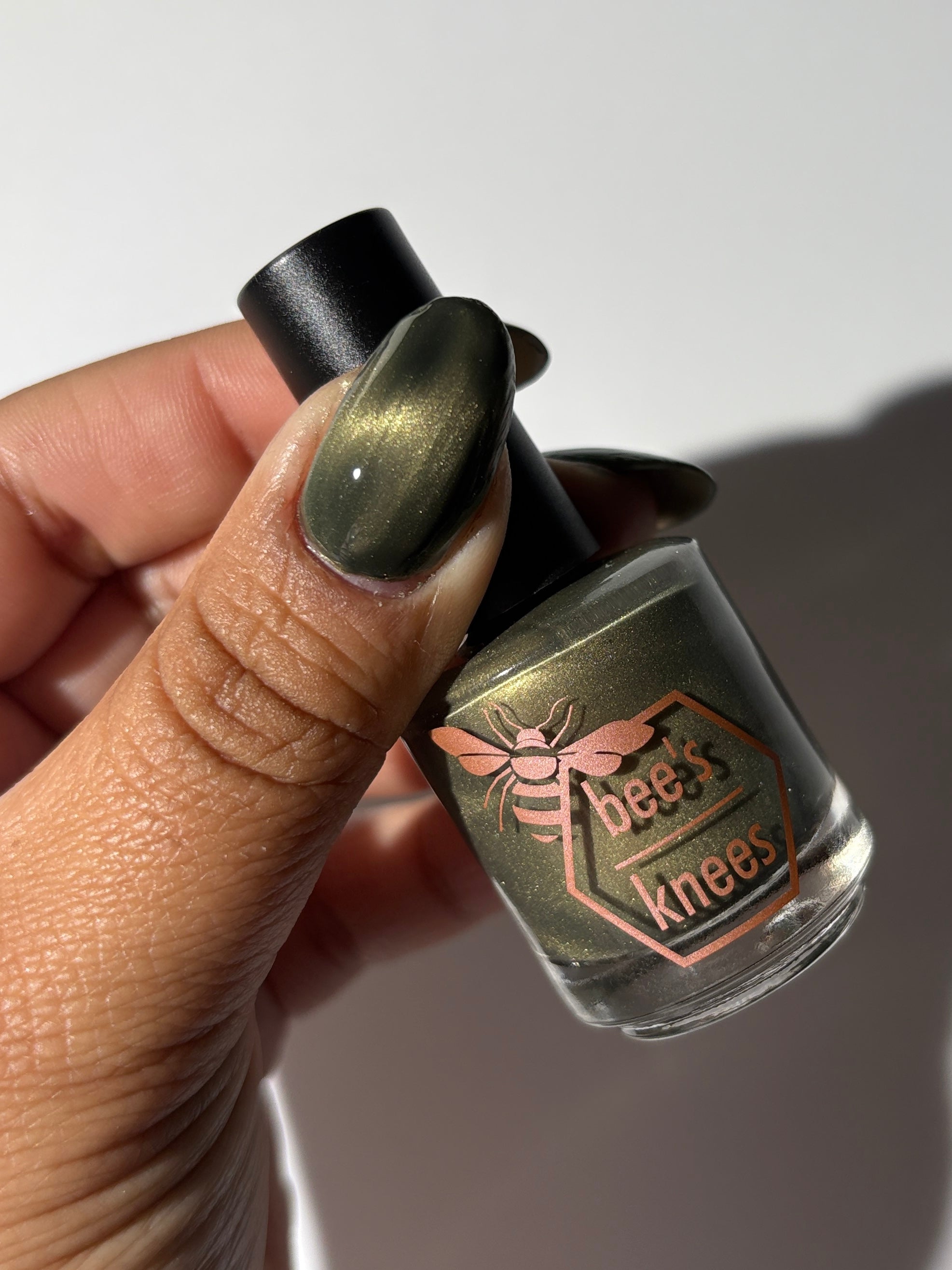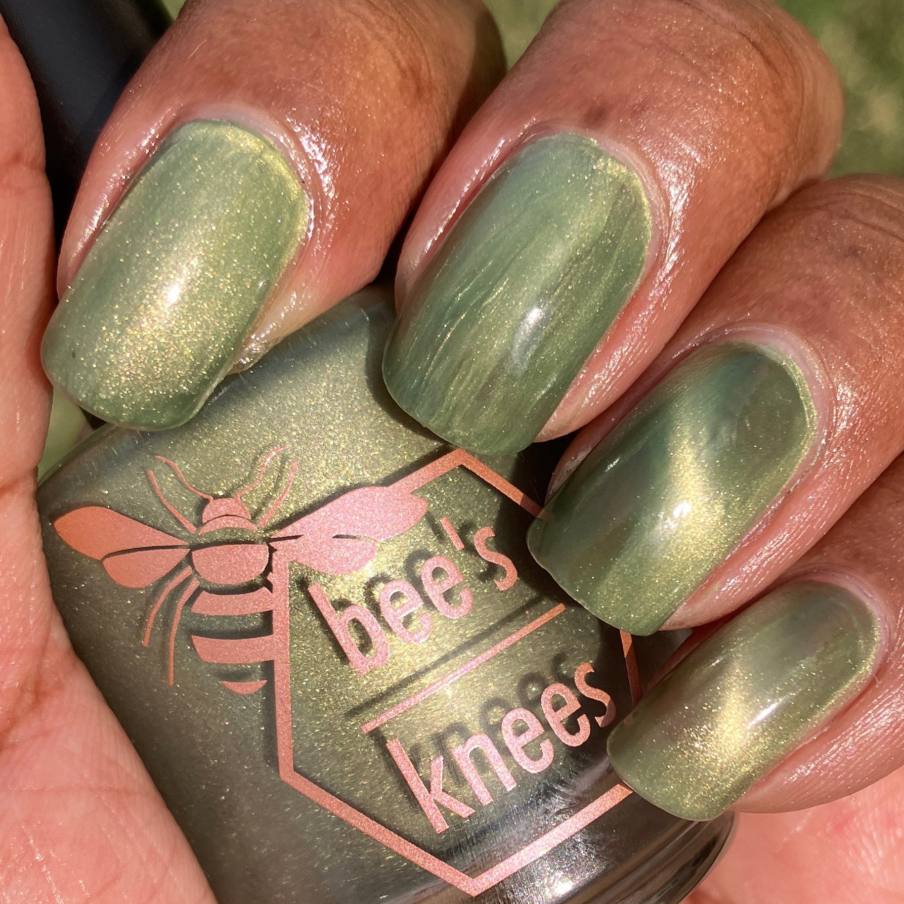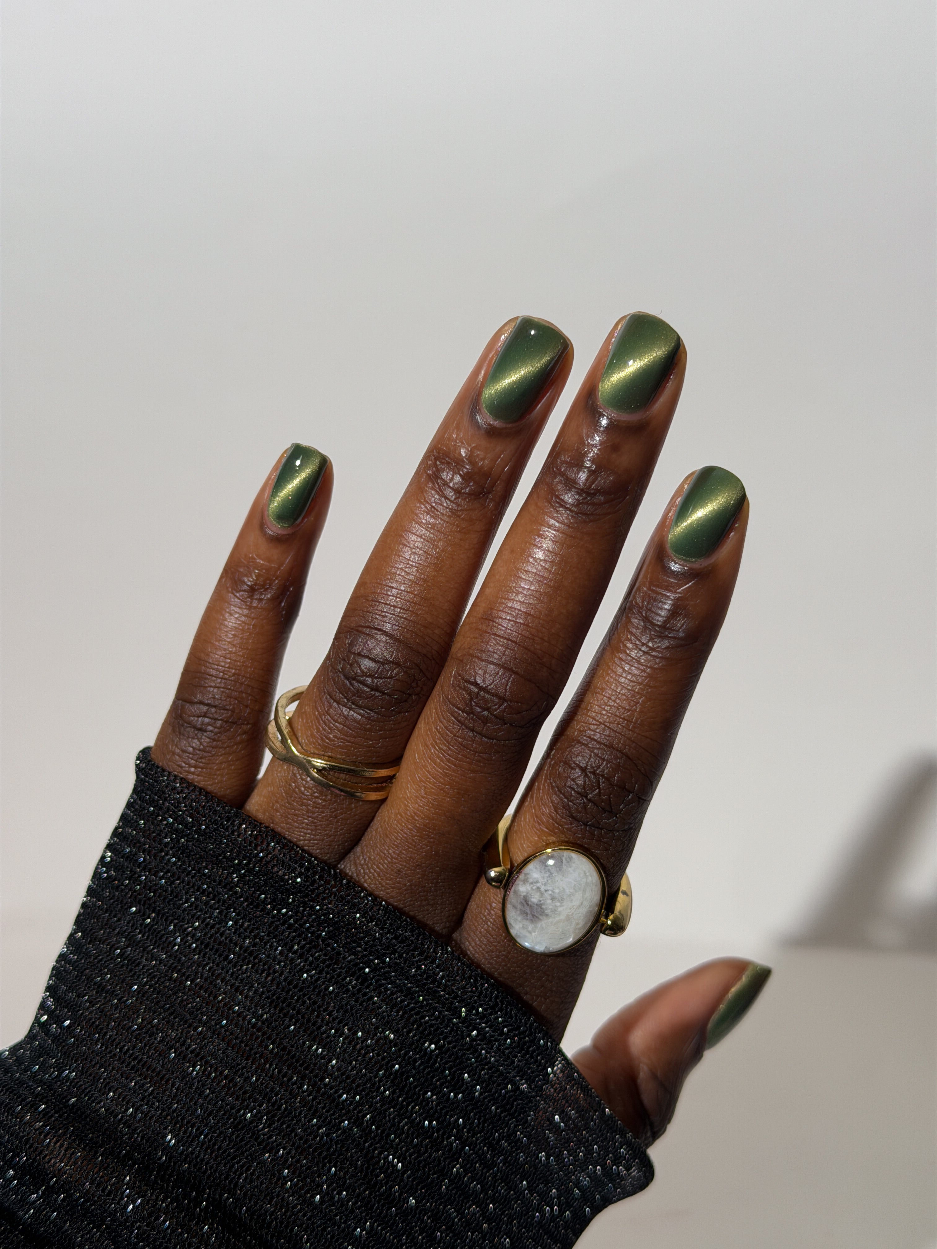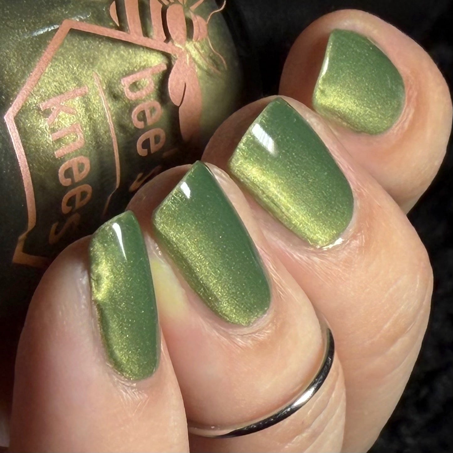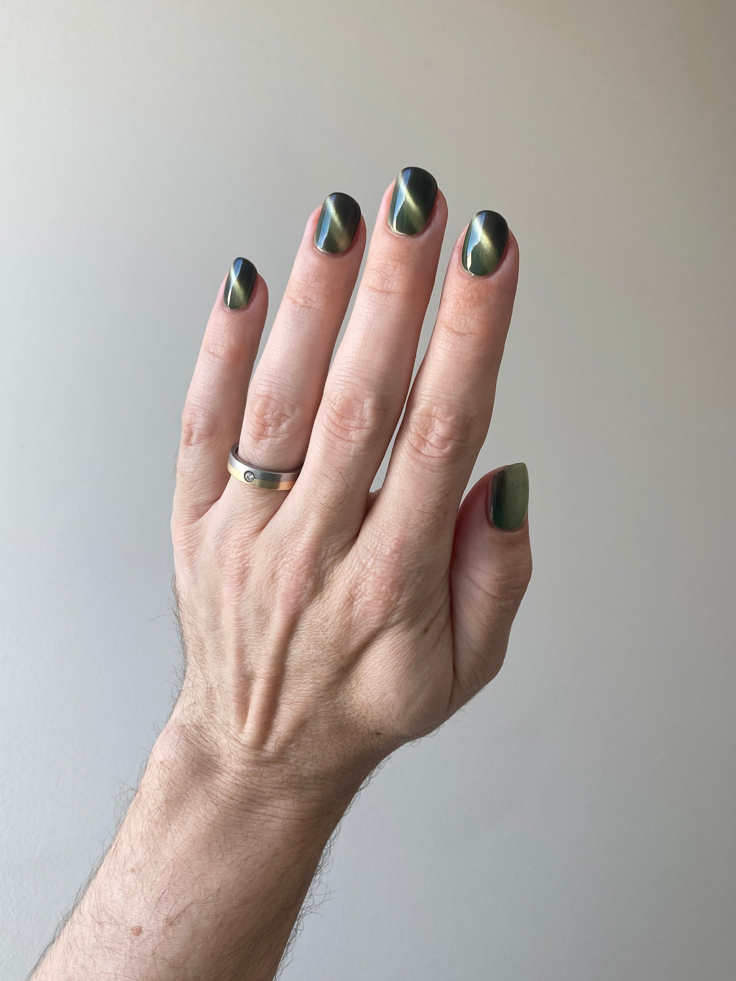 a green to black thermal with gold magnetic shimmer