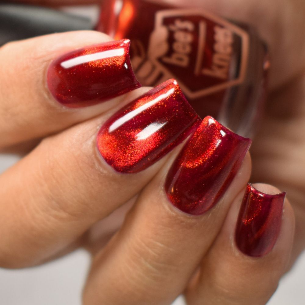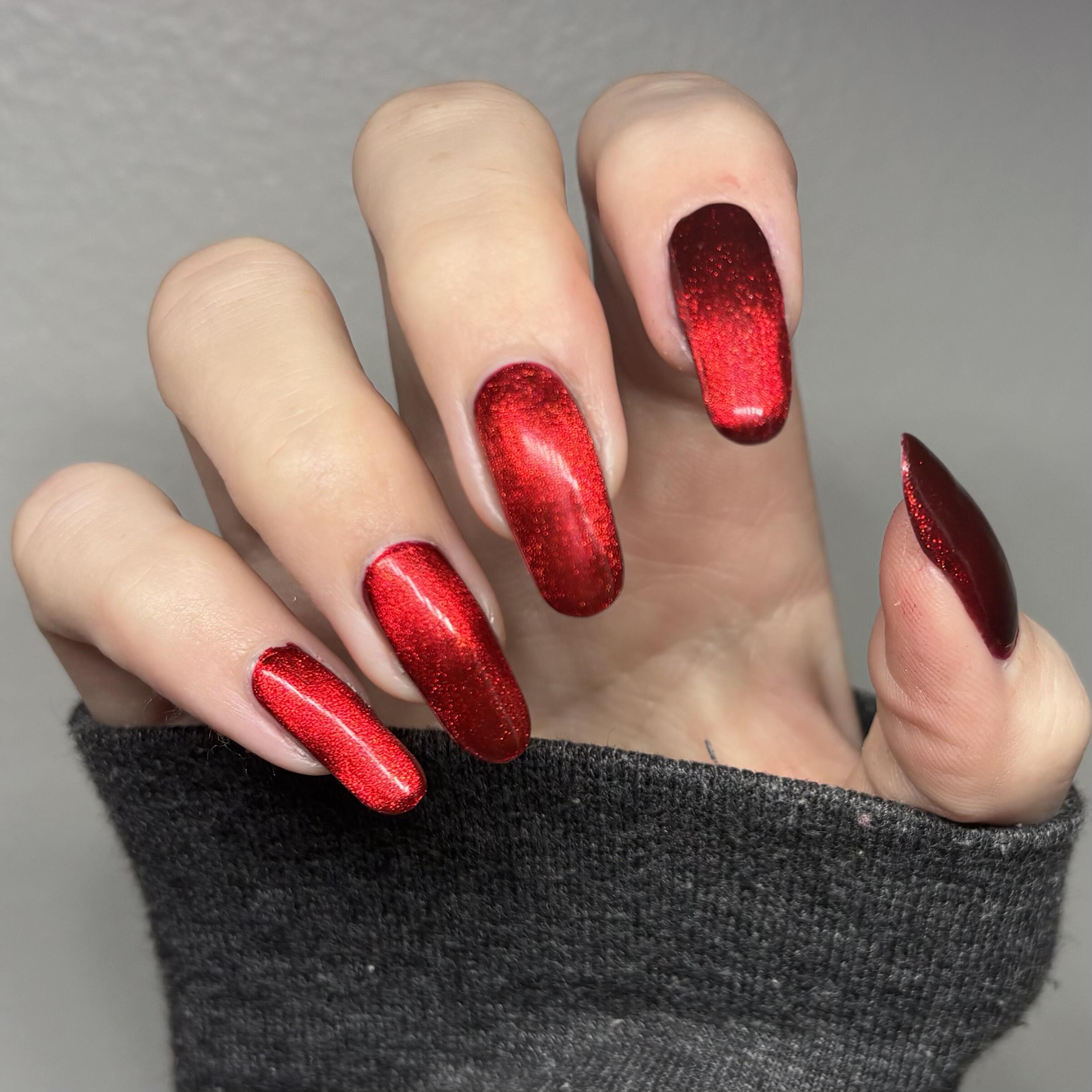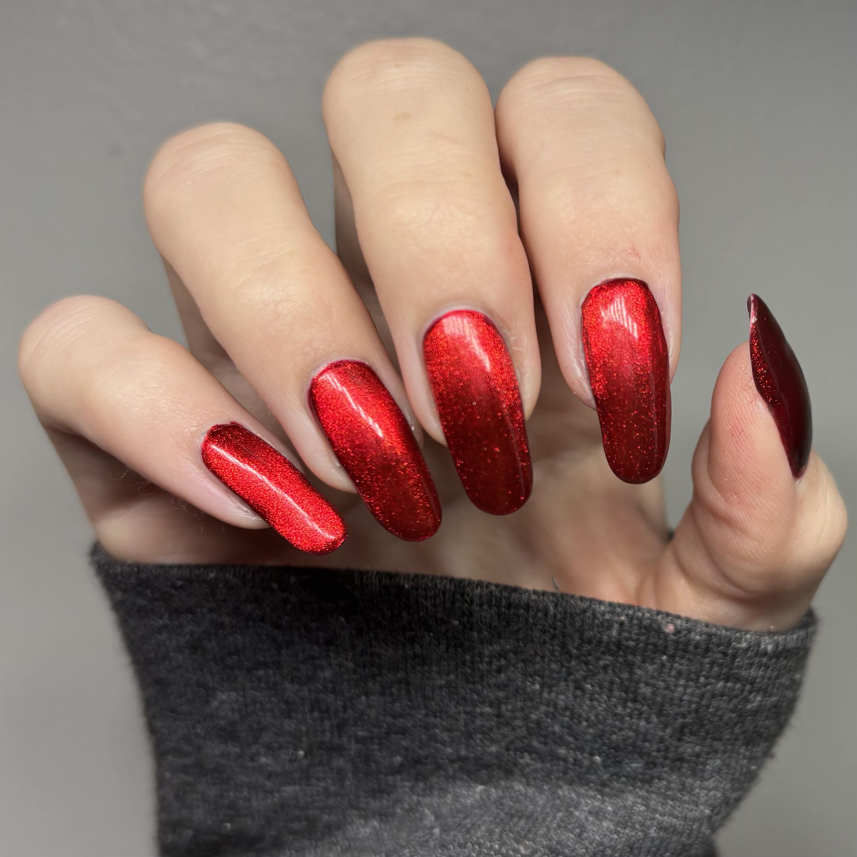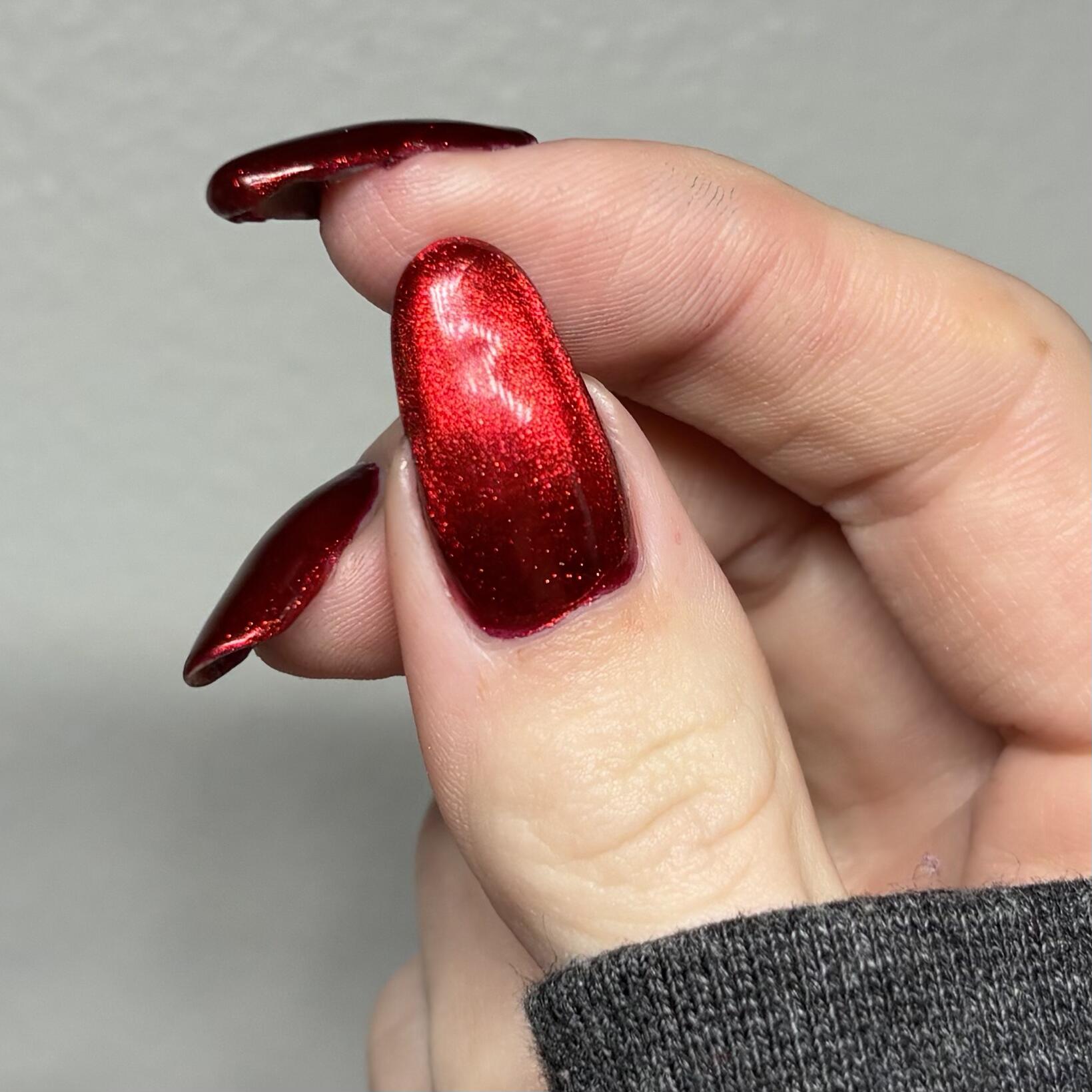a rich red polish with red magnetic shimmer