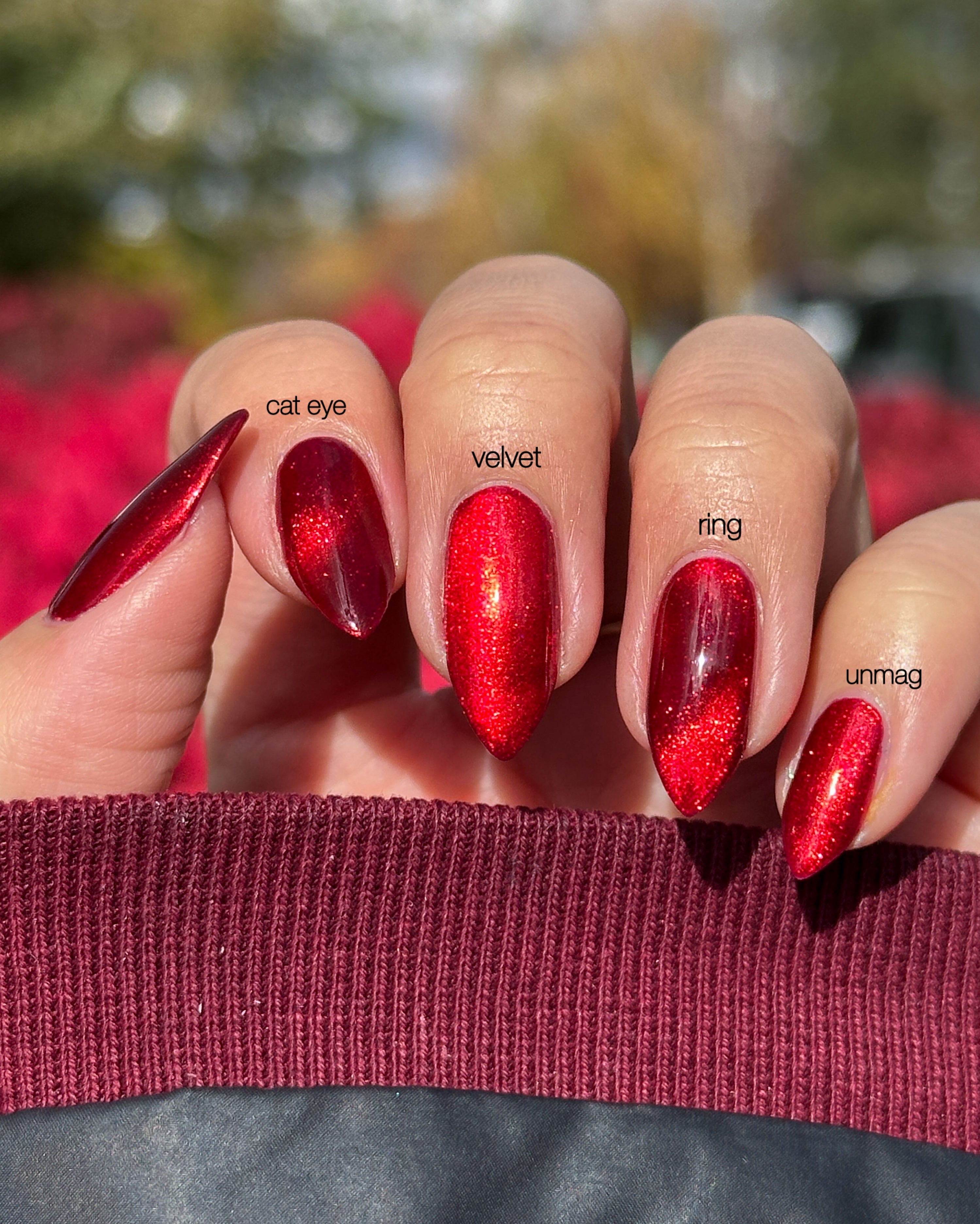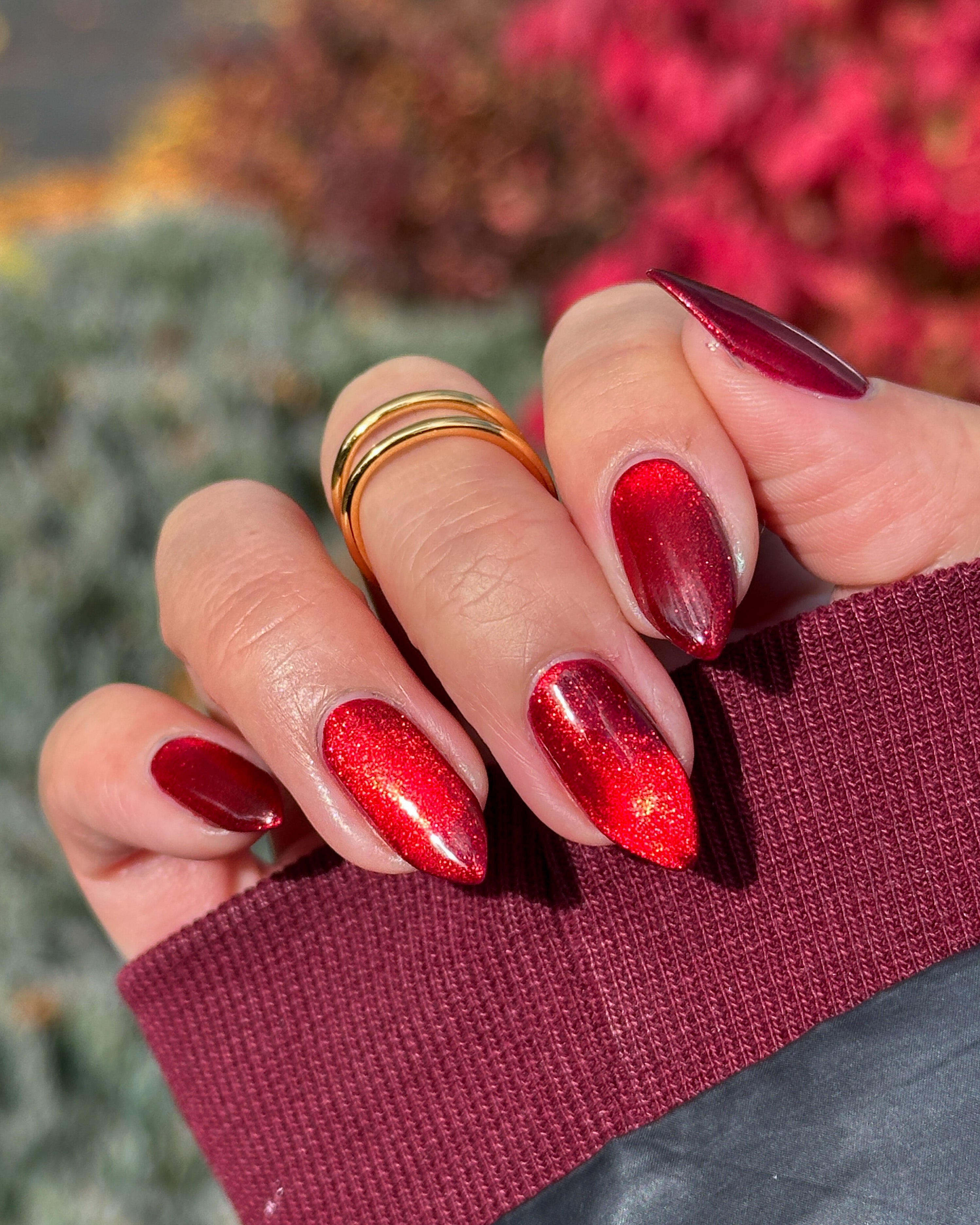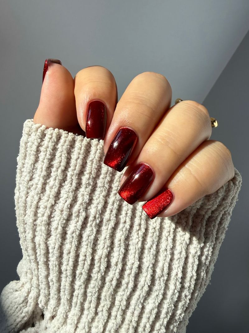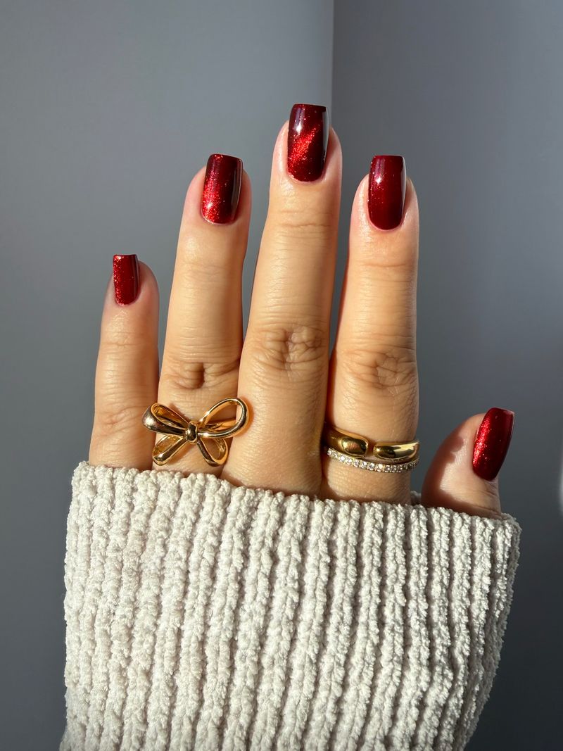 a rich red polish with red magnetic shimmer