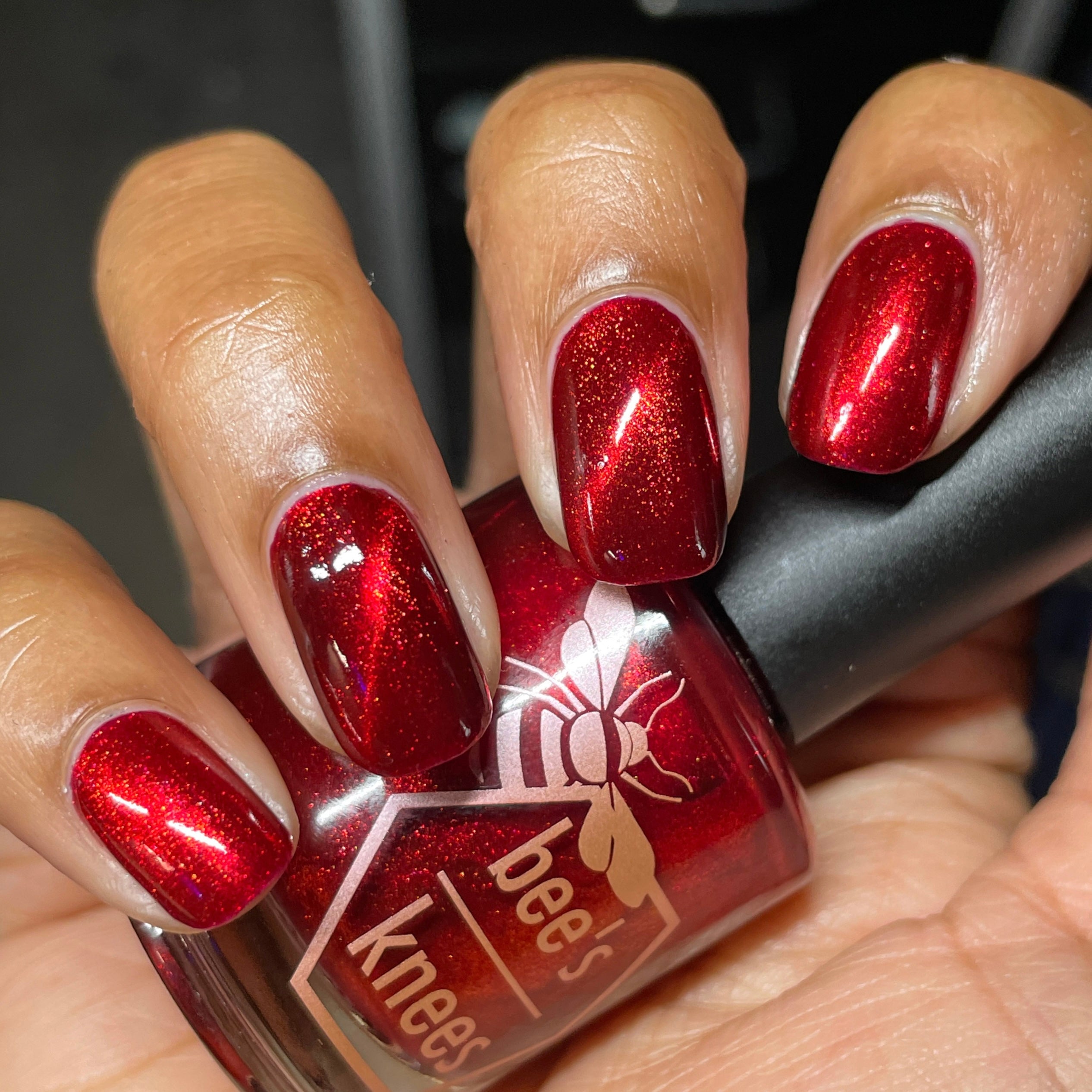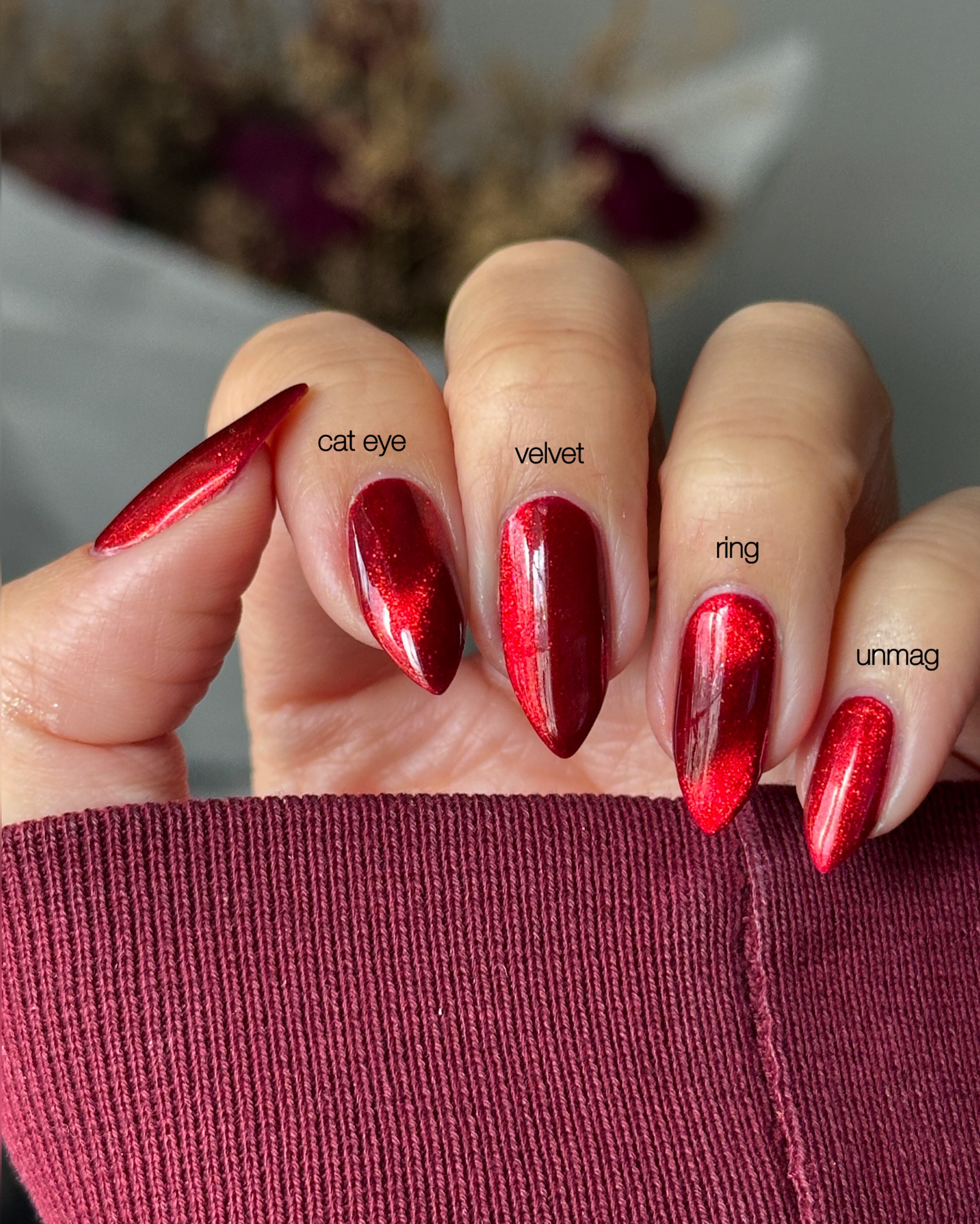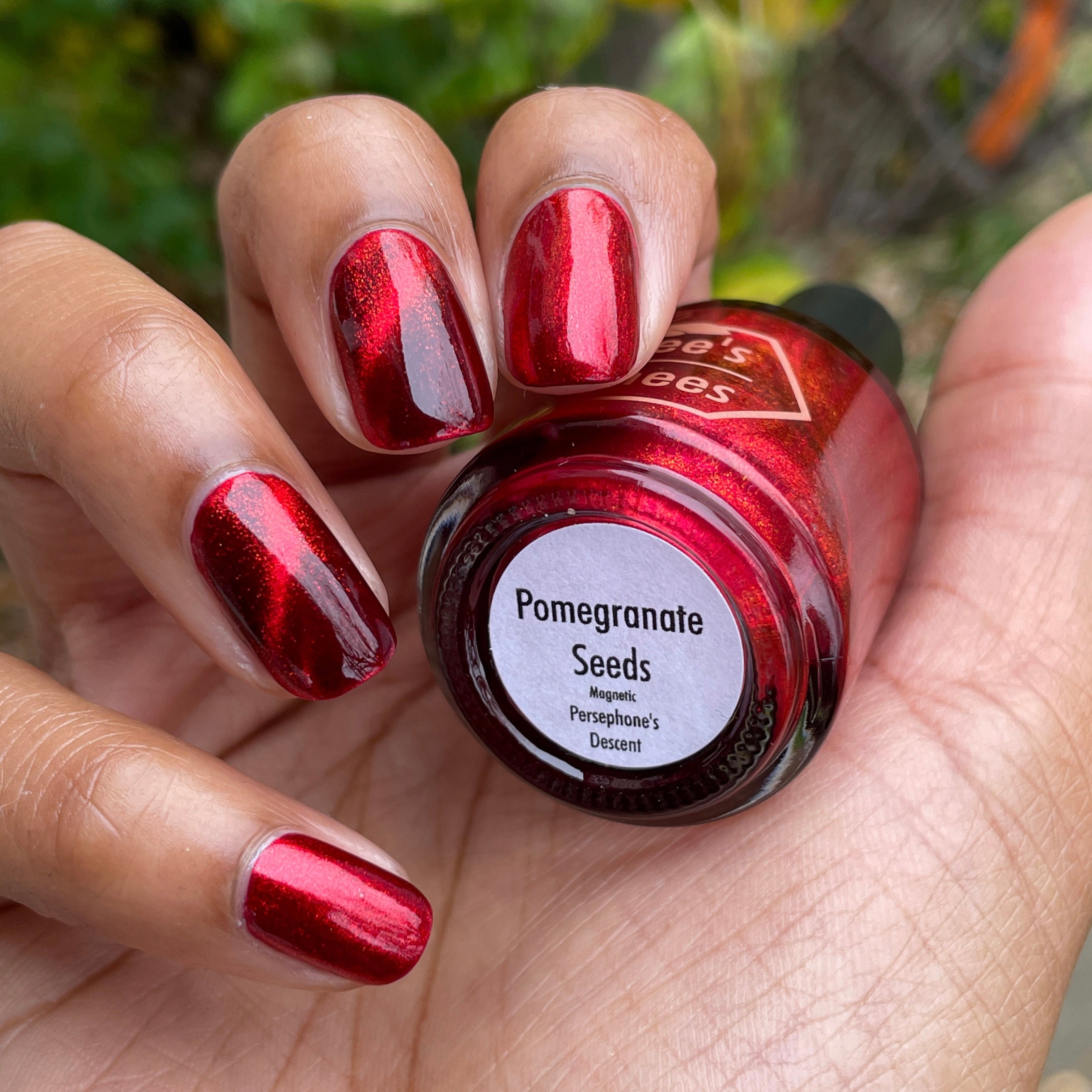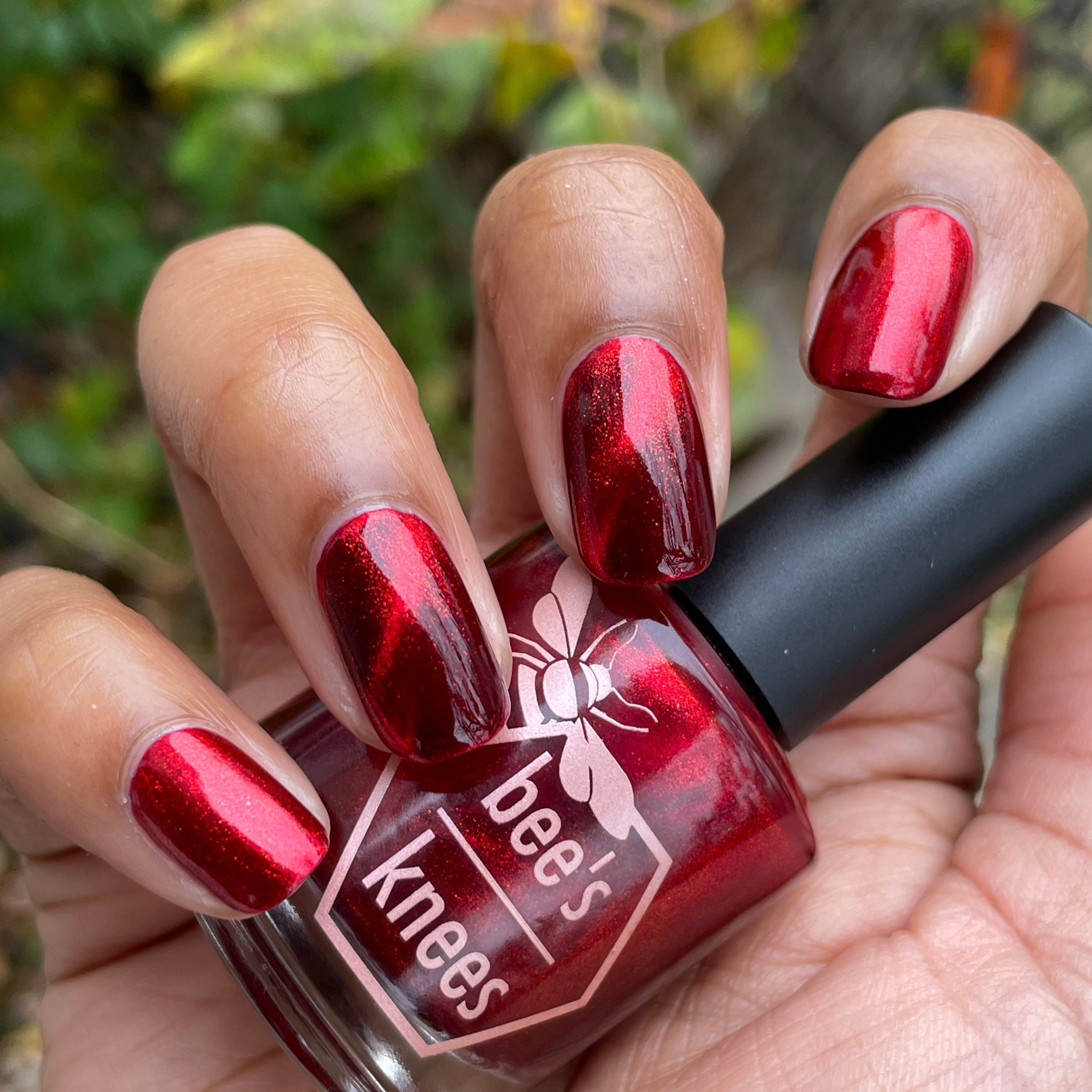 a rich red polish with red magnetic shimmer