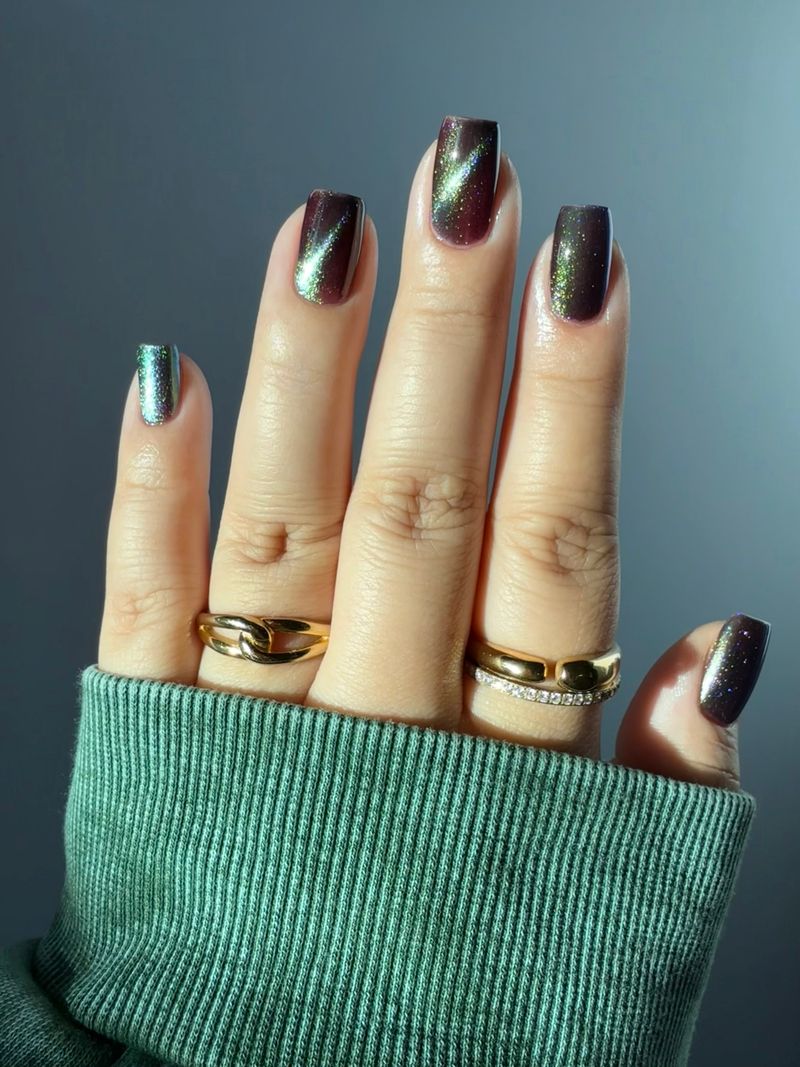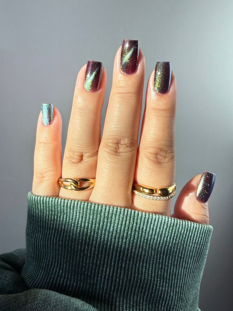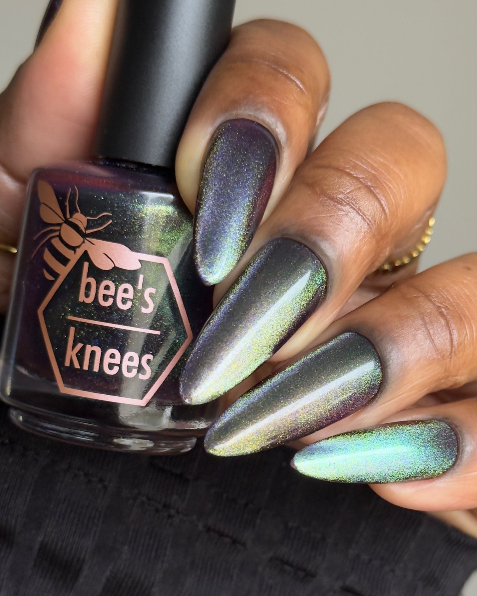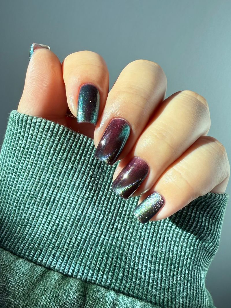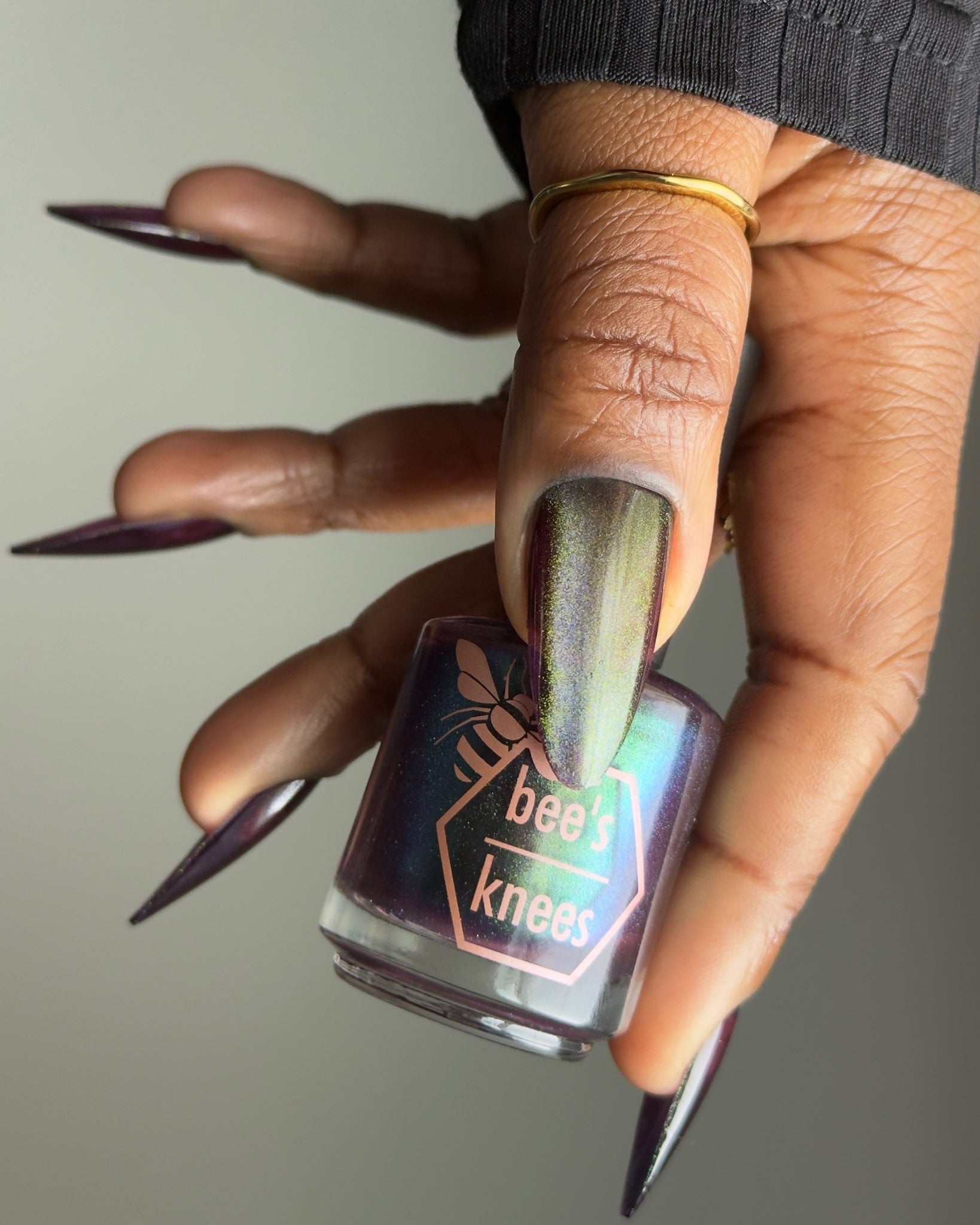 imperial purple with a mosaic magnetic that upon first glance looks like an ordinary green multichrome. When magnetized you will see both a bright green as well as a powder blue magnetic pigment