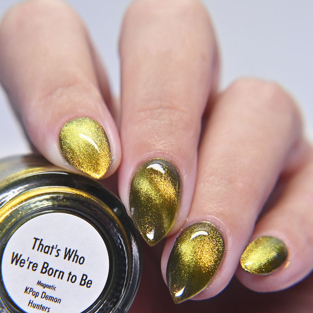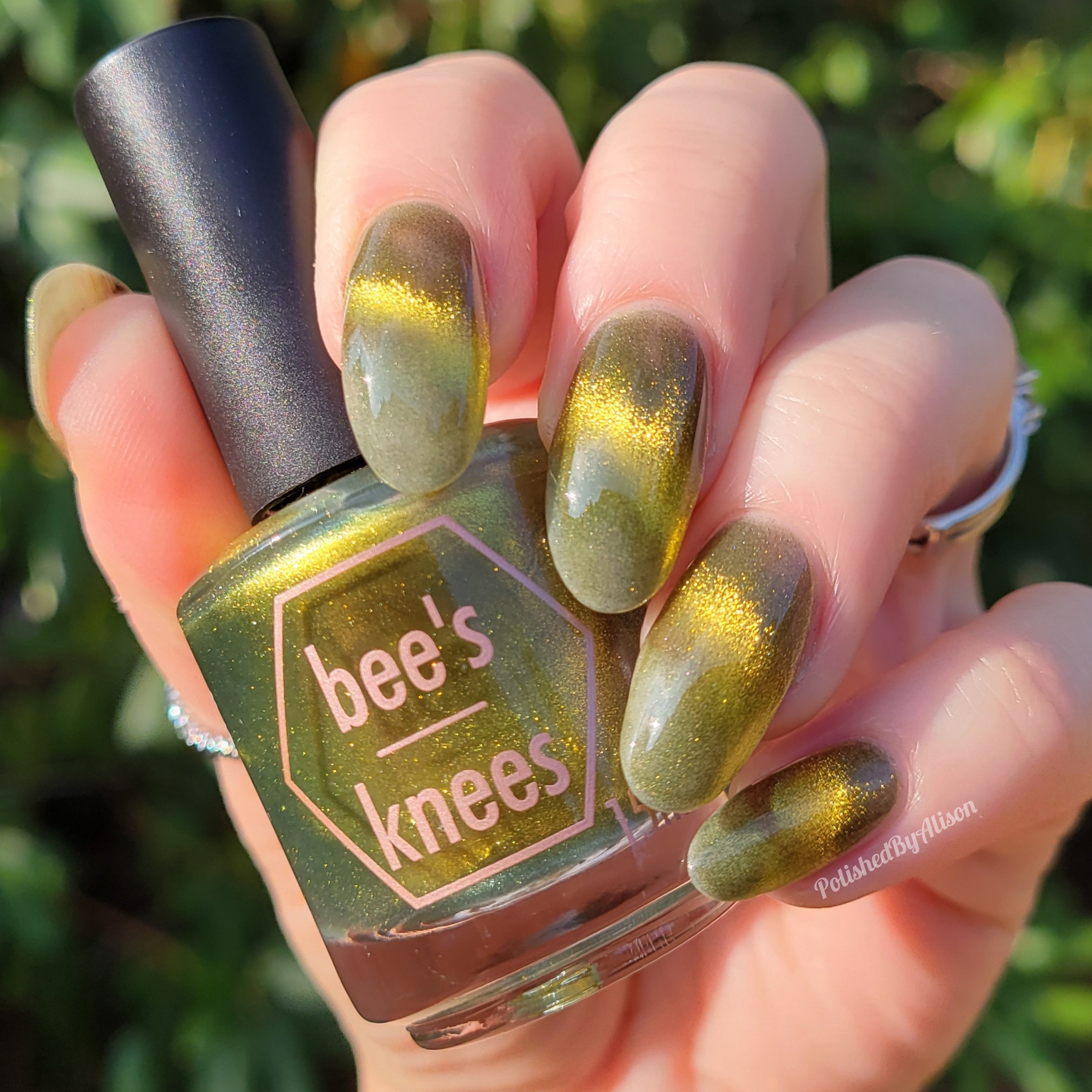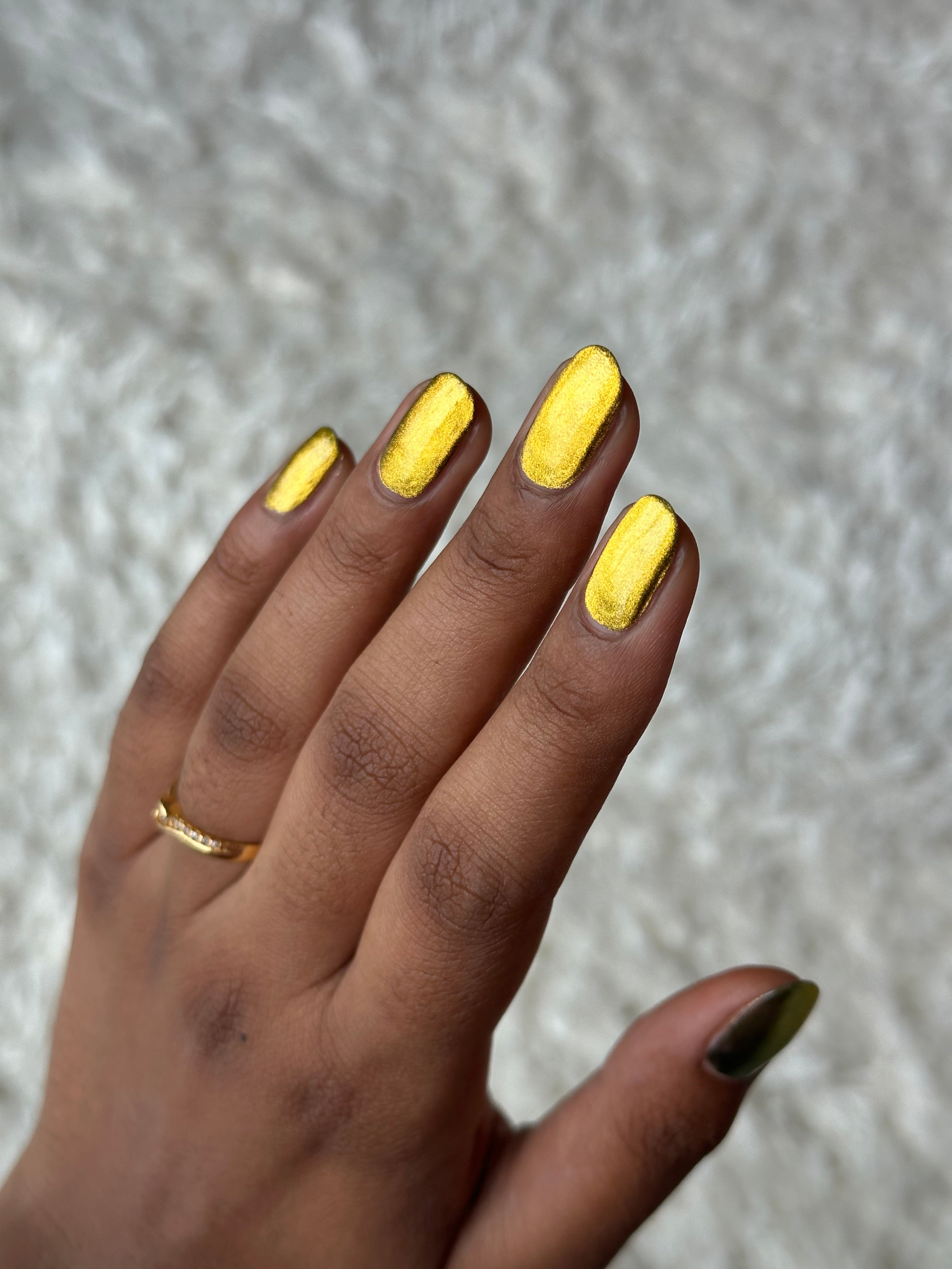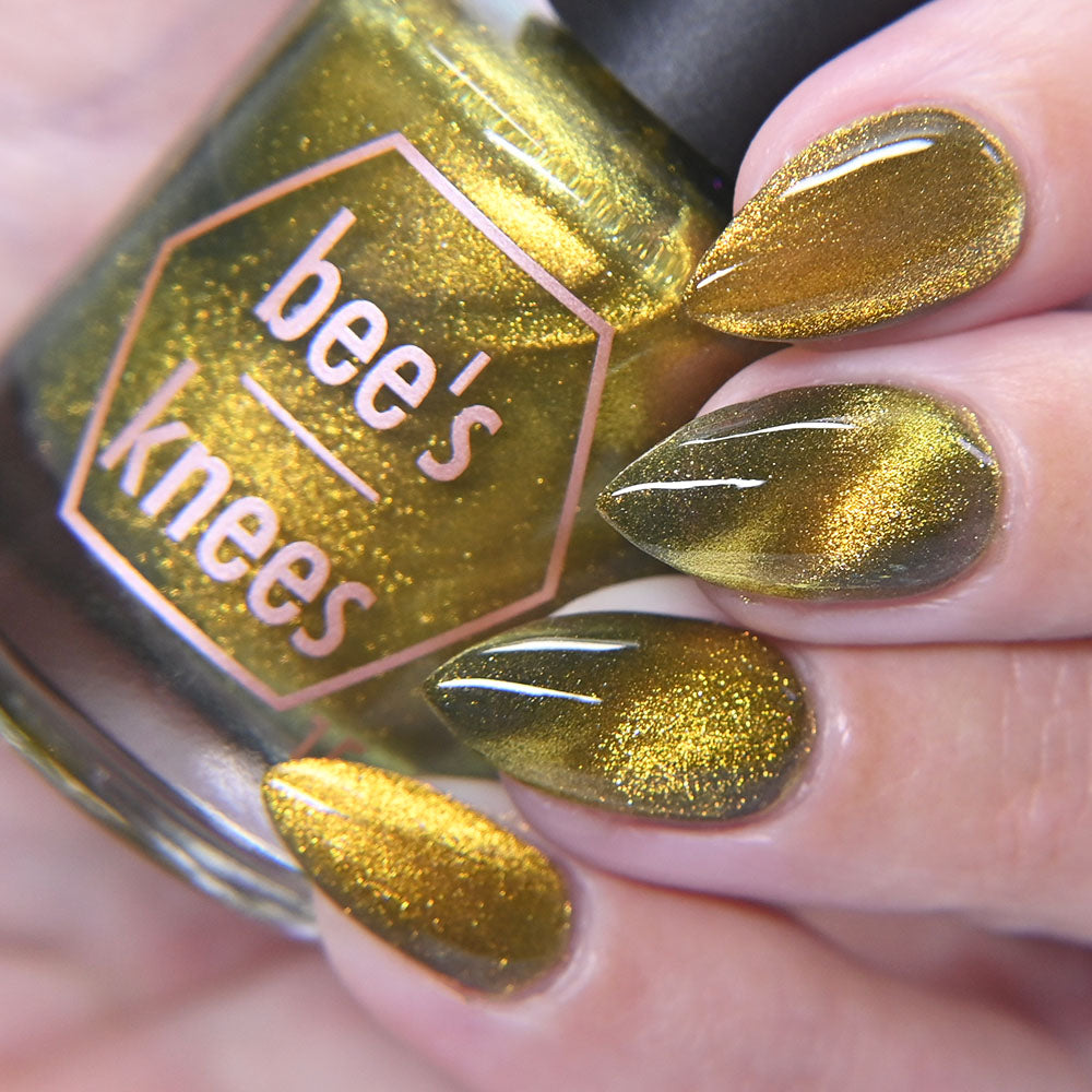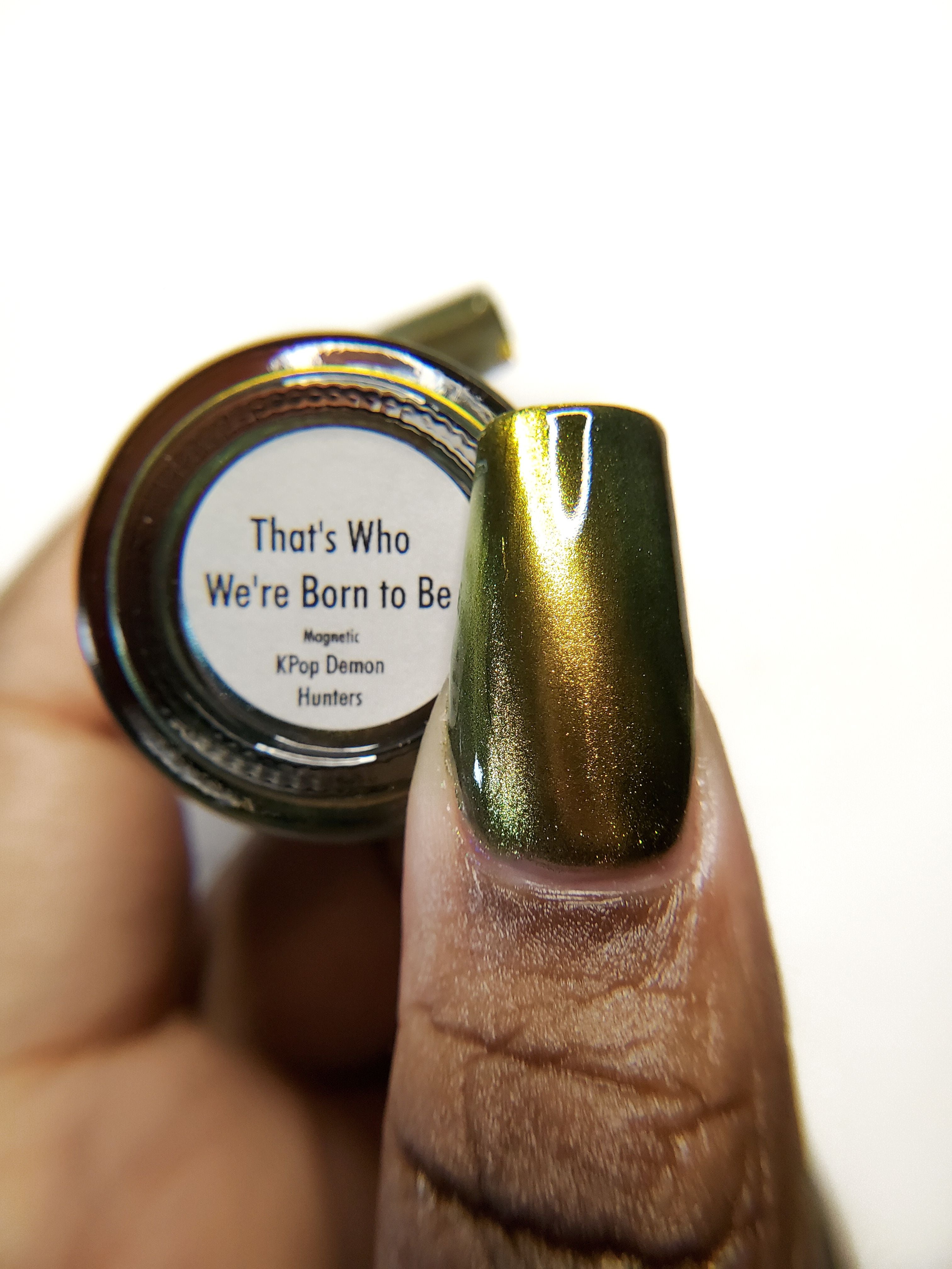 we couldn't be Golden without a gold polish, so this is a grungy green polish with gold magnetic shimmer