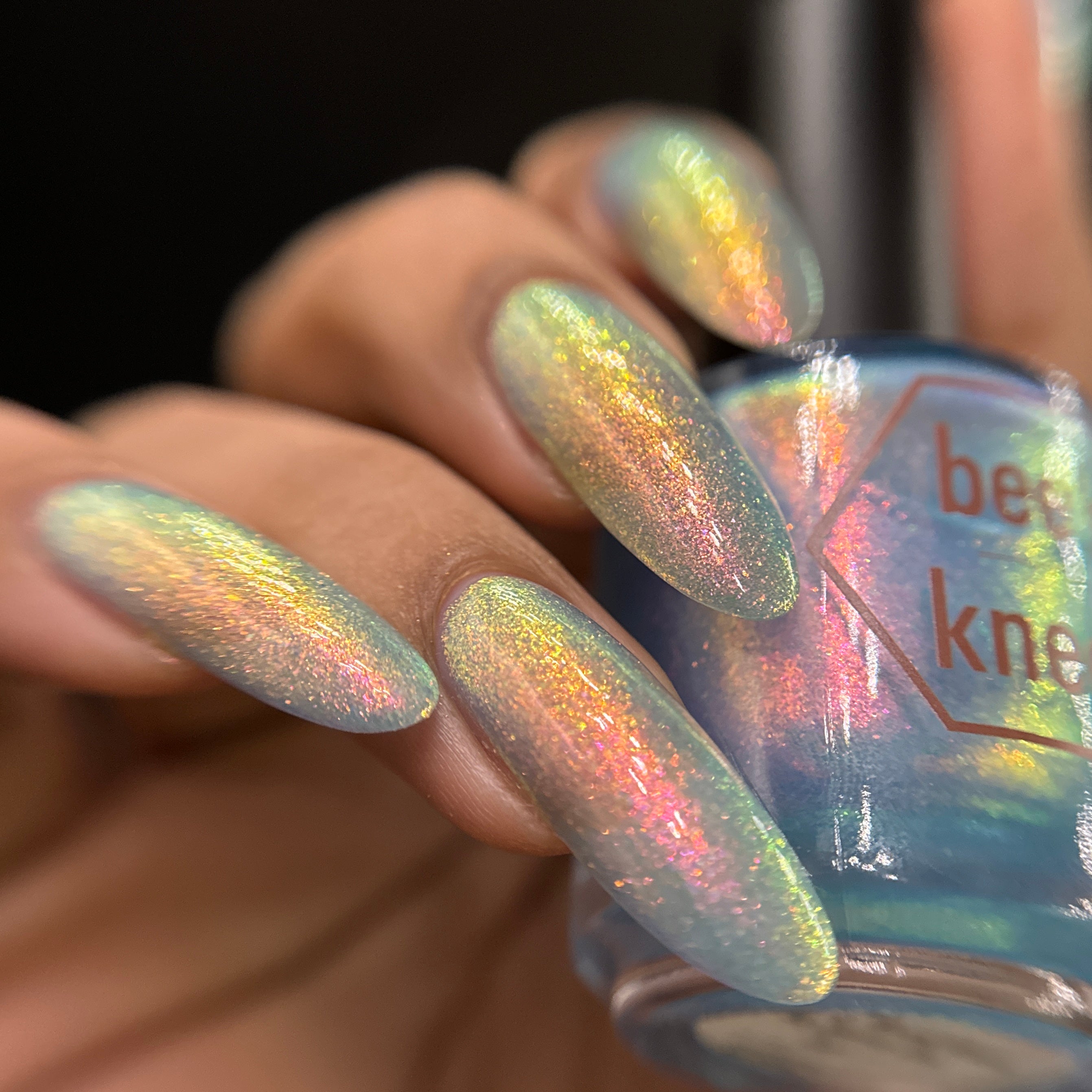 Butyl Acetate, Ethyl Acetate, Nitrocellulose, Adipic Acid/Neopentyl Glycol/Trimellitic Anhydride Copolymer, Acetyl Tributyl Citrate, Isopropyl Alcohol, Acrylates Copolymer, Stearalkonium Bentonite, N-Butyl Alcohol, Styrene/Acrylates Copolymer, Benzophenone-1, Silica, Alumina, Trimethylpentanediyl Dibenzoate. May Contain: Mica, Iron Oxides, Titanium Dioxide, Tin Oxide, Ferric Ferrocyanide, Yellow #5, D&C Yellow #10, D&C Red #30, D&C Red #6, D&C Red #7, D&C Red #34, Ultramarine Blue, D&C Black #2, Holographic glitter, Magnesium Fluoride-Coated Aluminum, Silica.