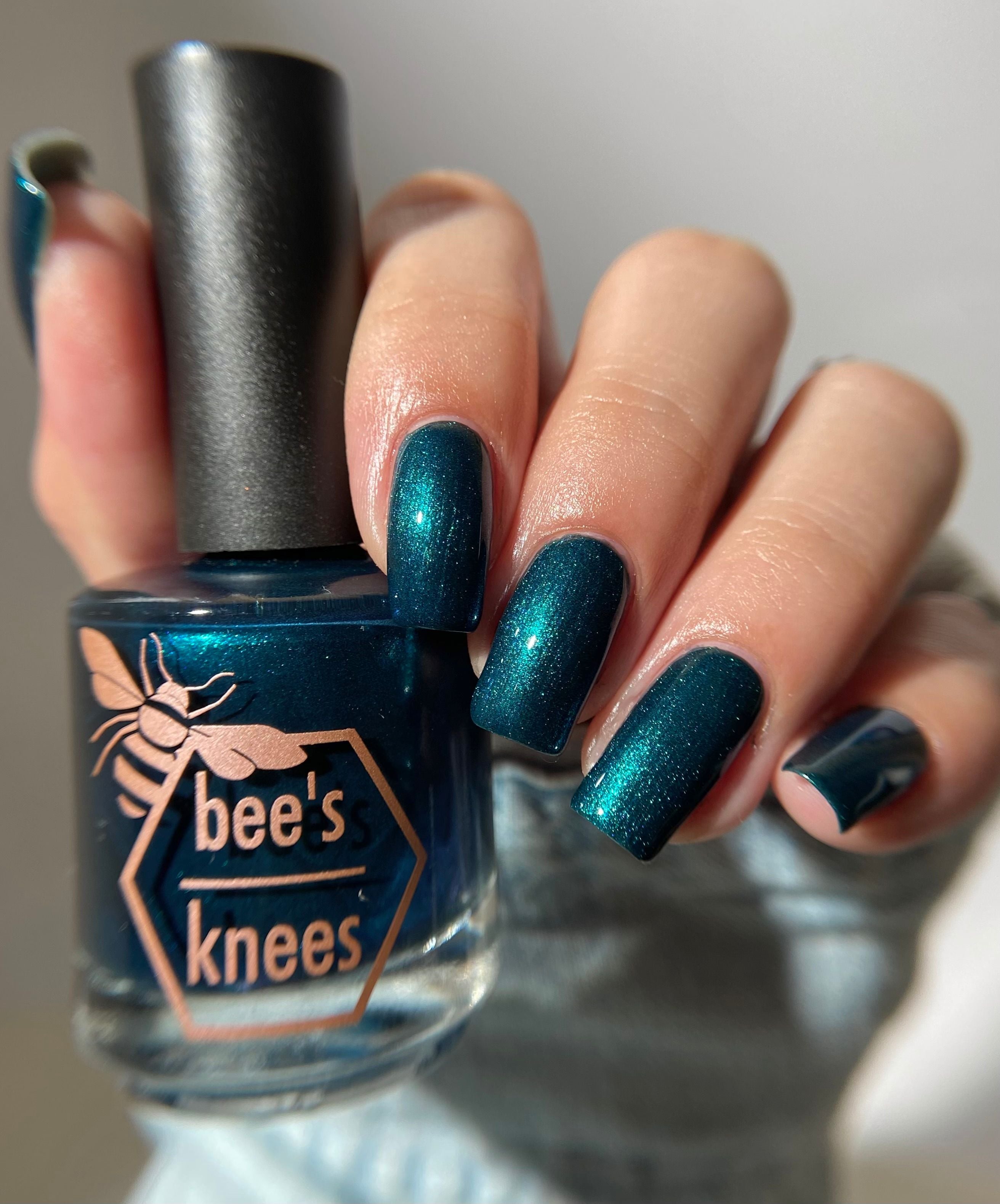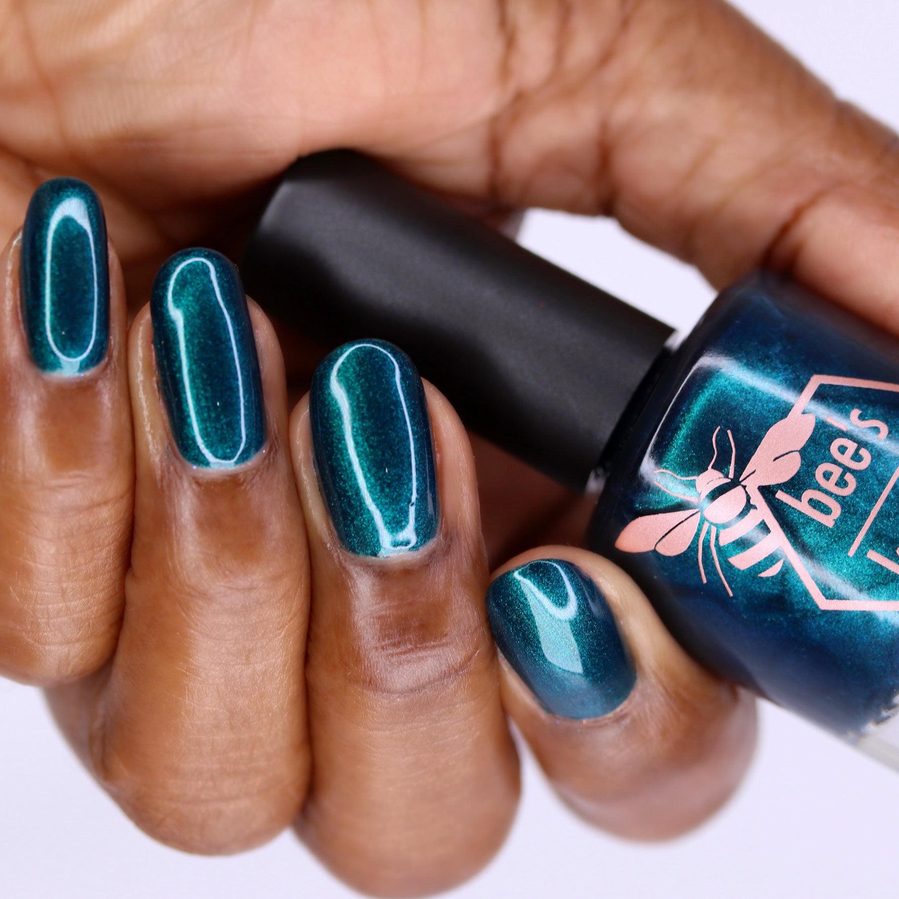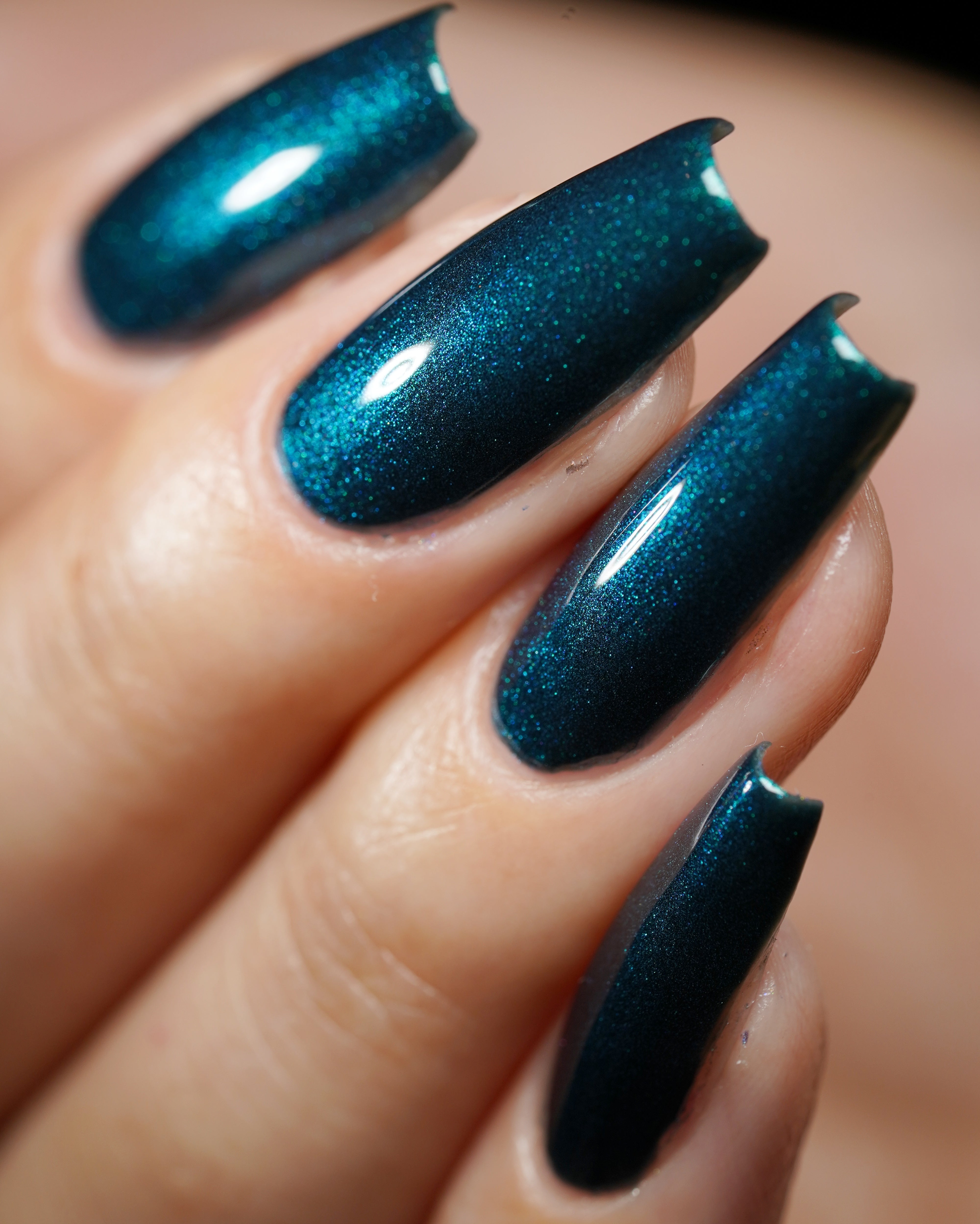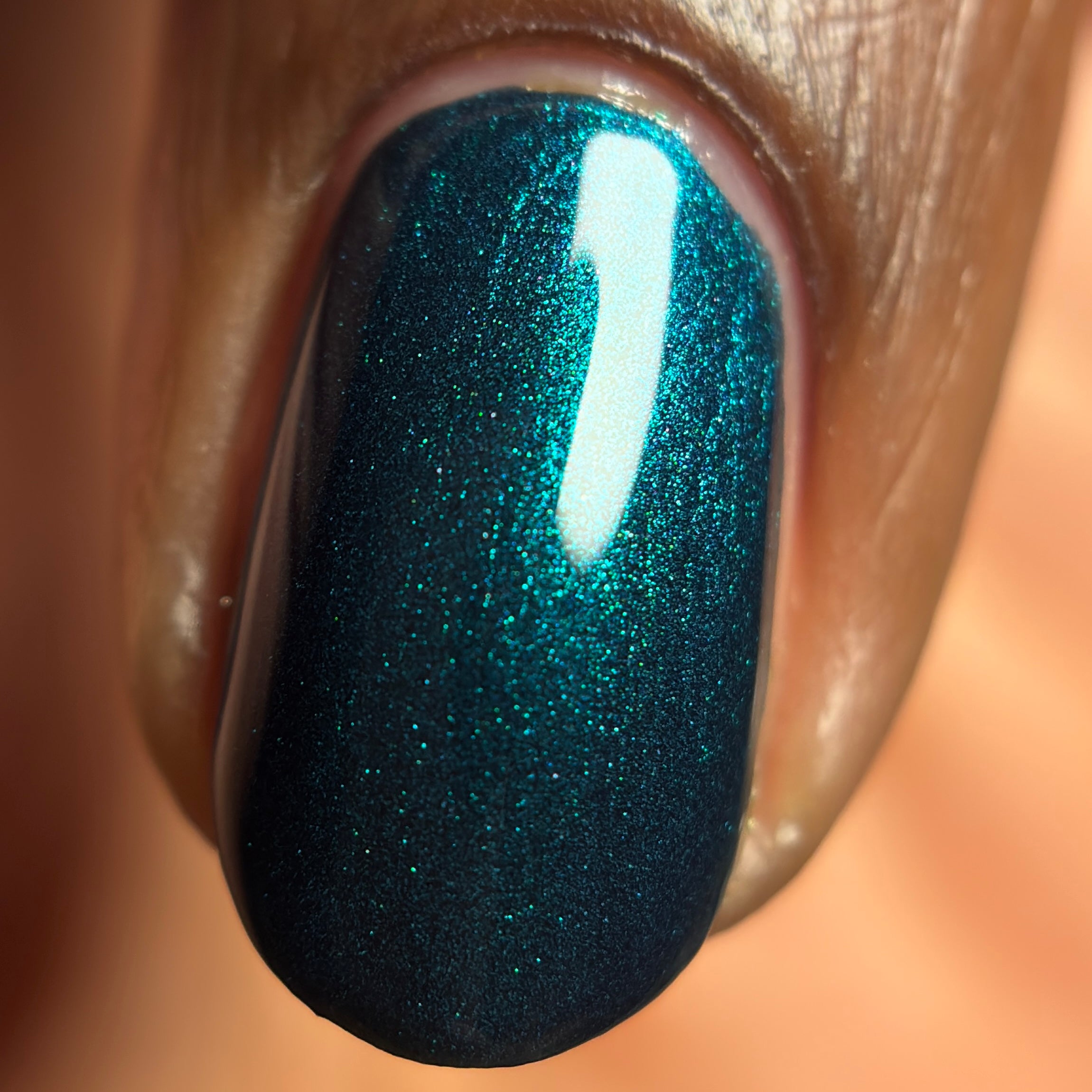 meant to mimic the beetle necklace, this is a deep navy with glowy green to blue pearlescent shimmer