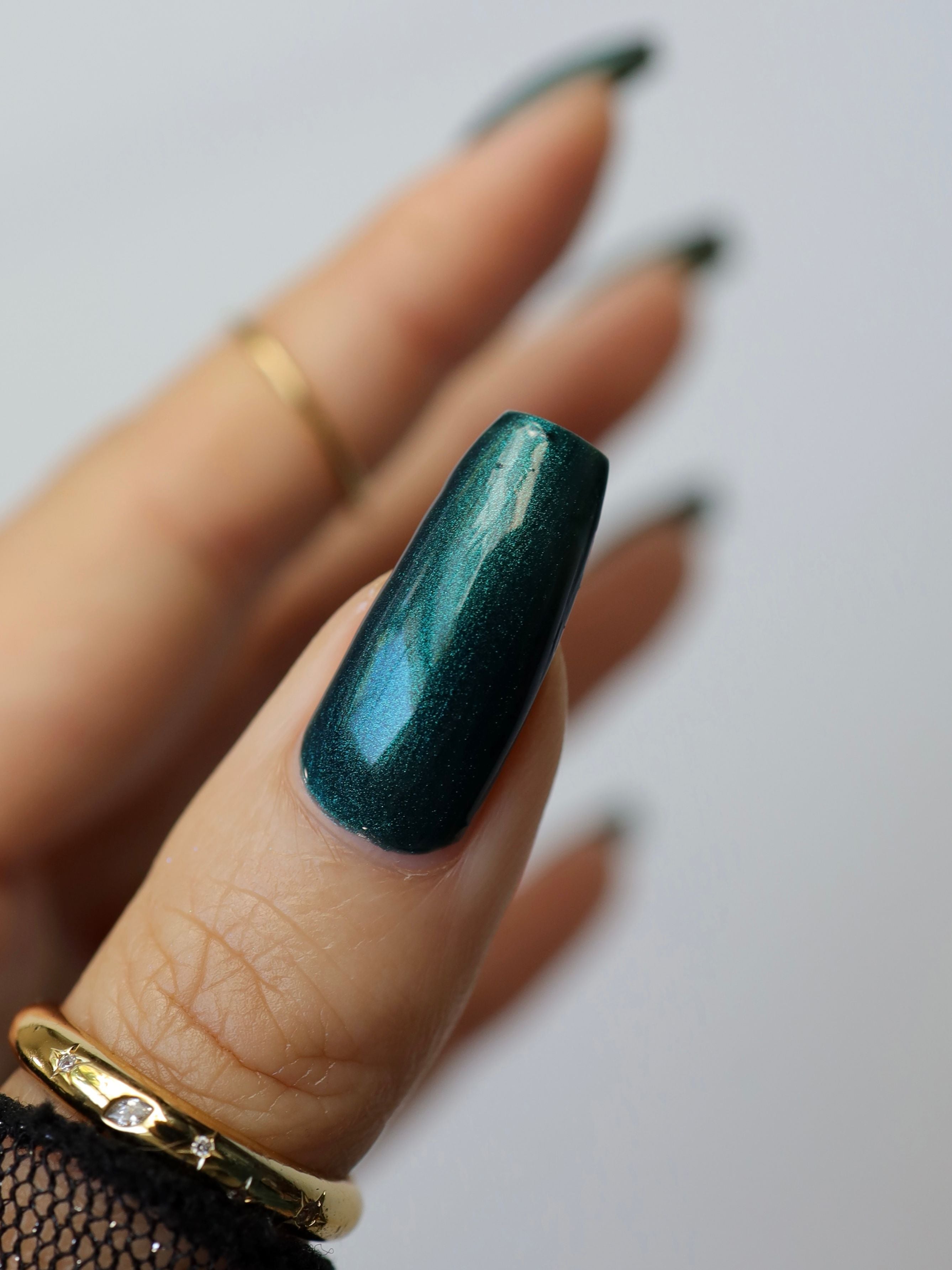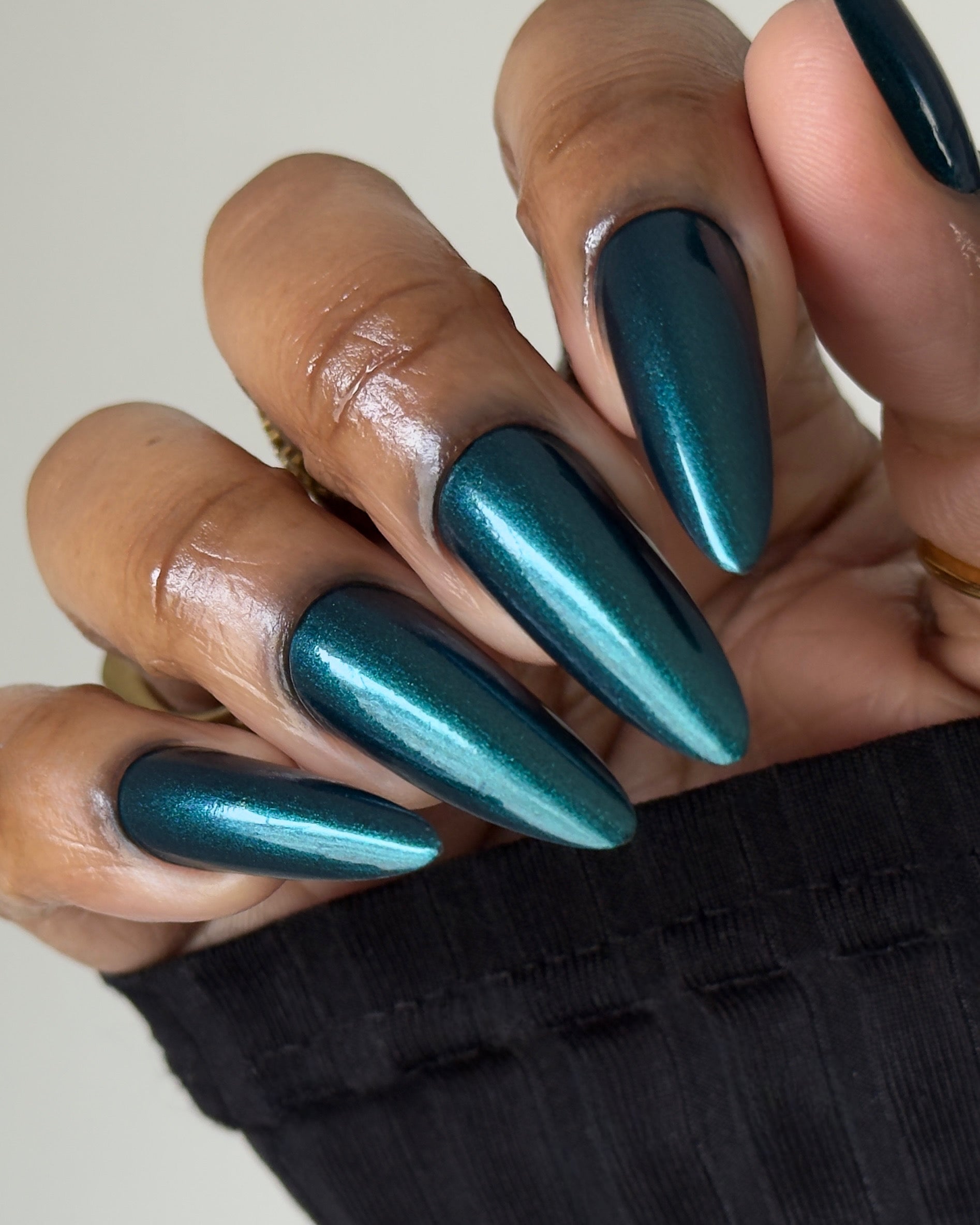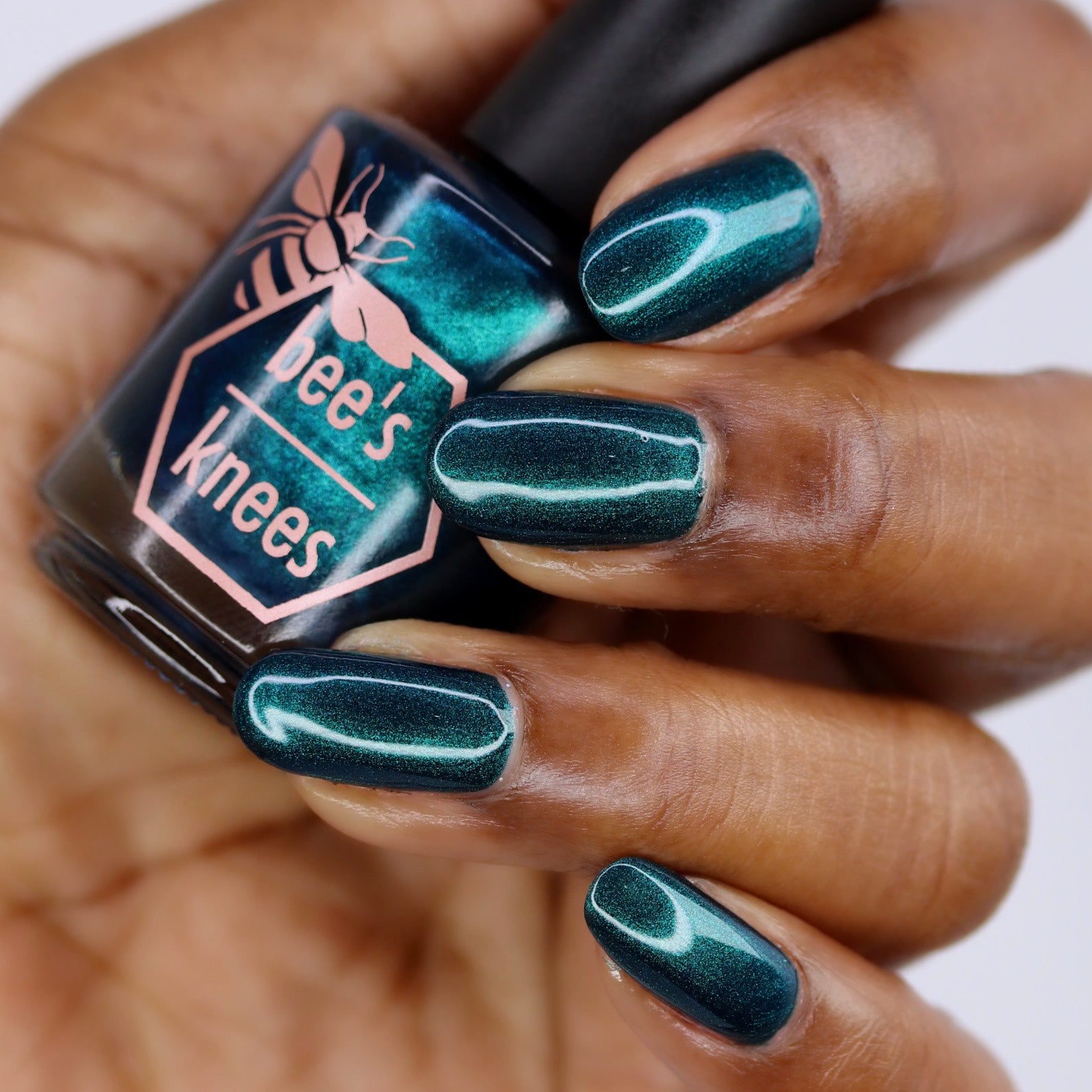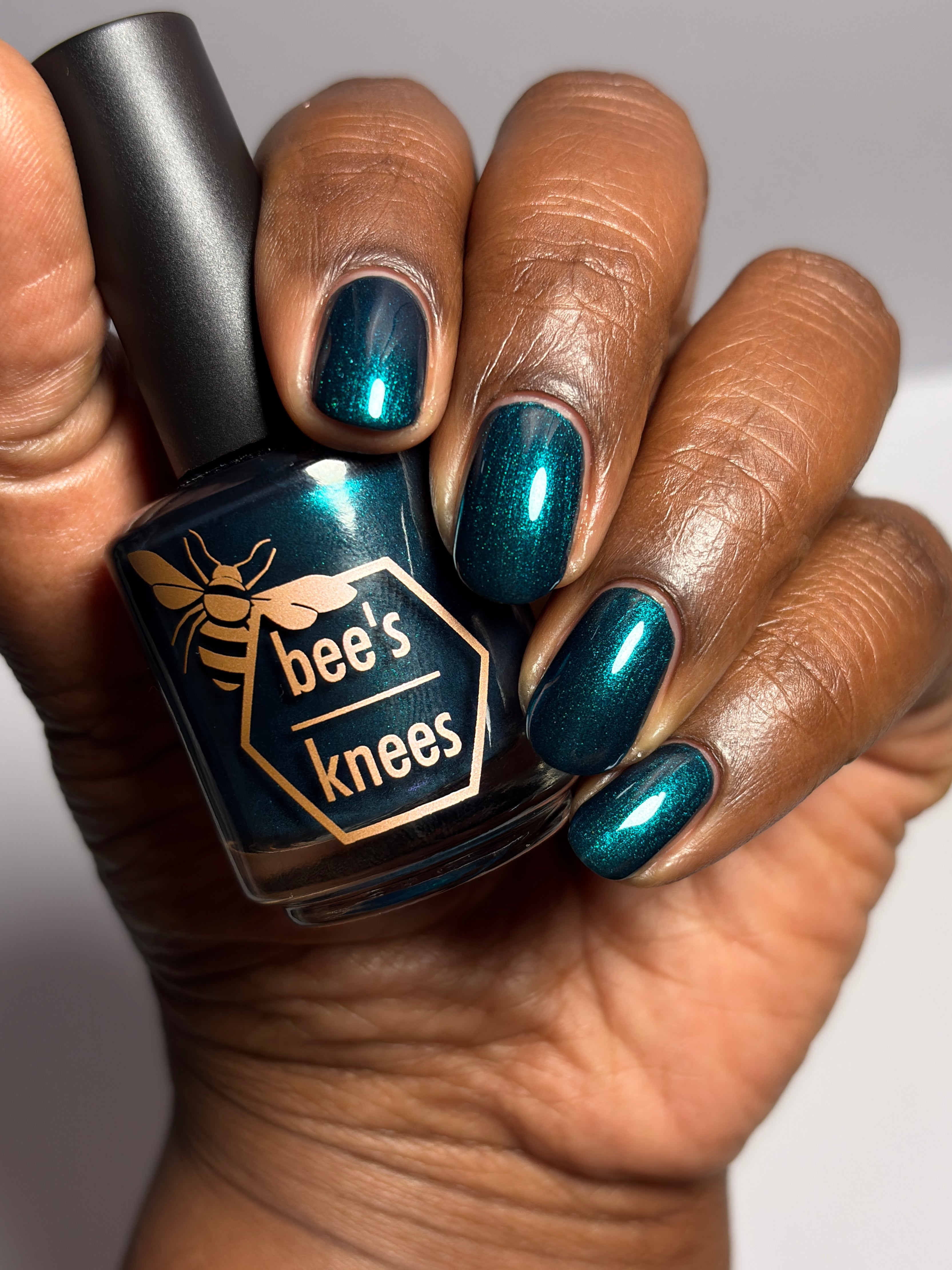 meant to mimic the beetle necklace, this is a deep navy with glowy green to blue pearlescent shimmer