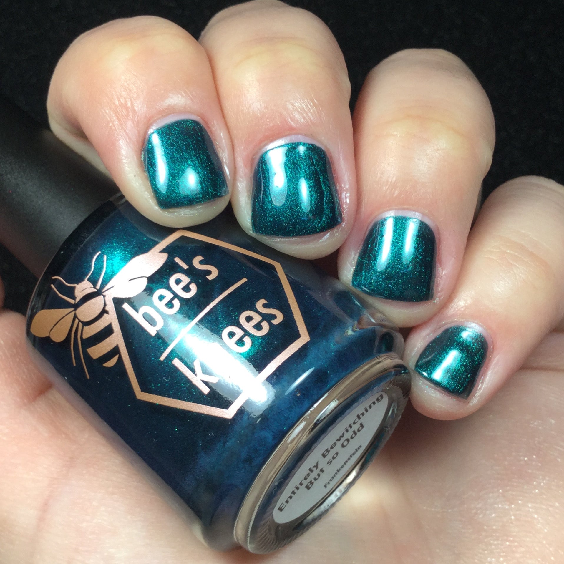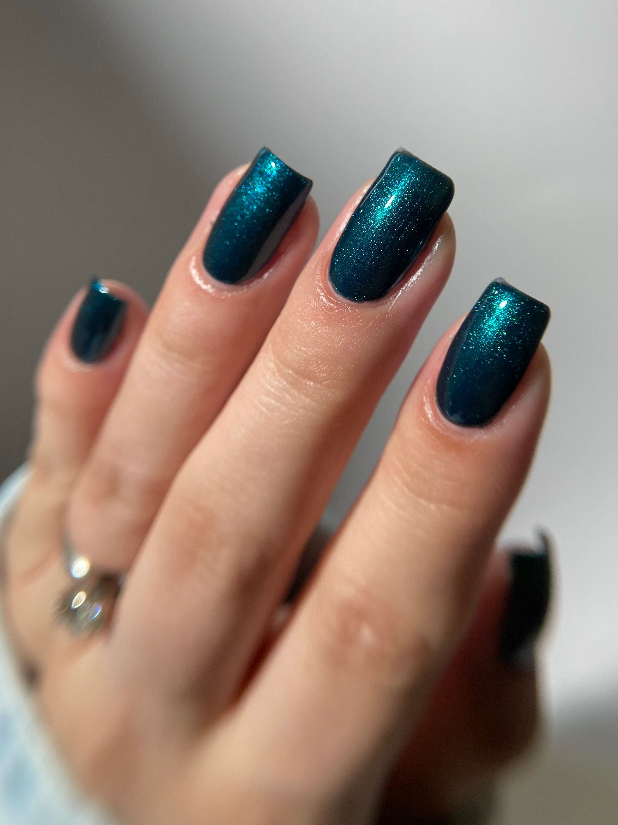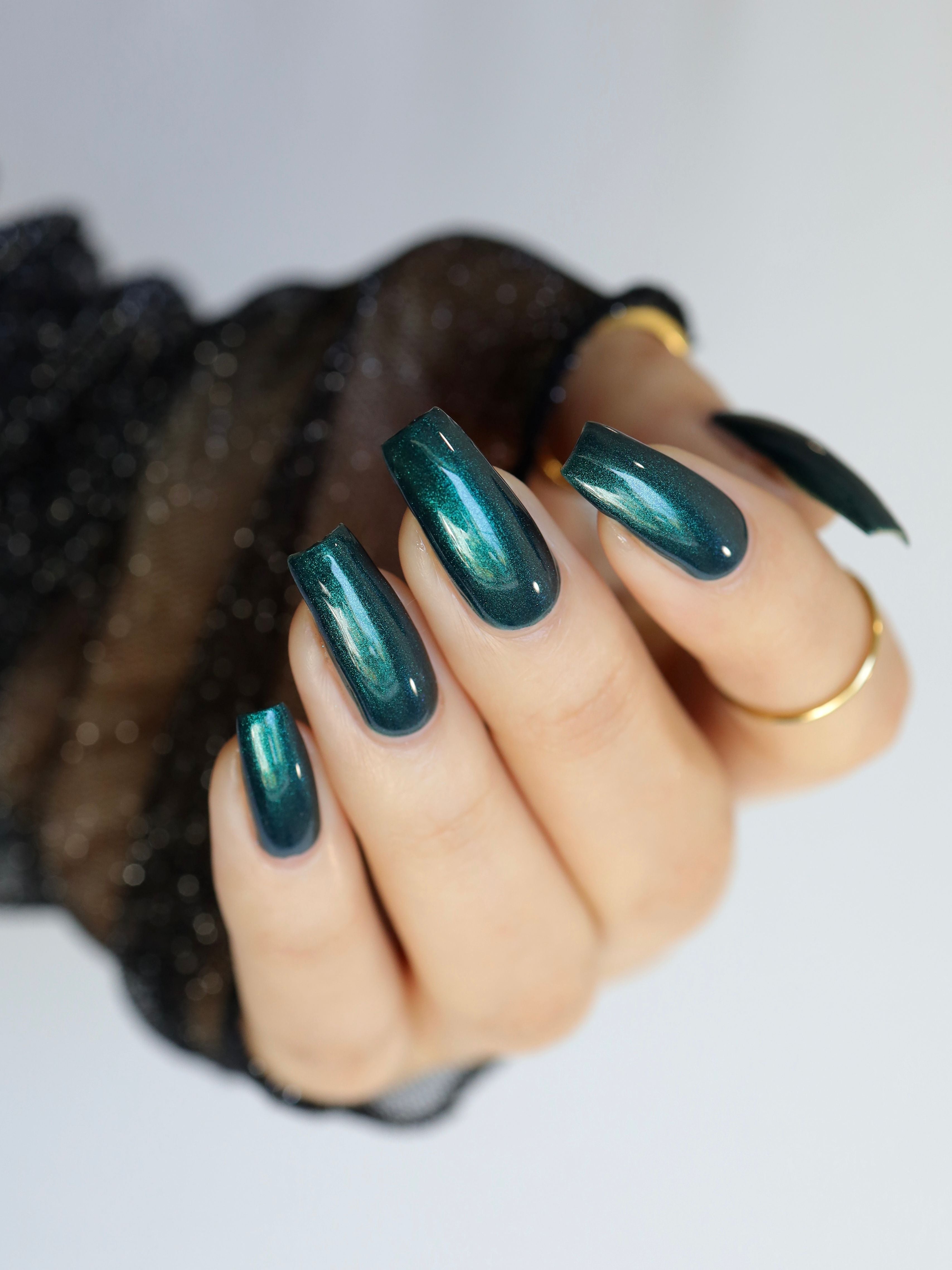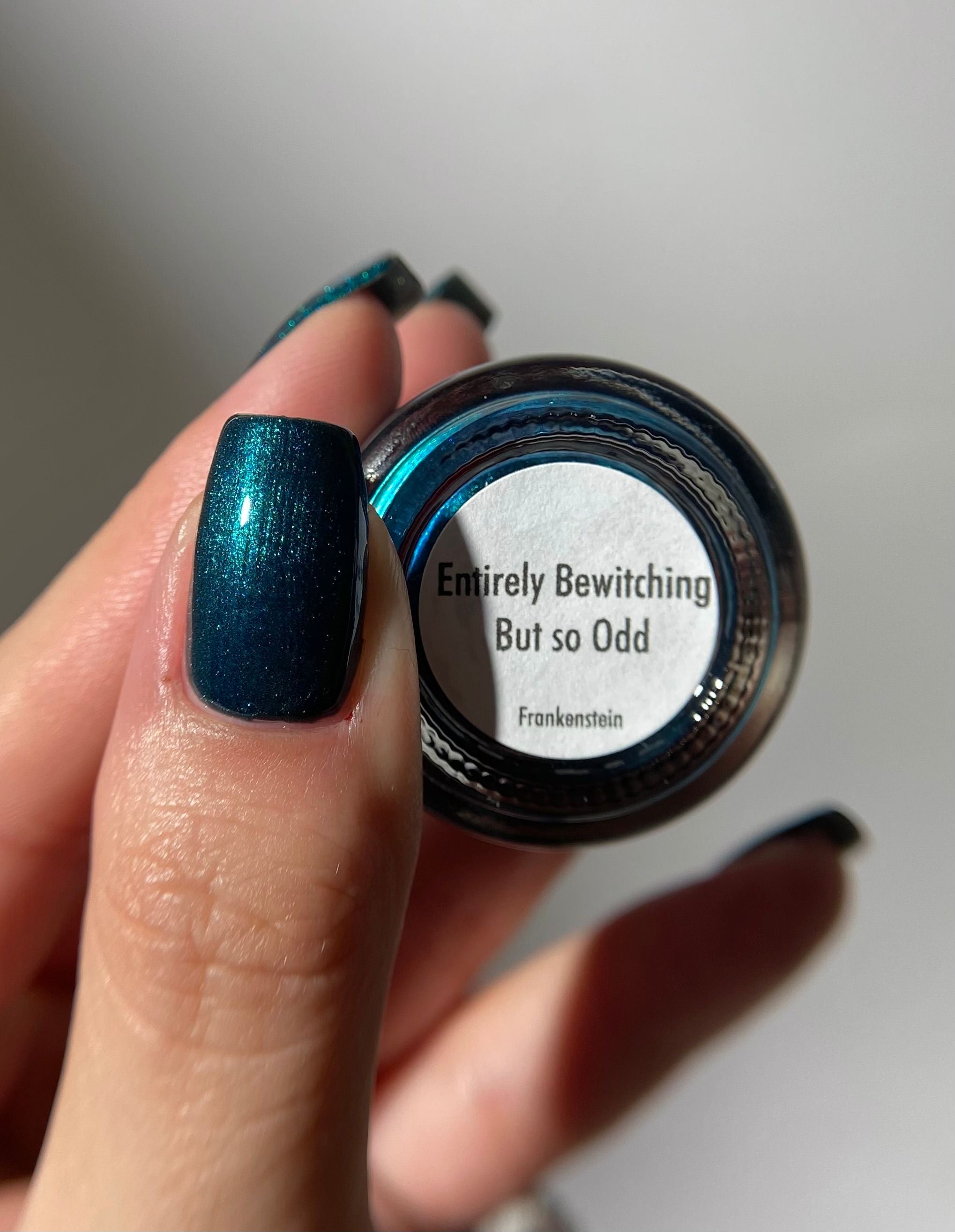 meant to mimic the beetle necklace, this is a deep navy with glowy green to blue pearlescent shimmer