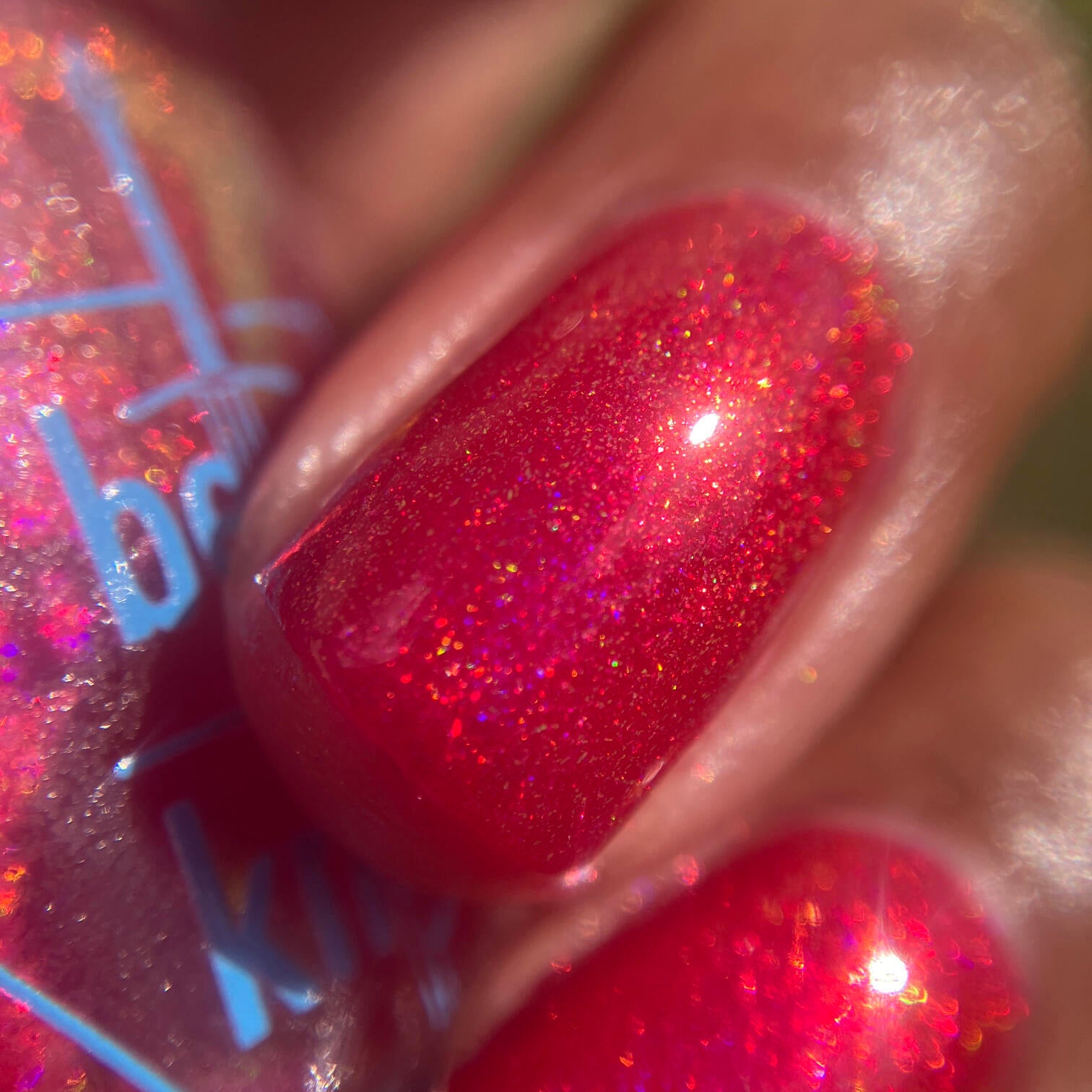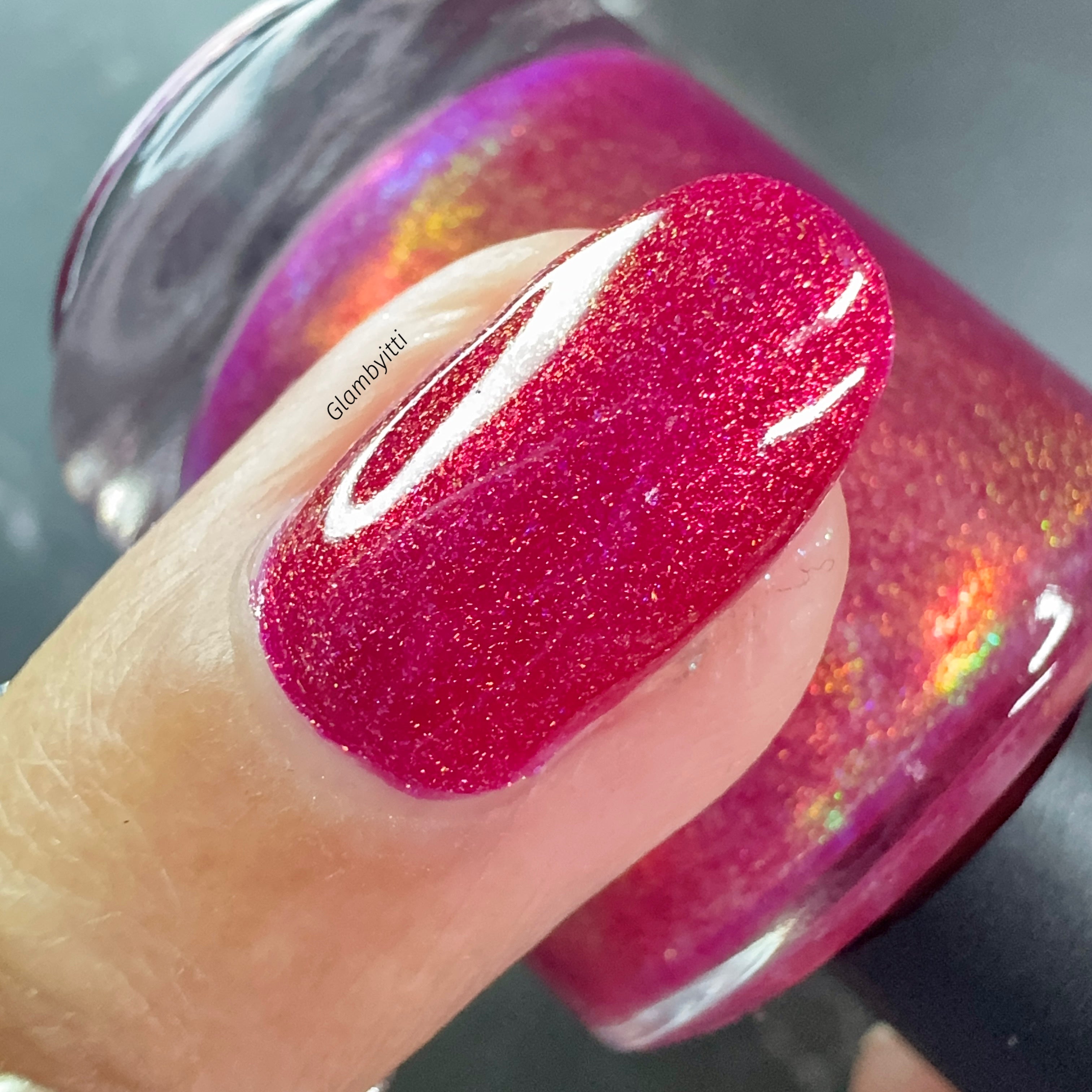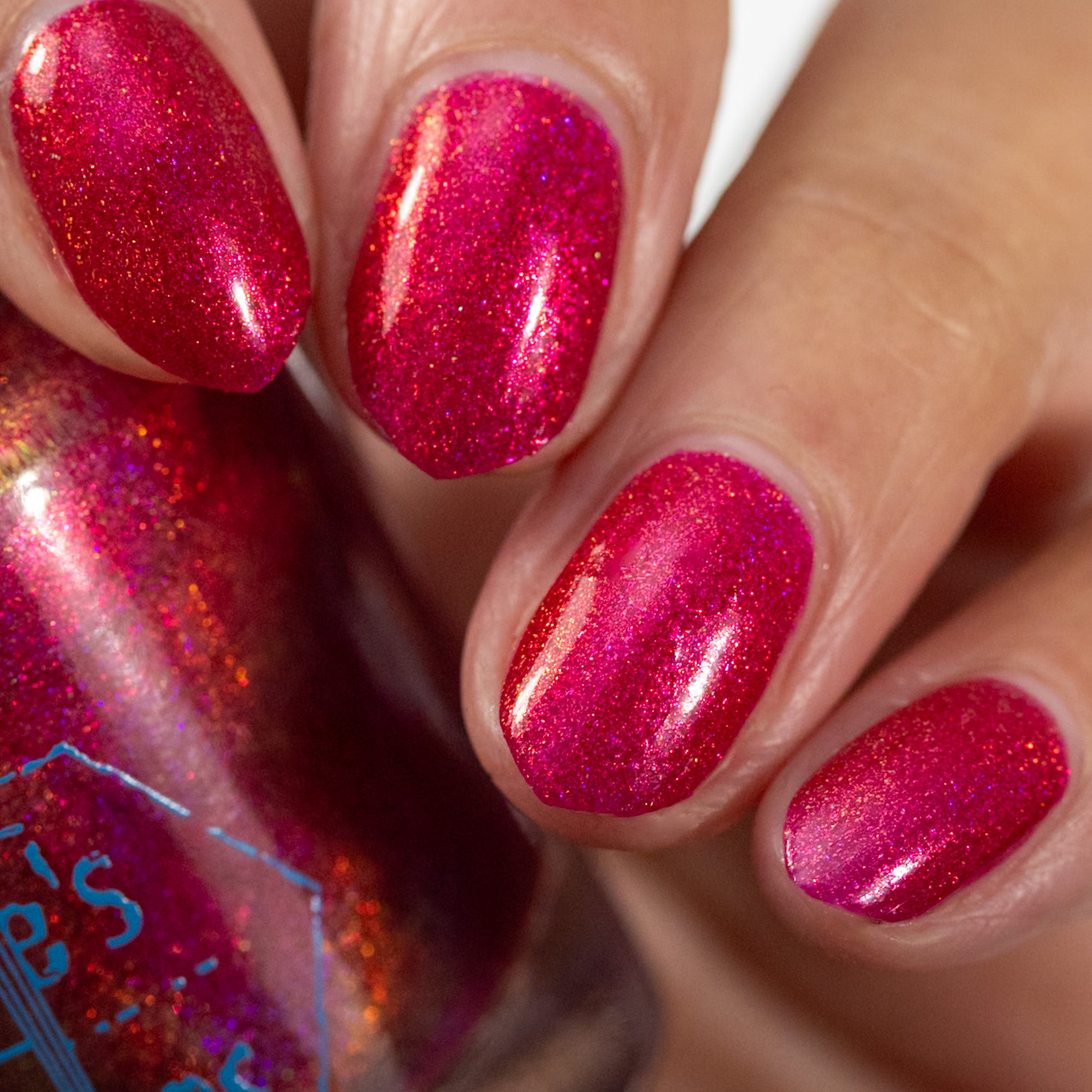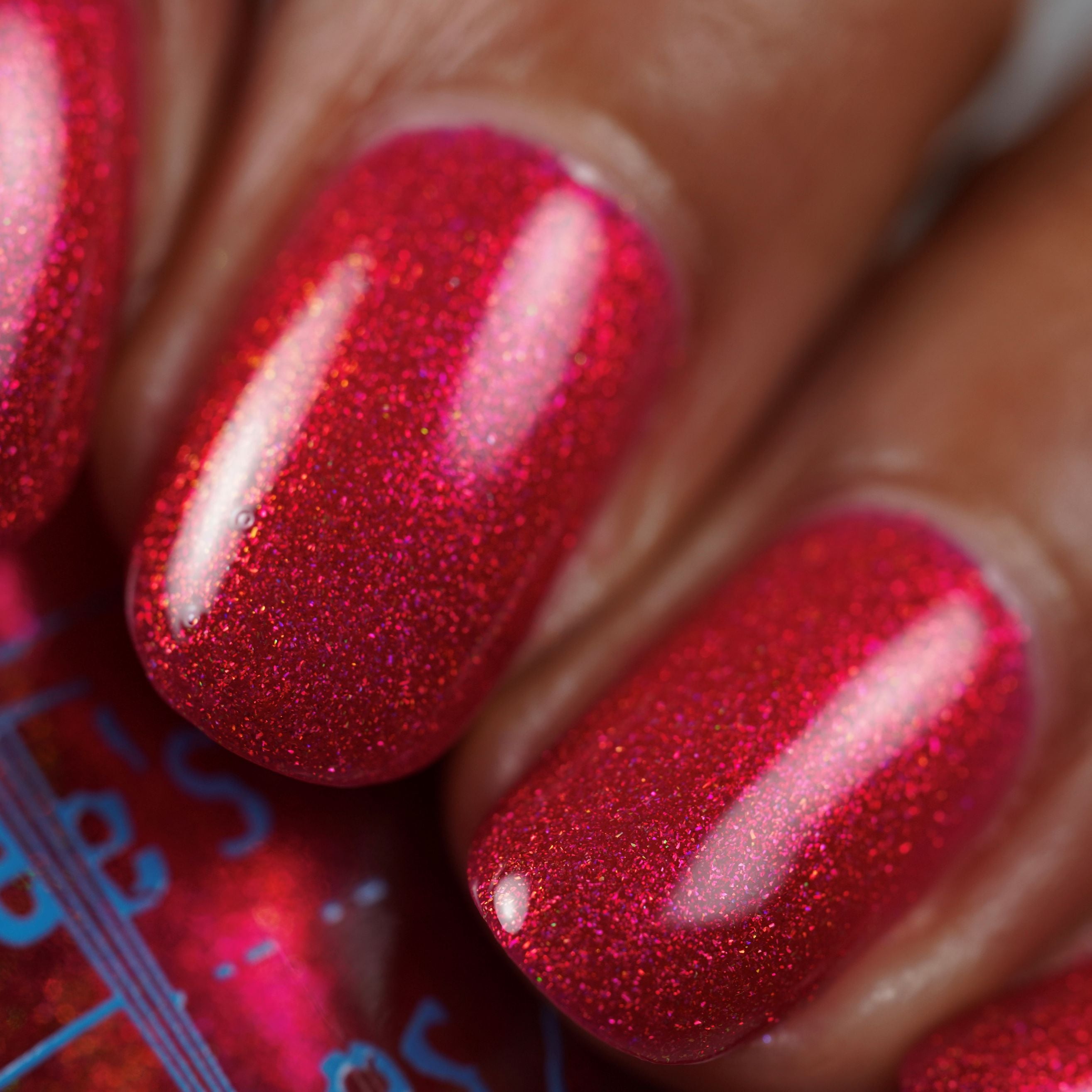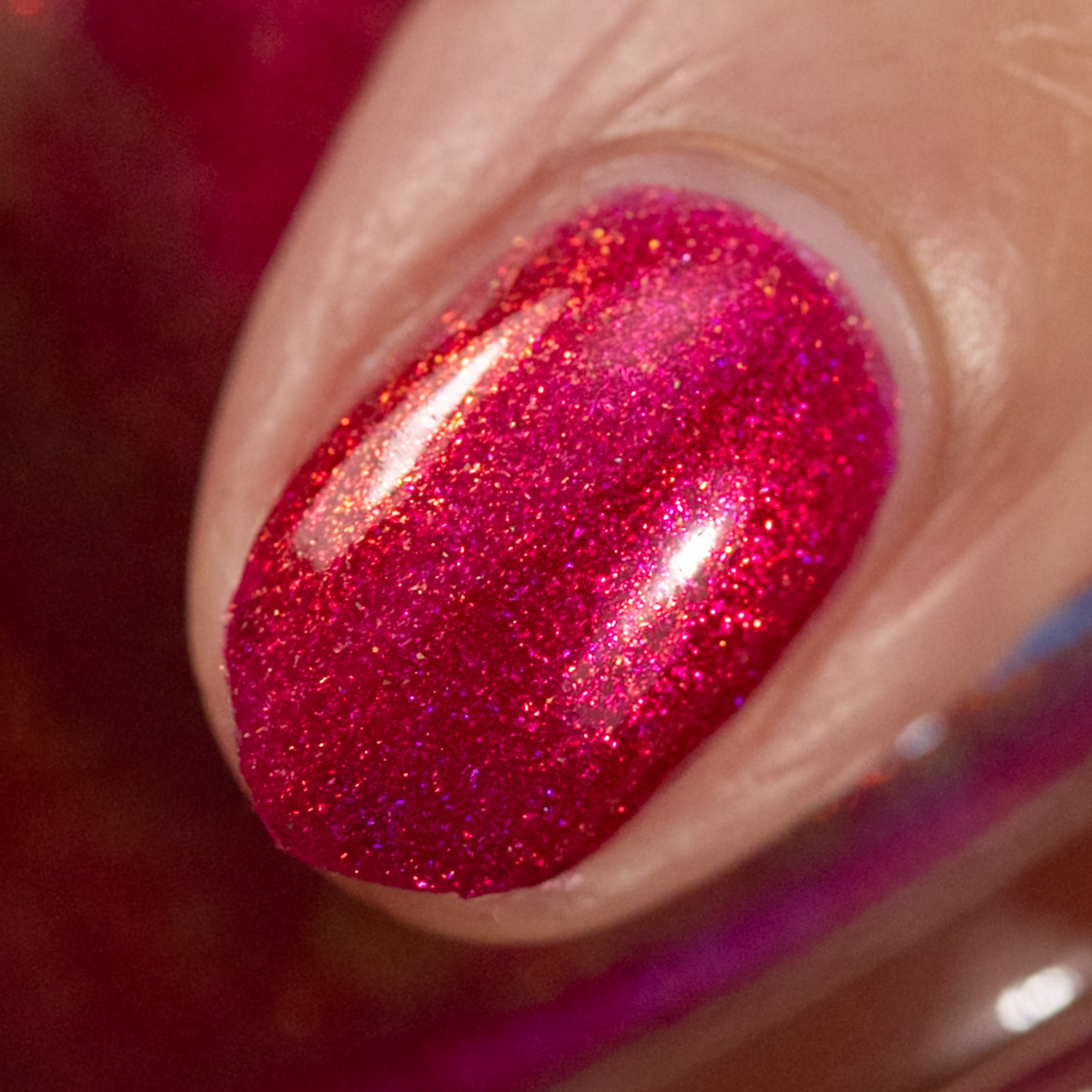 Butyl Acetate, Ethyl Acetate, Nitrocellulose, Adipic Acid/Neopentyl Glycol/Trimellitic Anhydride Copolymer, Acetyl Tributyl Citrate, Isopropyl Alcohol, Acrylates Copolymer, Stearalkonium Bentonite, N-Butyl Alcohol, Styrene/Acrylates Copolymer, Benzophenone-1, Silica, Alumina, Trimethylpentanediyl Dibenzoate. May Contain: Mica, Iron Oxides, Titanium Dioxide, Tin Oxide, Ferric Ferrocyanide, Yellow #5, D&C Yellow #10, D&C Red #30, D&C Red #6, D&C Red #7, D&C Red #34, Ultramarine Blue, D&C Black #2, Holographic glitter, Magnesium Fluoride-Coated Aluminum, Silica.