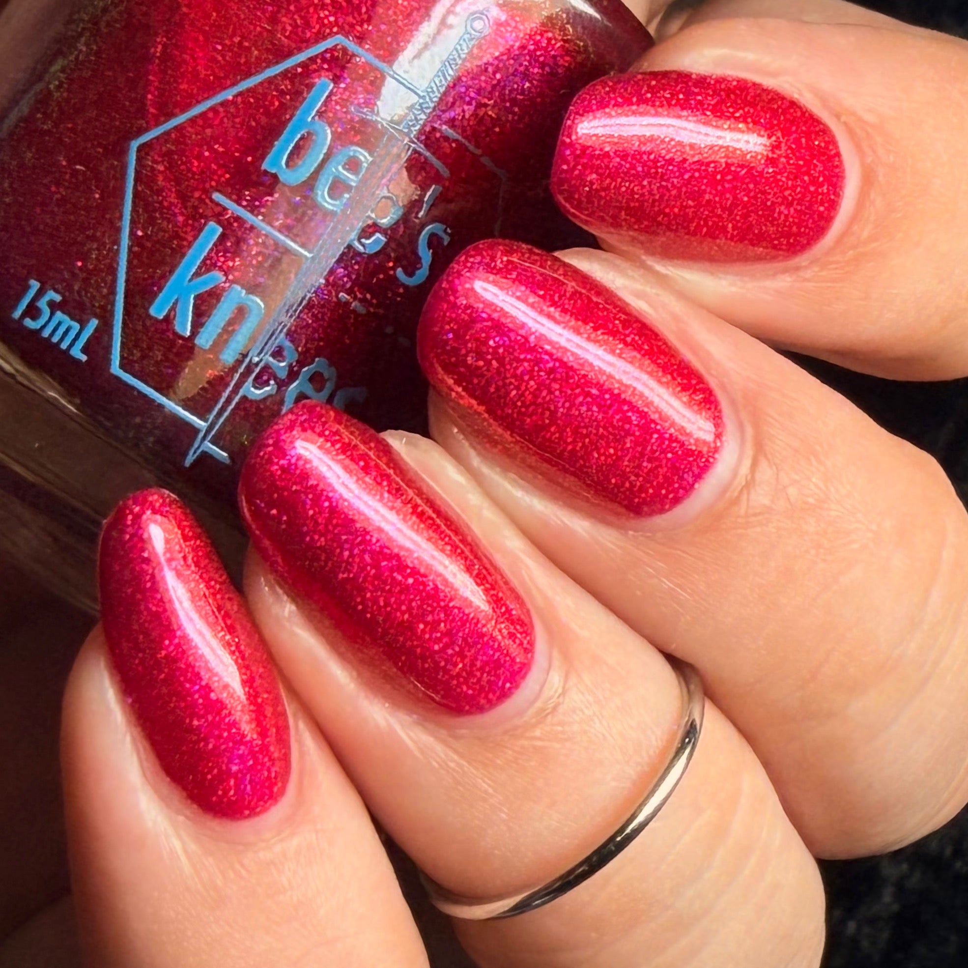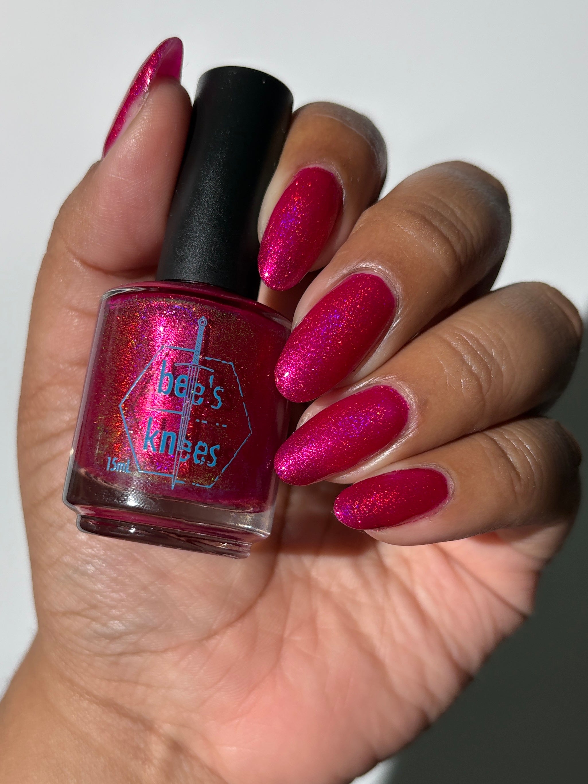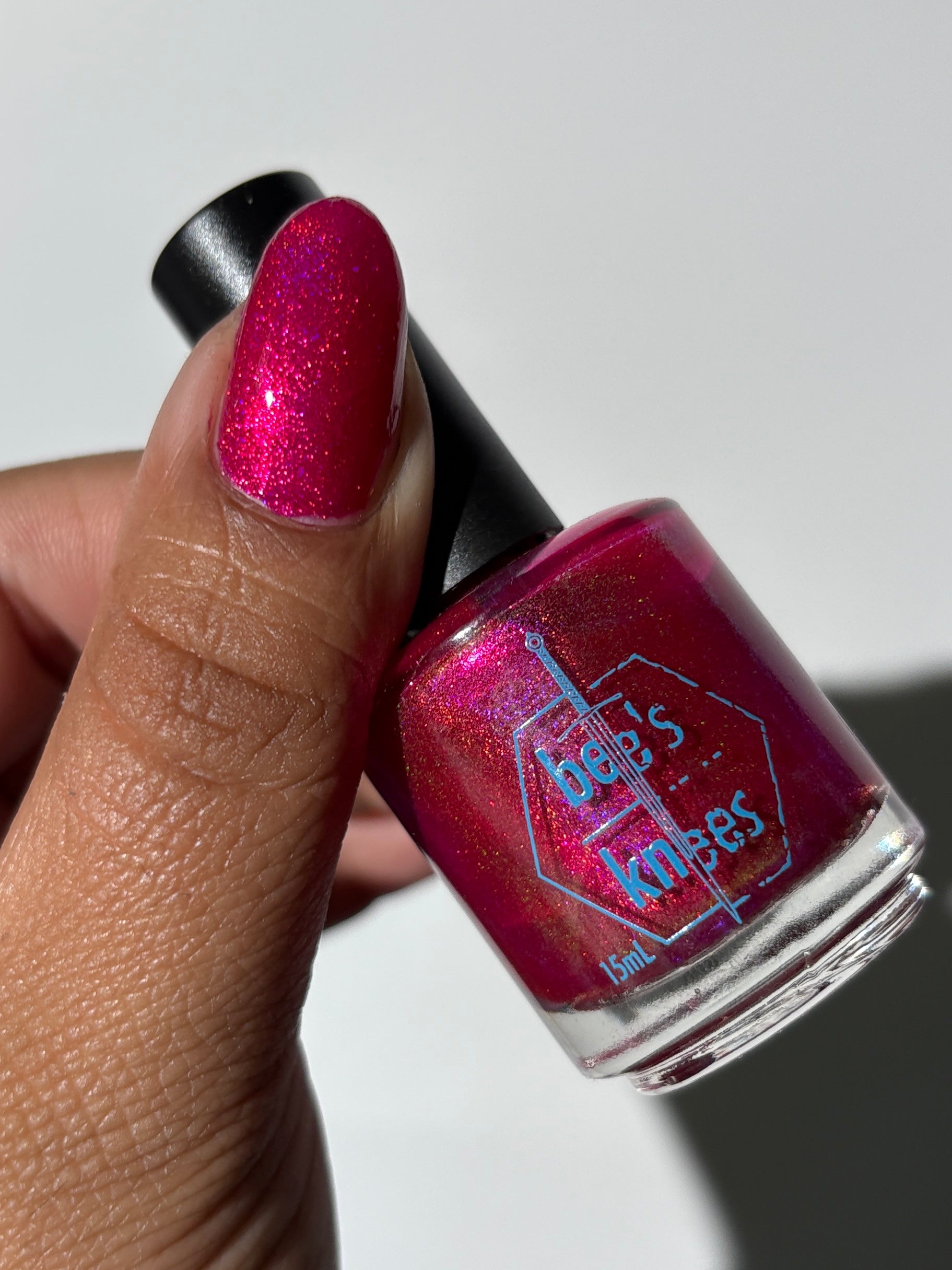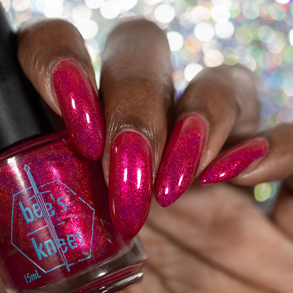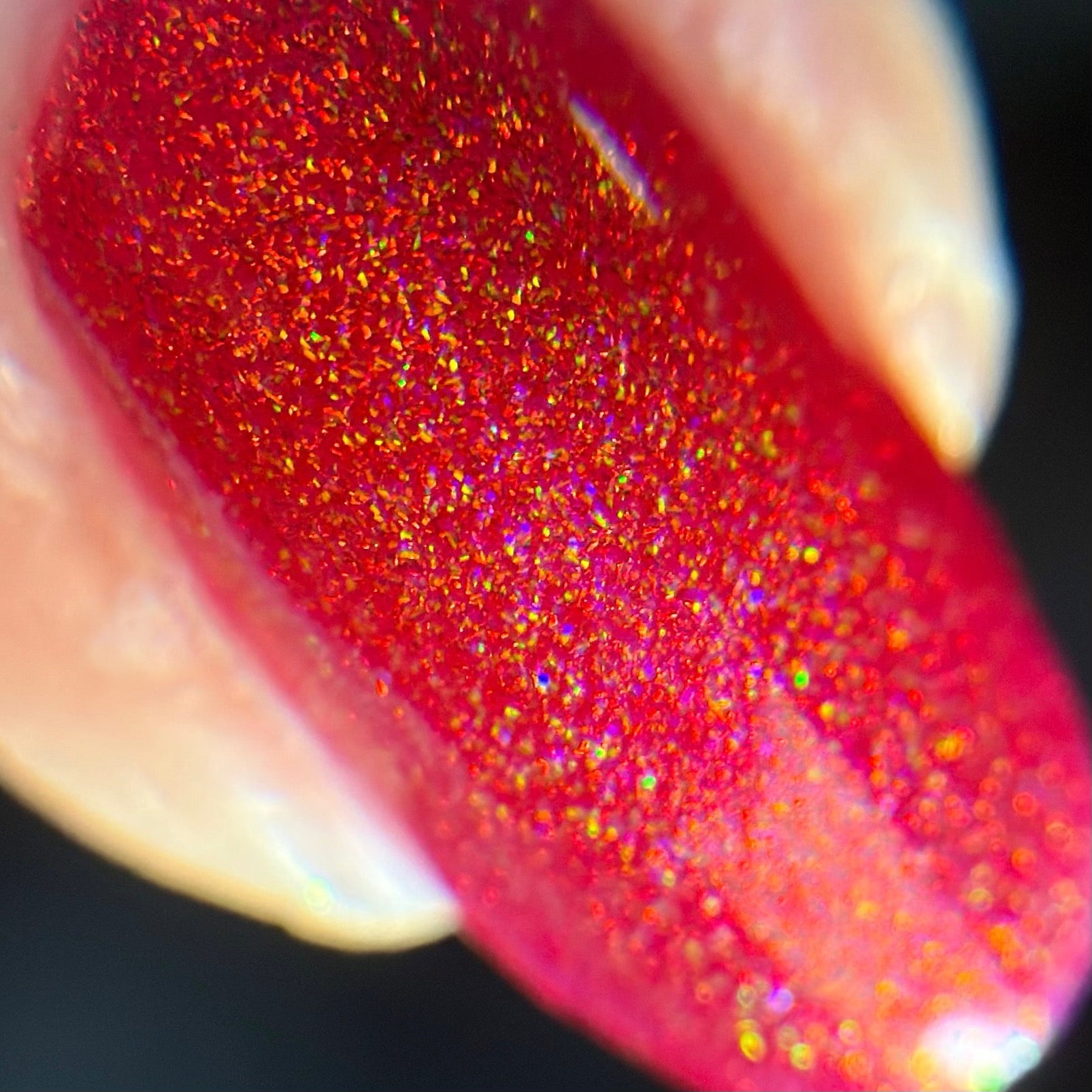 Butyl Acetate, Ethyl Acetate, Nitrocellulose, Adipic Acid/Neopentyl Glycol/Trimellitic Anhydride Copolymer, Acetyl Tributyl Citrate, Isopropyl Alcohol, Acrylates Copolymer, Stearalkonium Bentonite, N-Butyl Alcohol, Styrene/Acrylates Copolymer, Benzophenone-1, Silica, Alumina, Trimethylpentanediyl Dibenzoate. May Contain: Mica, Iron Oxides, Titanium Dioxide, Tin Oxide, Ferric Ferrocyanide, Yellow #5, D&C Yellow #10, D&C Red #30, D&C Red #6, D&C Red #7, D&C Red #34, Ultramarine Blue, D&C Black #2, Holographic glitter, Magnesium Fluoride-Coated Aluminum, Silica.