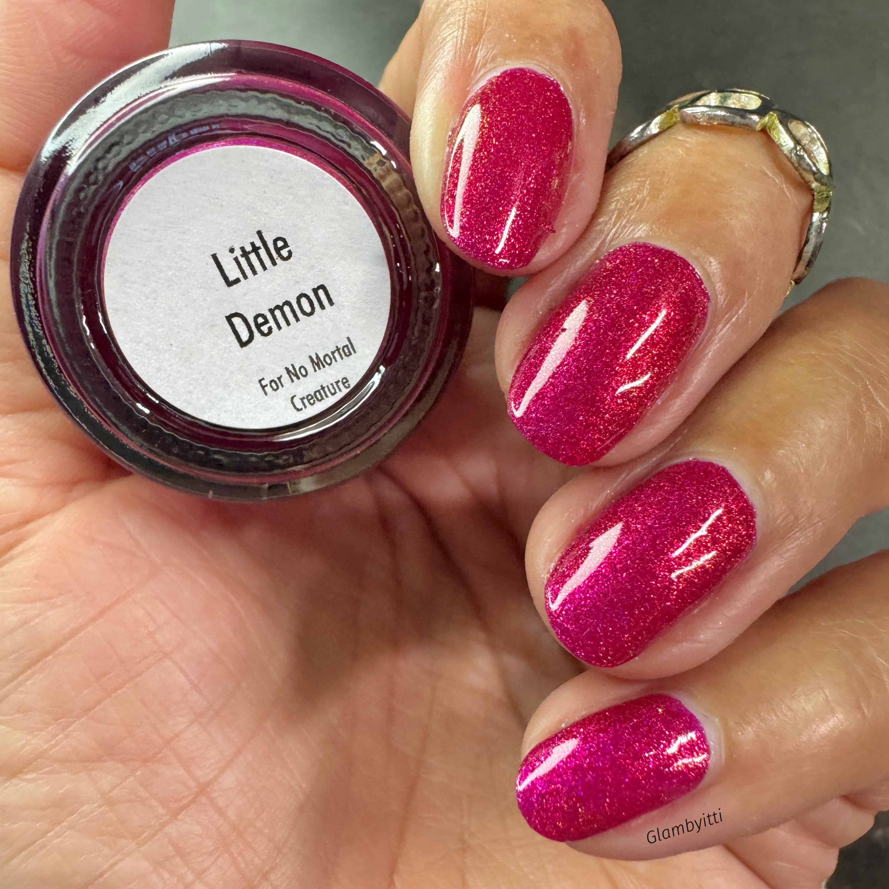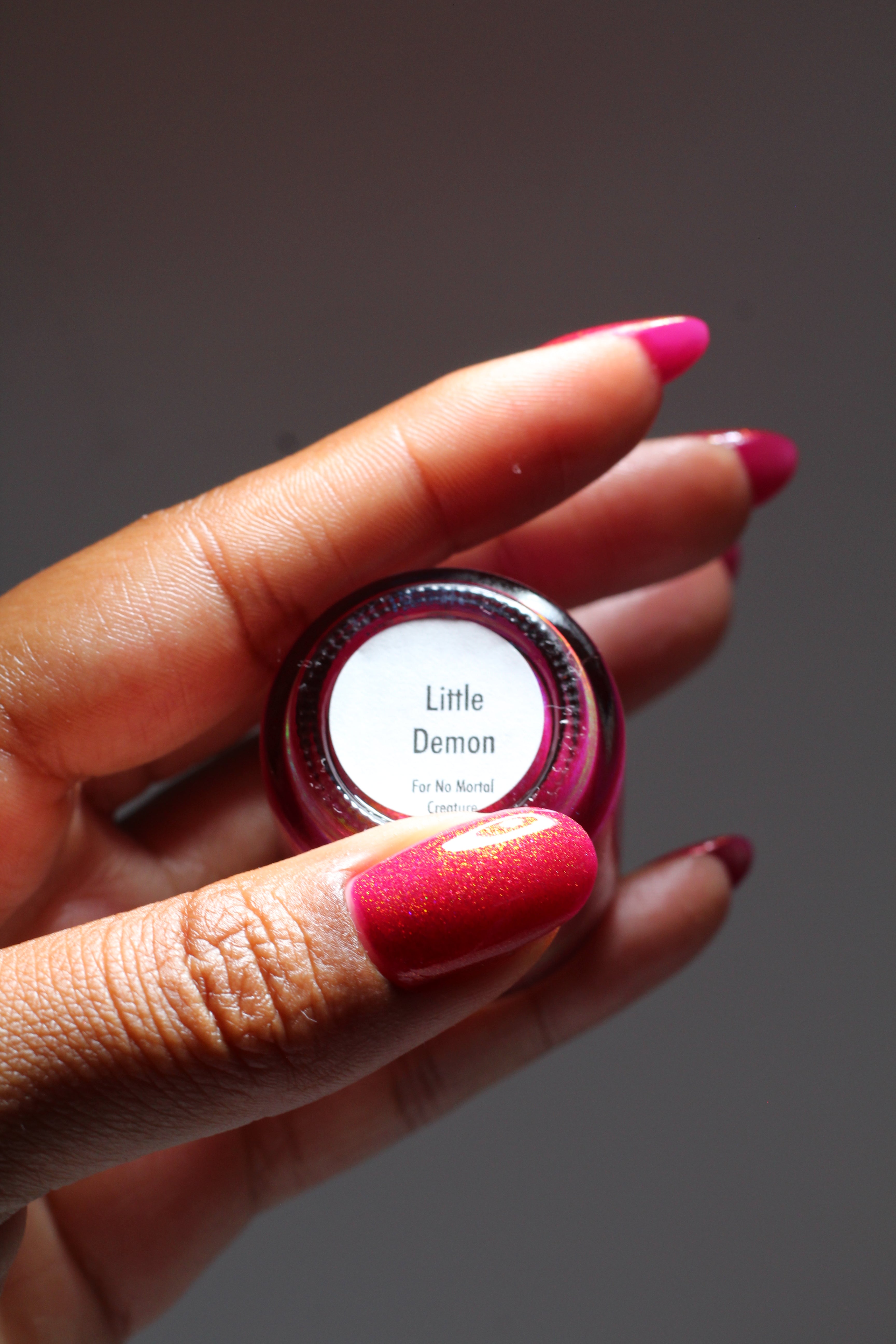 these are special limited edition polishes and come in a special bottle featuring a bespoke logo treatment made in partnership with Keshe Chow for her book For No Mortal Creature.