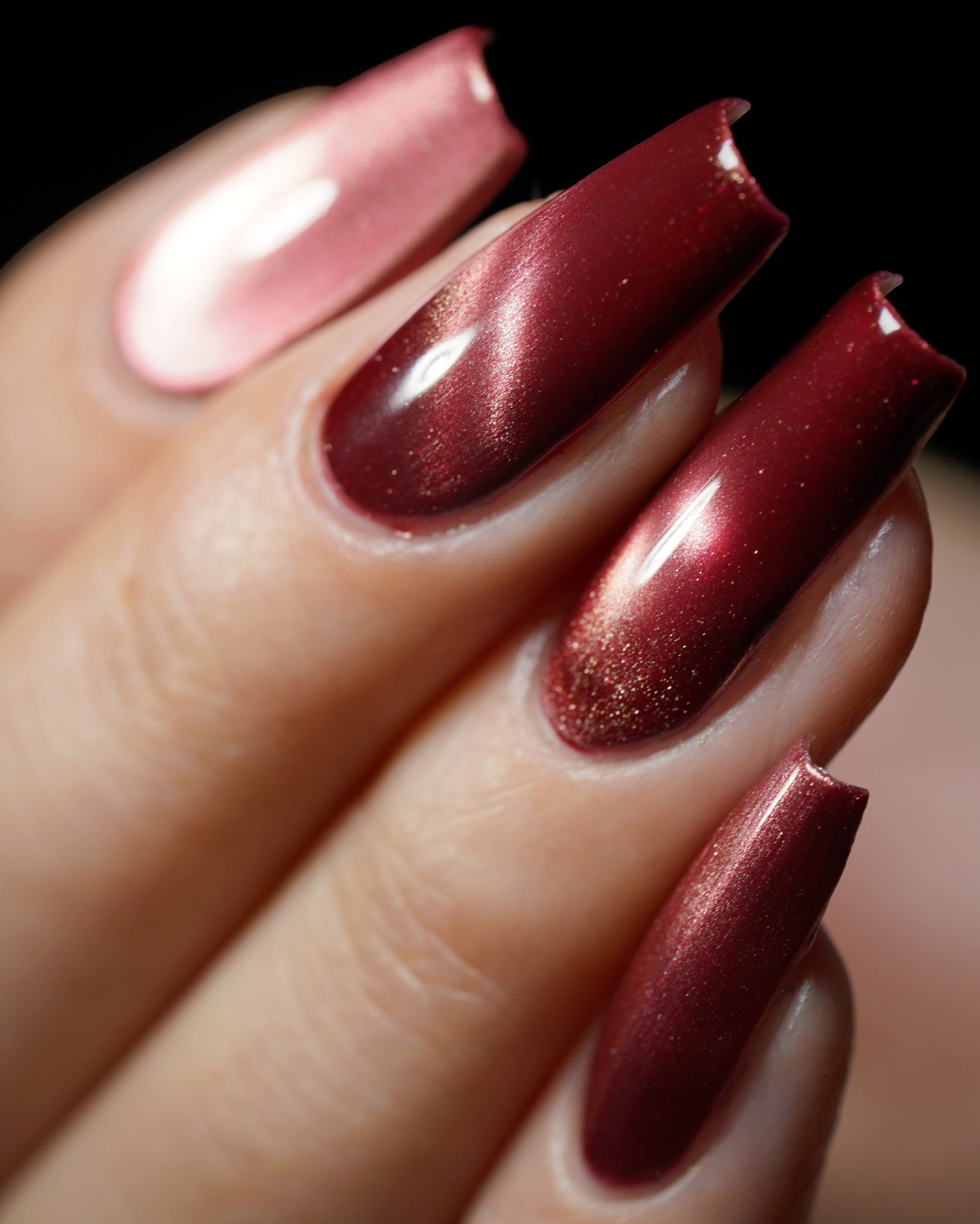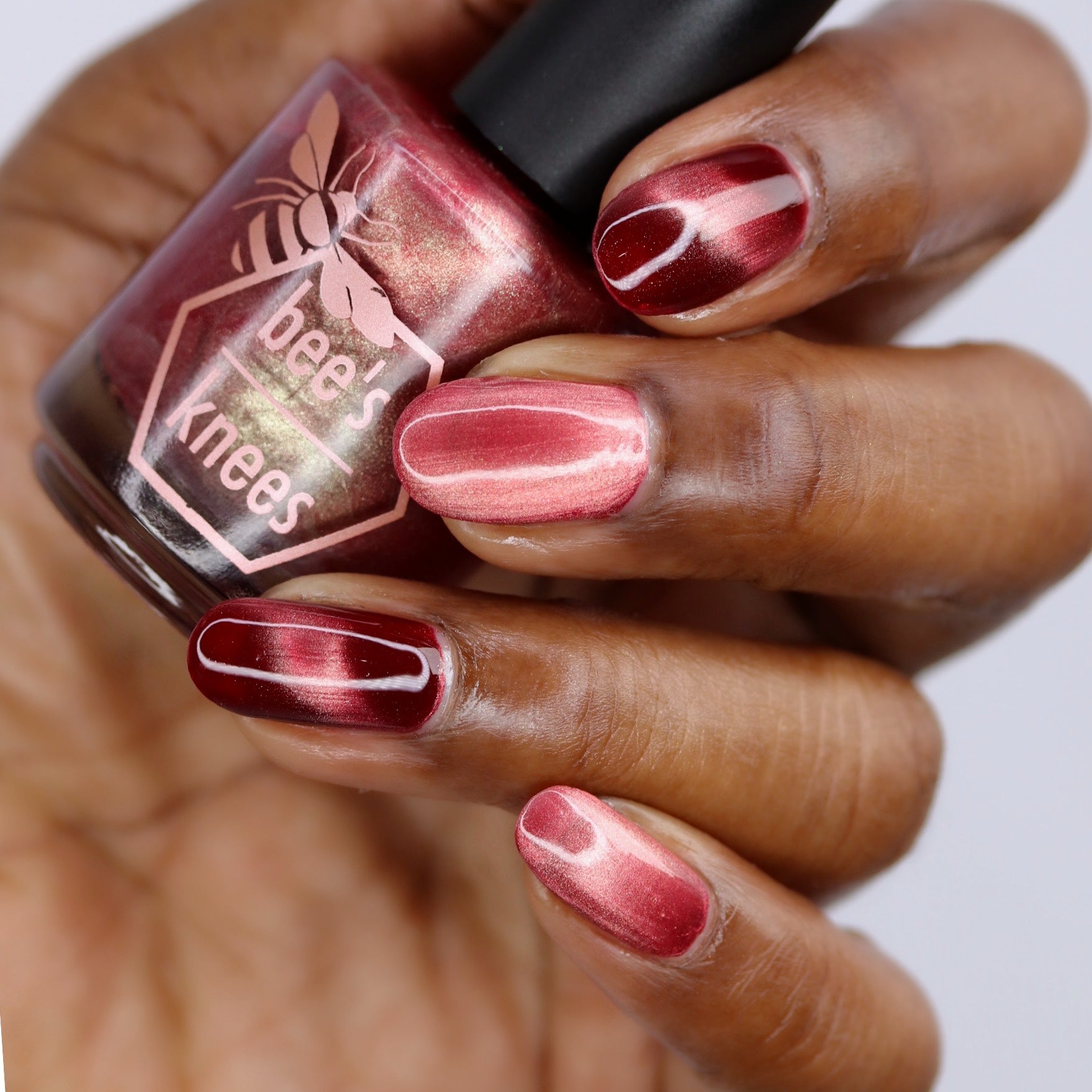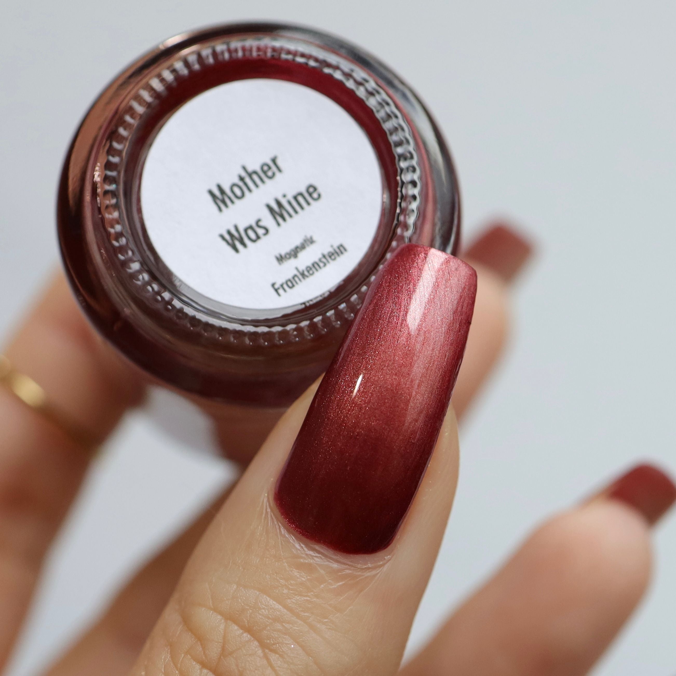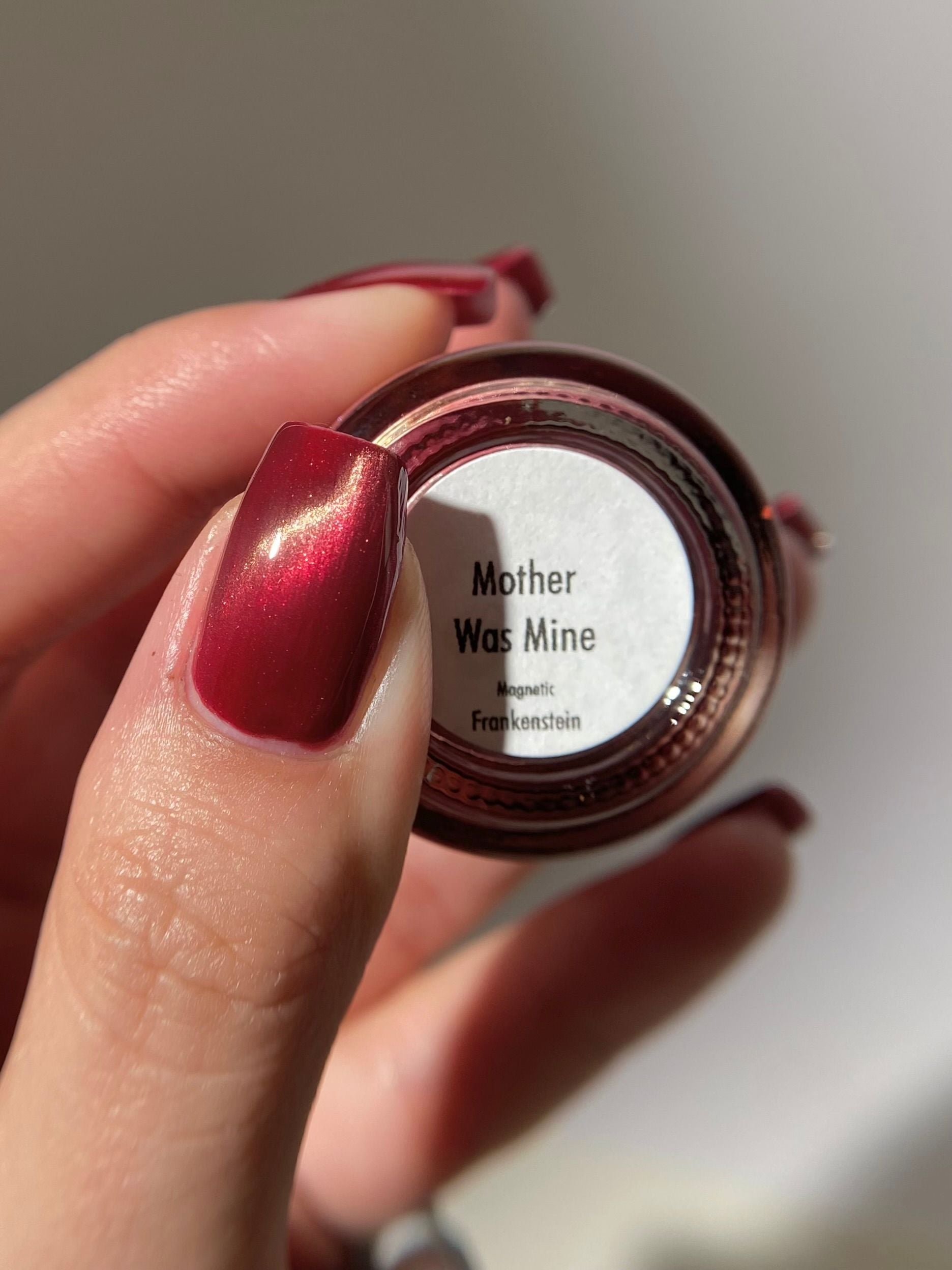 our true blood red Bog Dweller sibling with a silvery pink magnetic shimmer