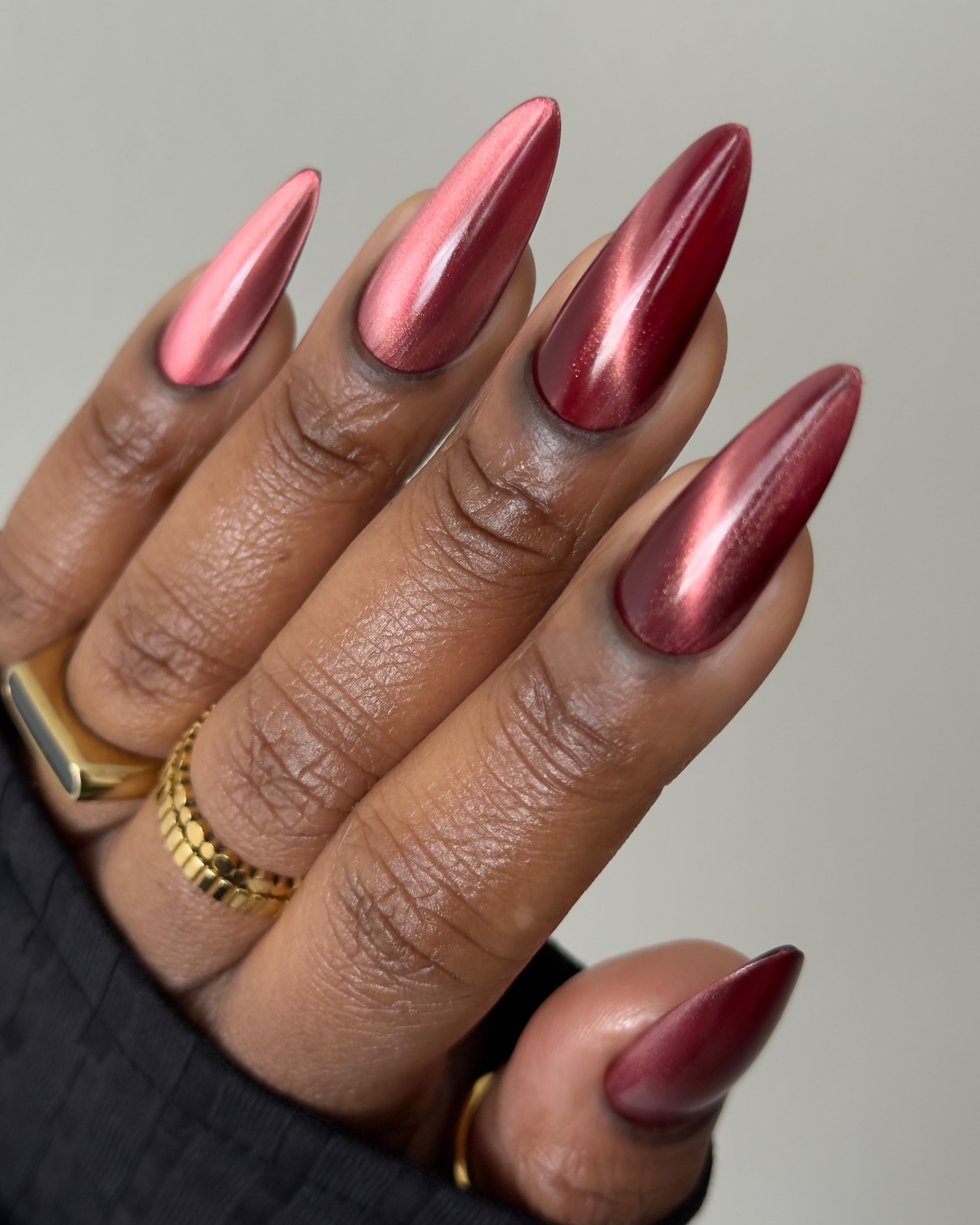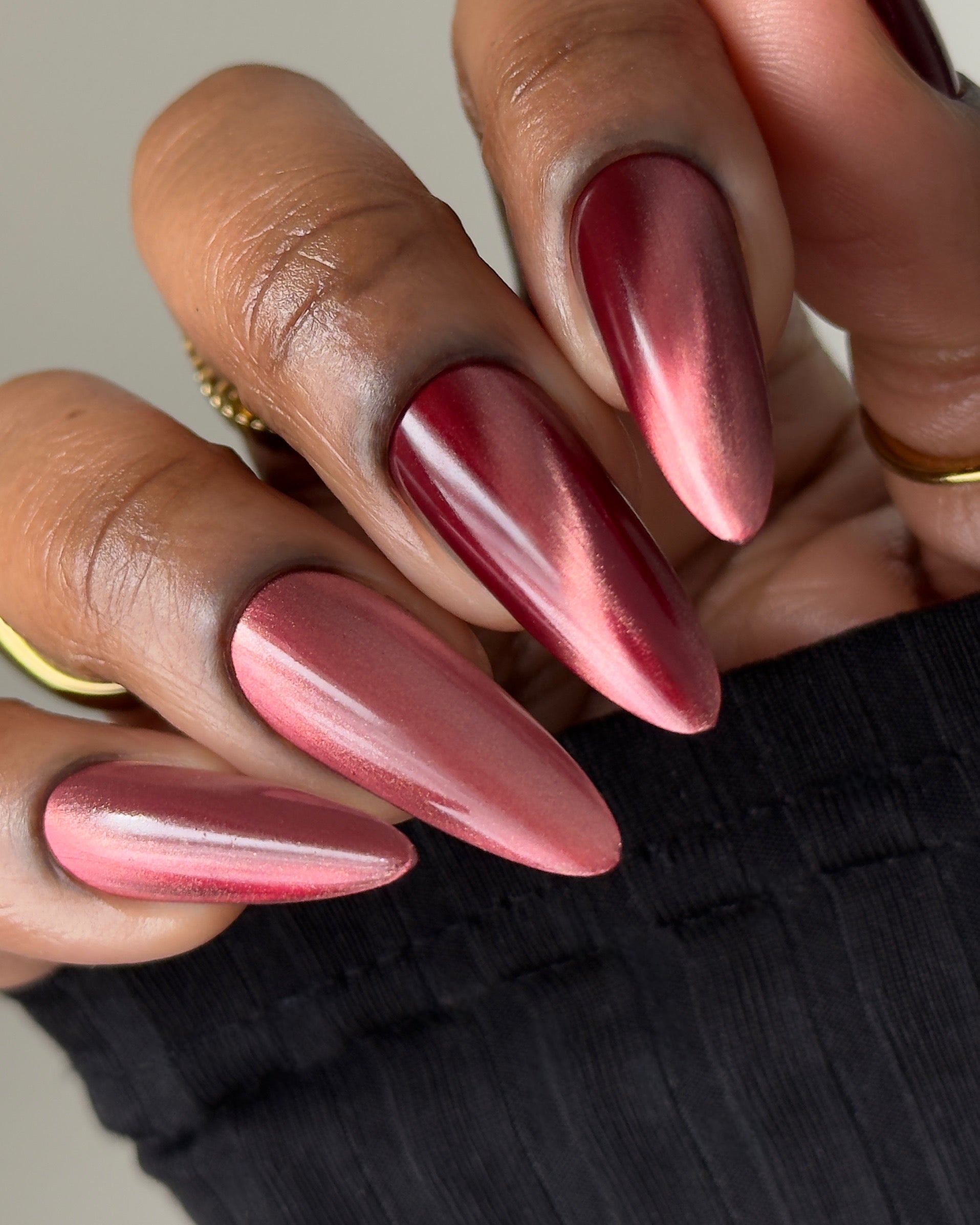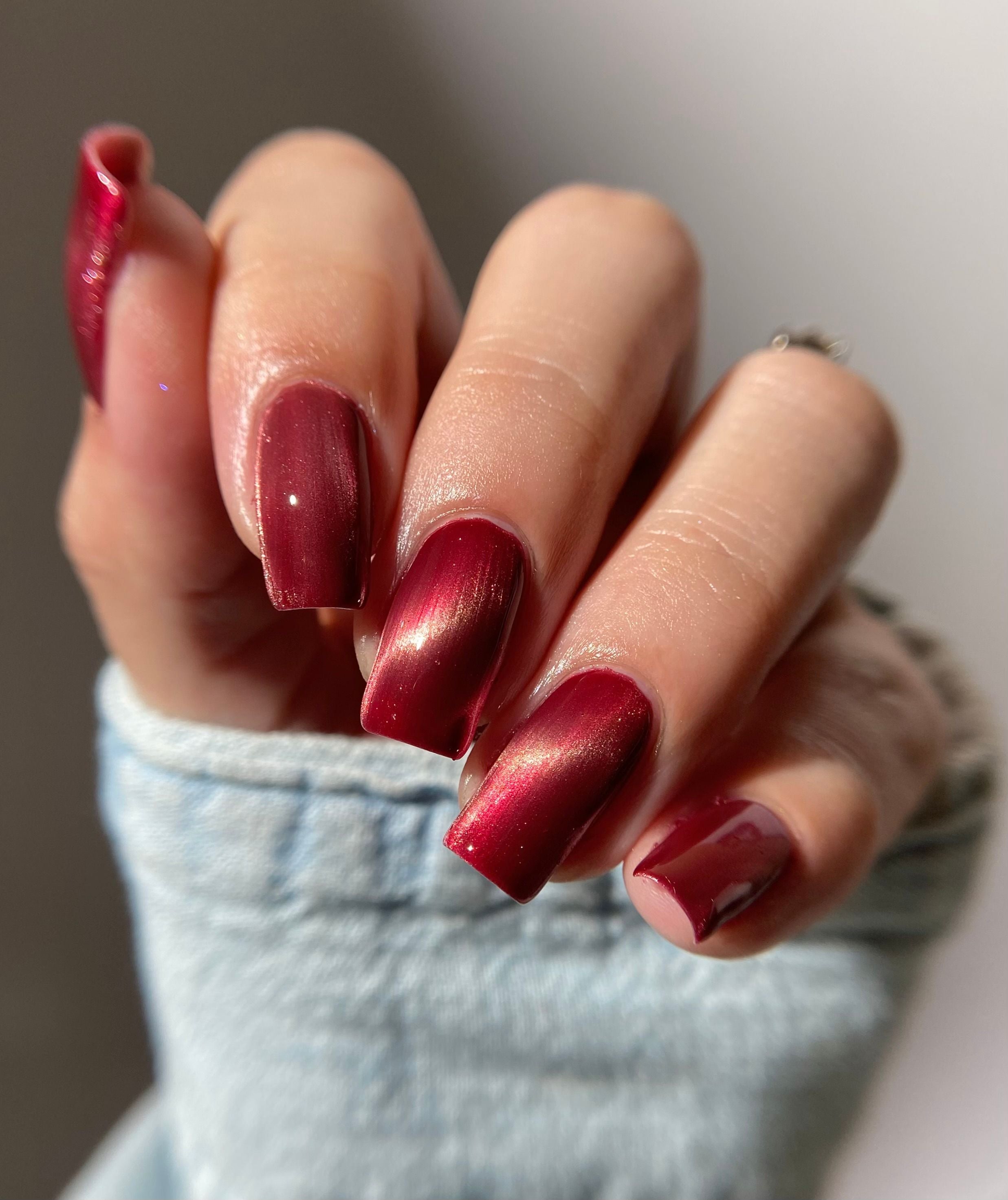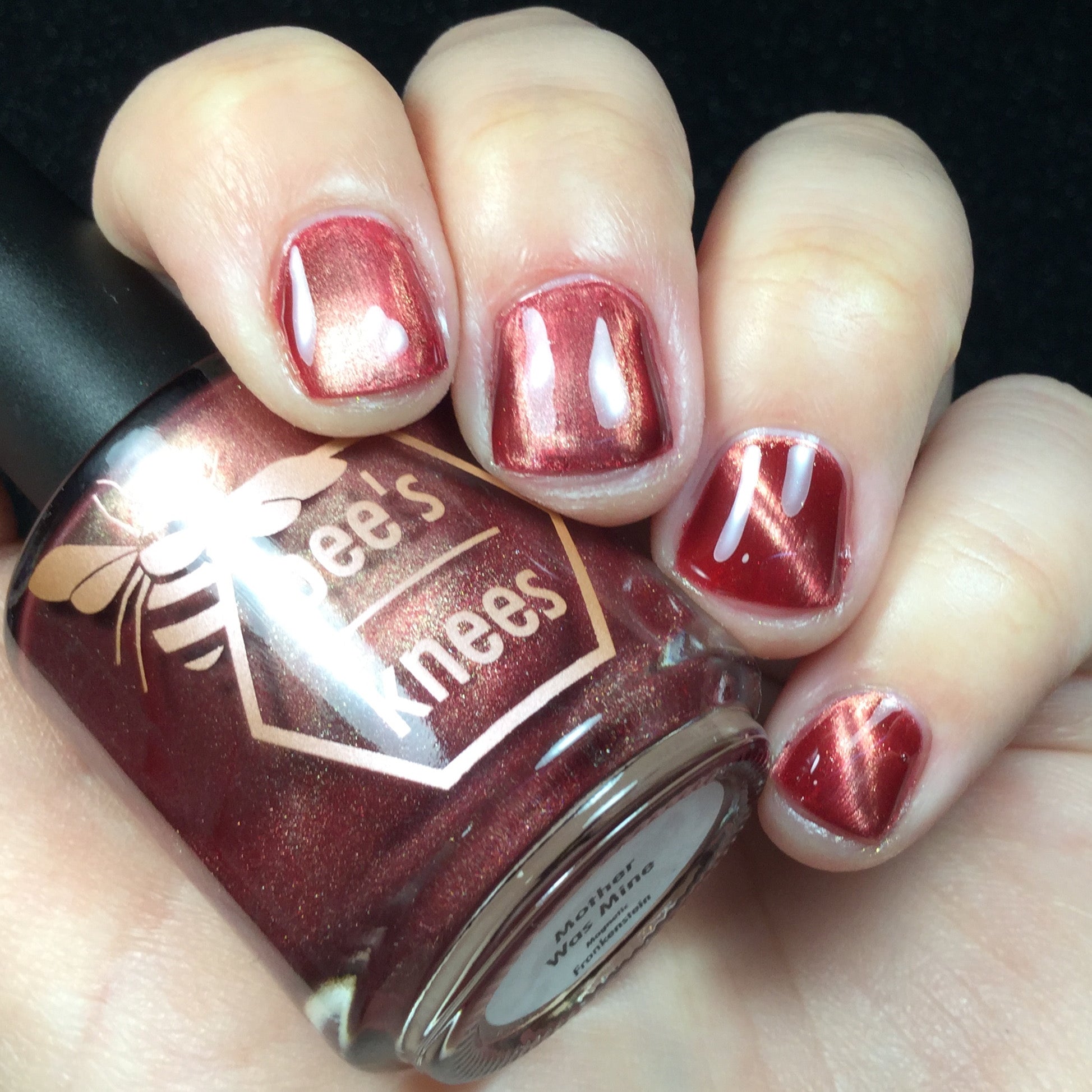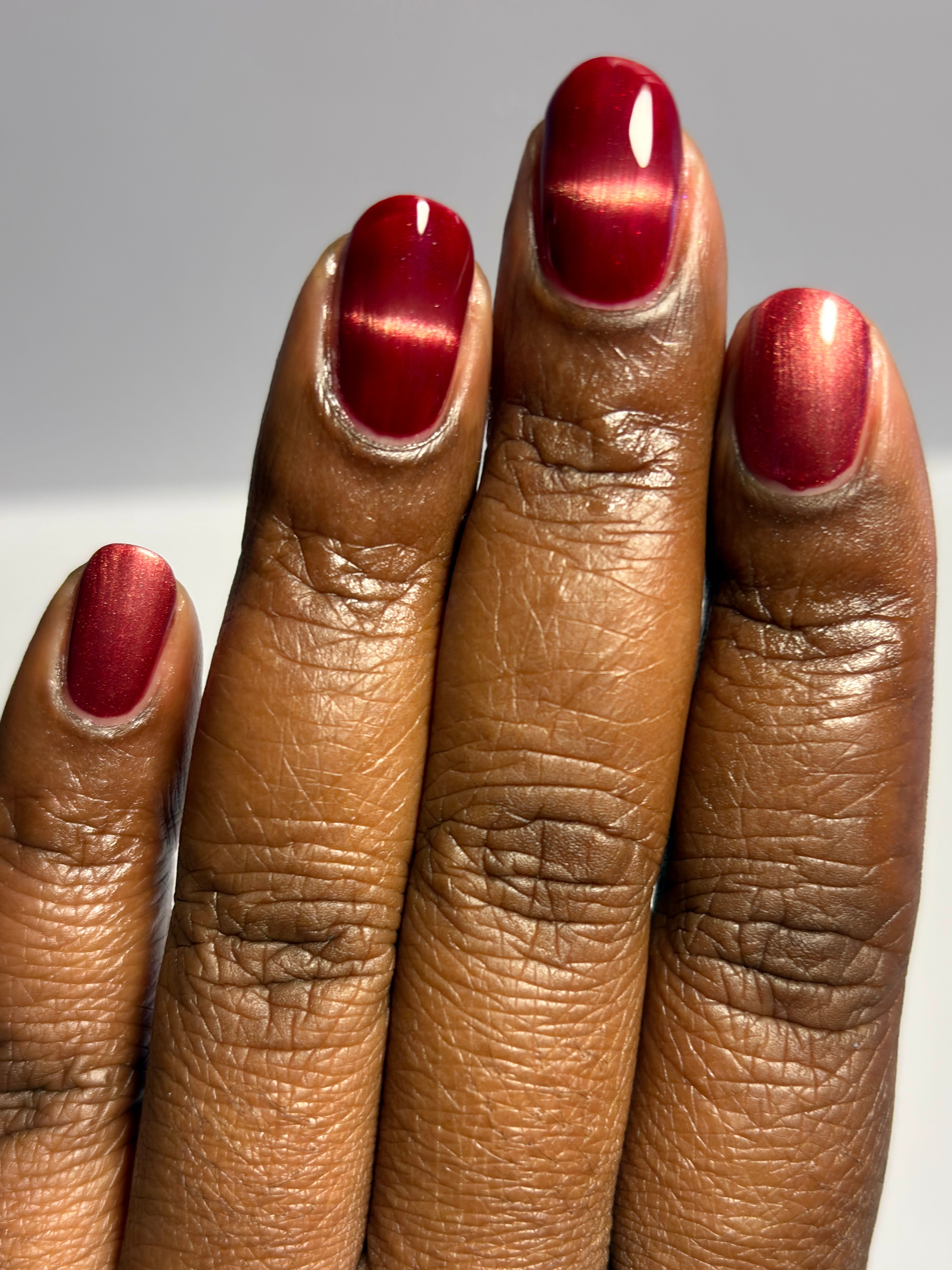 our true blood red Bog Dweller sibling with a silvery pink magnetic shimmer