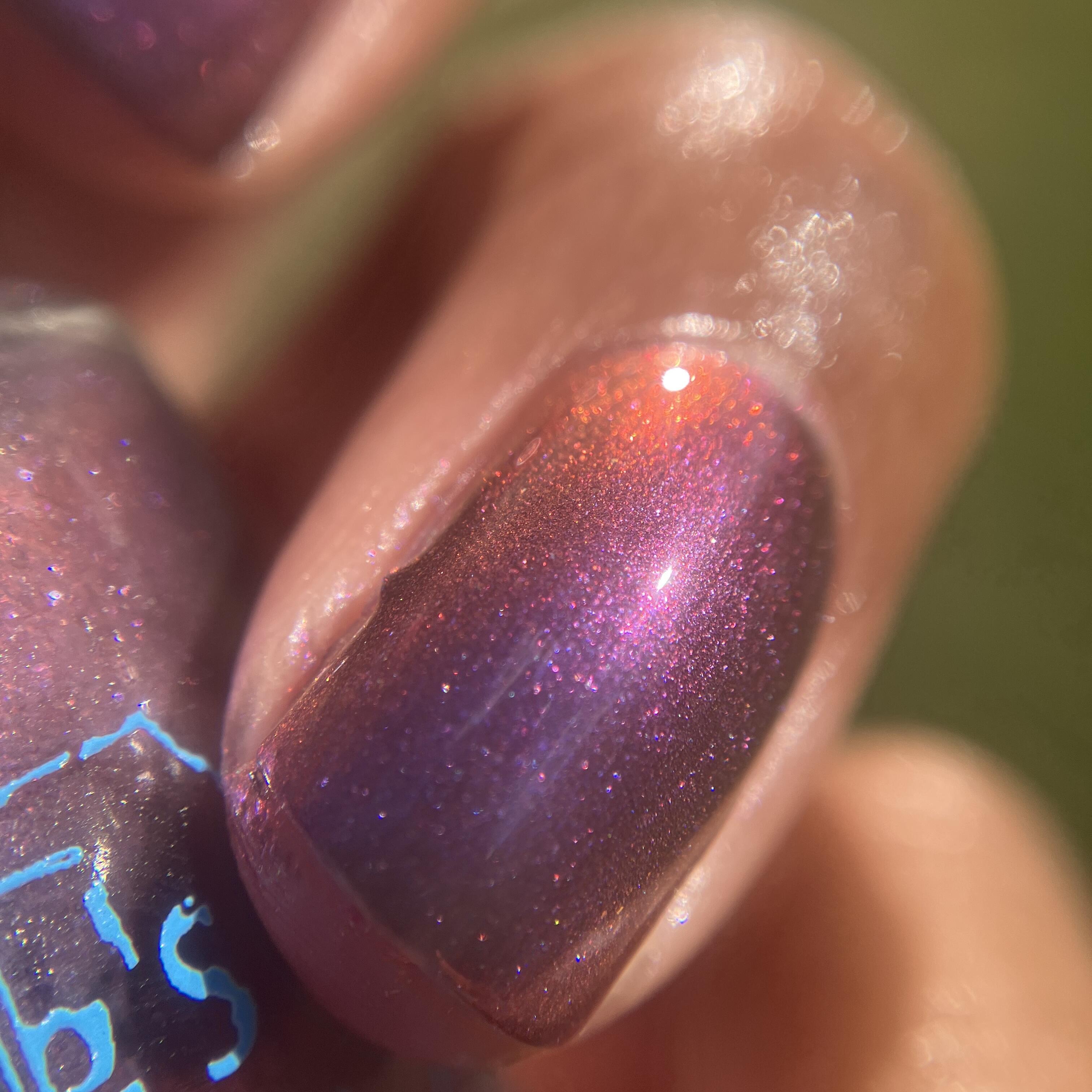 Butyl Acetate, Ethyl Acetate, Nitrocellulose, Adipic Acid/Neopentyl Glycol/Trimellitic Anhydride Copolymer, Acetyl Tributyl Citrate, Isopropyl Alcohol, Acrylates Copolymer, Stearalkonium Bentonite, N-Butyl Alcohol, Styrene/Acrylates Copolymer, Benzophenone-1, Silica, Alumina, Trimethylpentanediyl Dibenzoate. May Contain: Mica, Iron Oxides, Titanium Dioxide, Tin Oxide, Ferric Ferrocyanide, Yellow #5, D&C Yellow #10, D&C Red #30, D&C Red #6, D&C Red #7, D&C Red #34, Ultramarine Blue, D&C Black #2, Holographic glitter, Magnesium Fluoride-Coated Aluminum, Silica.