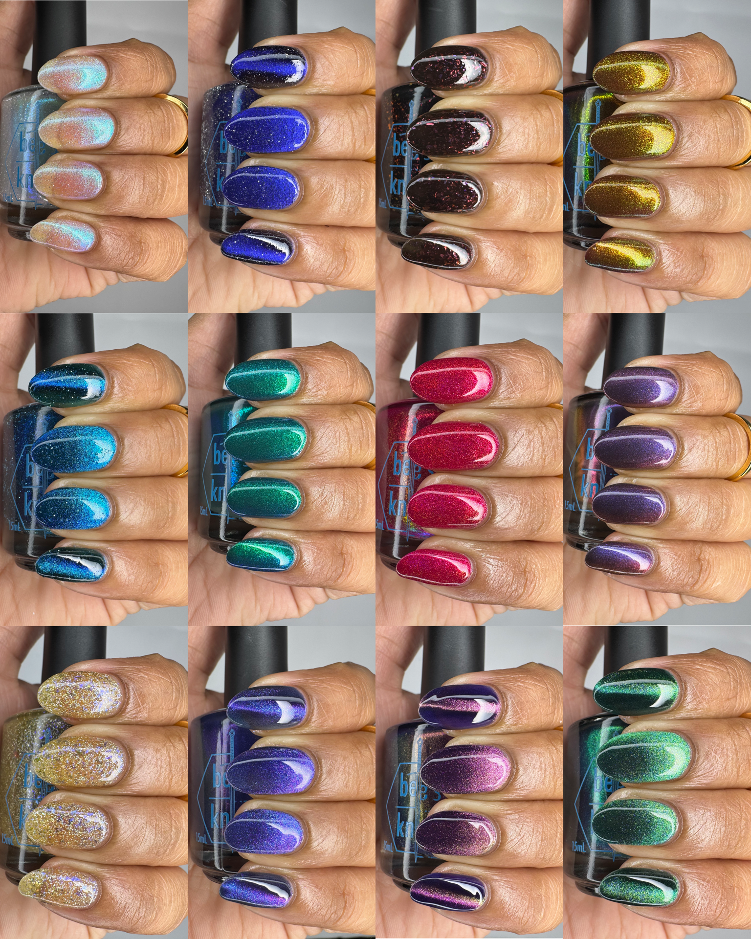 these are special limited edition polishes and come in a special bottle featuring a bespoke logo treatment made in partnership with Keshe Chow for her book For No Mortal Creature.